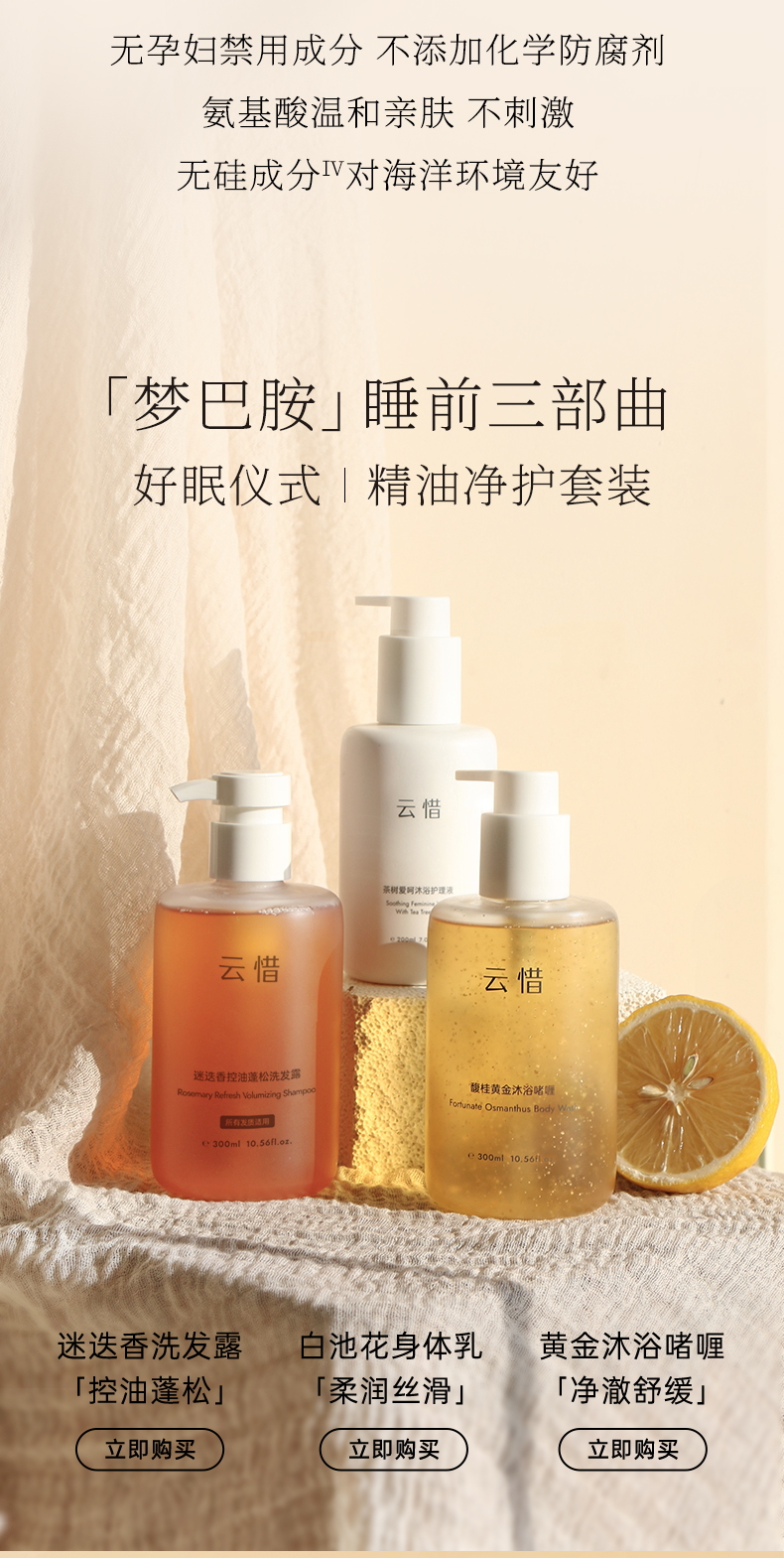 【天然香洗护SPA套组 不含香精】云惜滋润身体乳+洗护