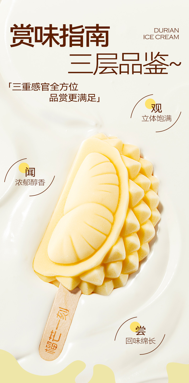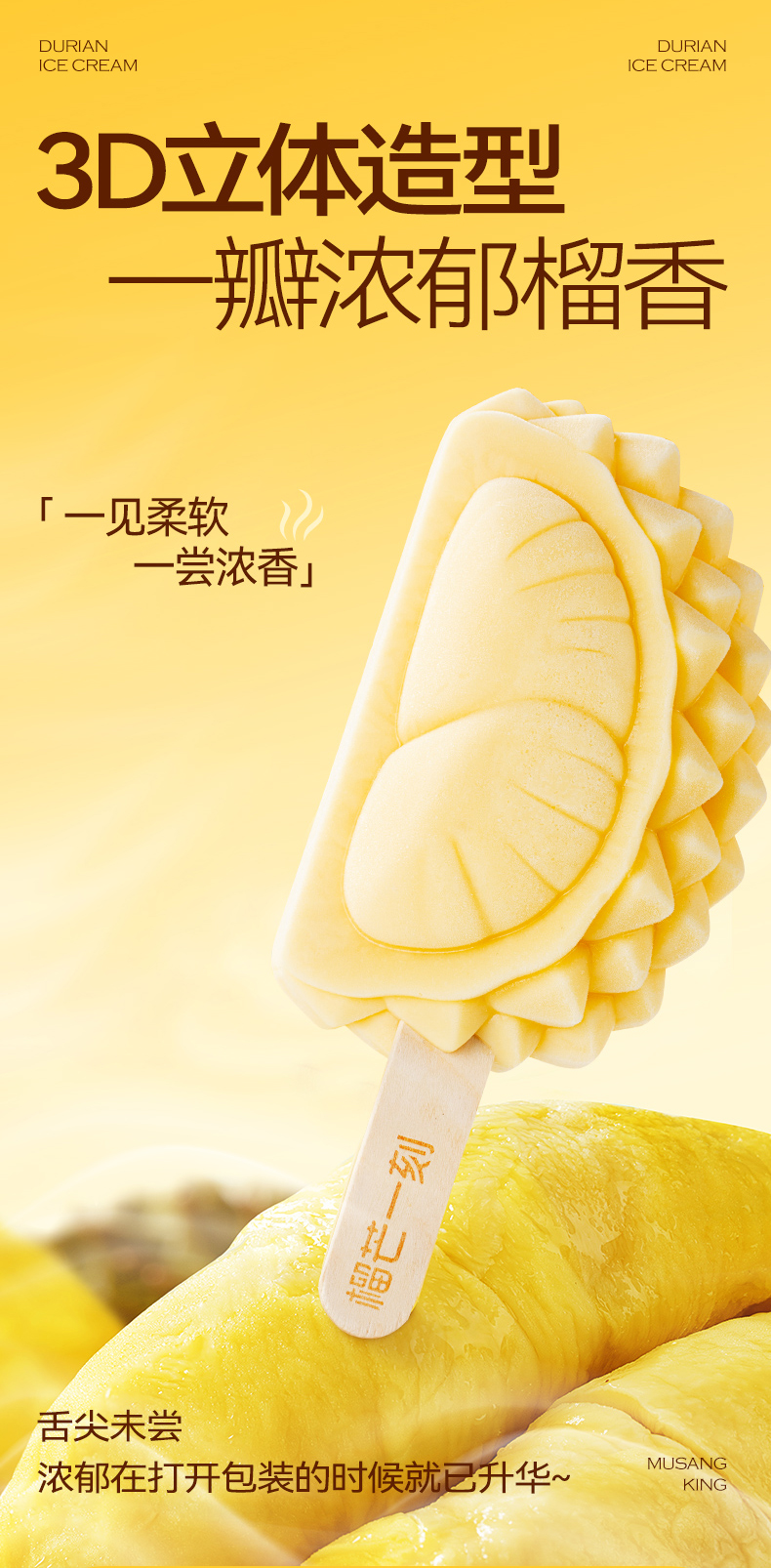 【买8送1】猫山王榴莲雪糕冰淇淋 70g/支 12%榴莲果肉 绵密香甜不含香精防腐剂