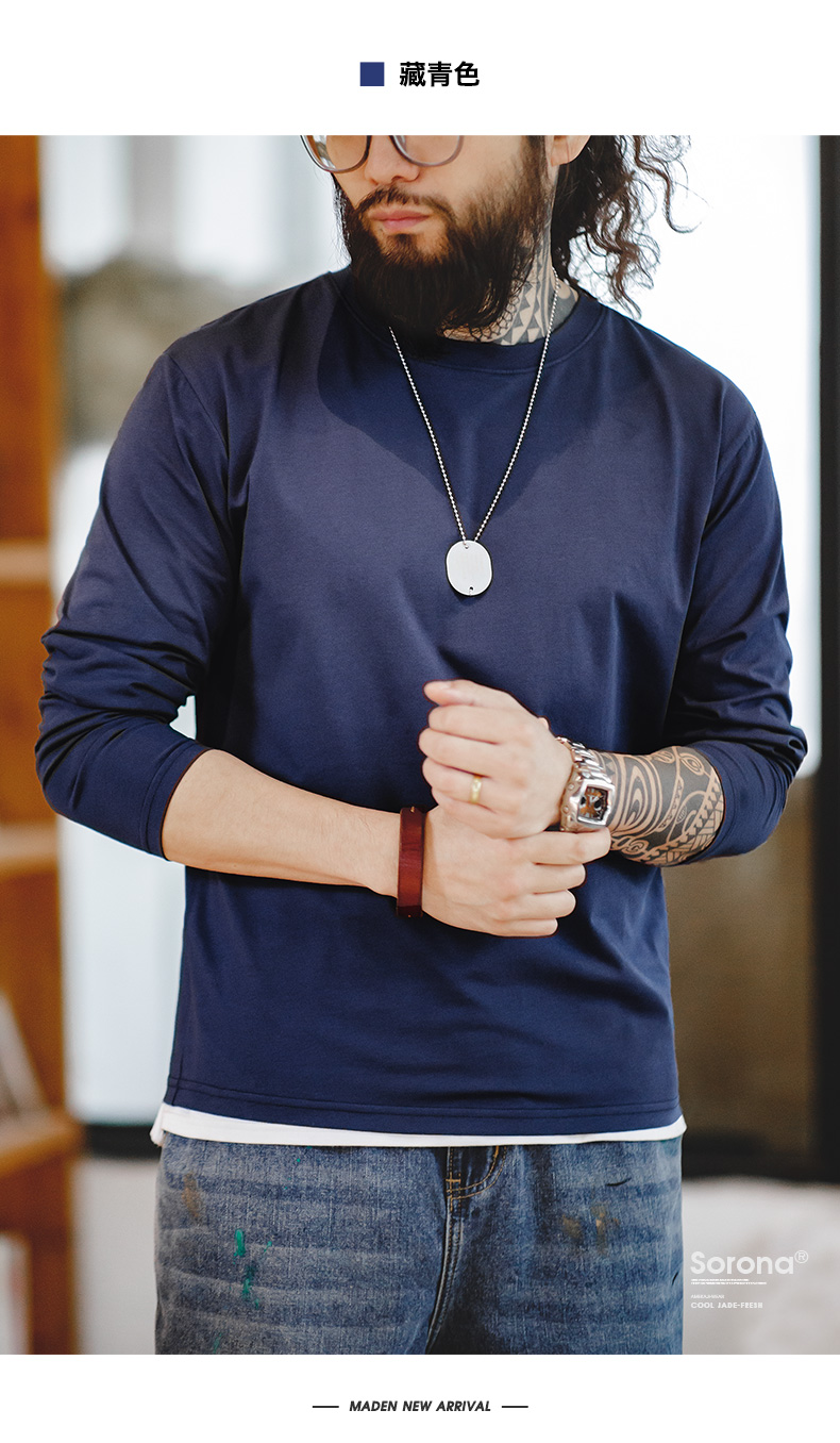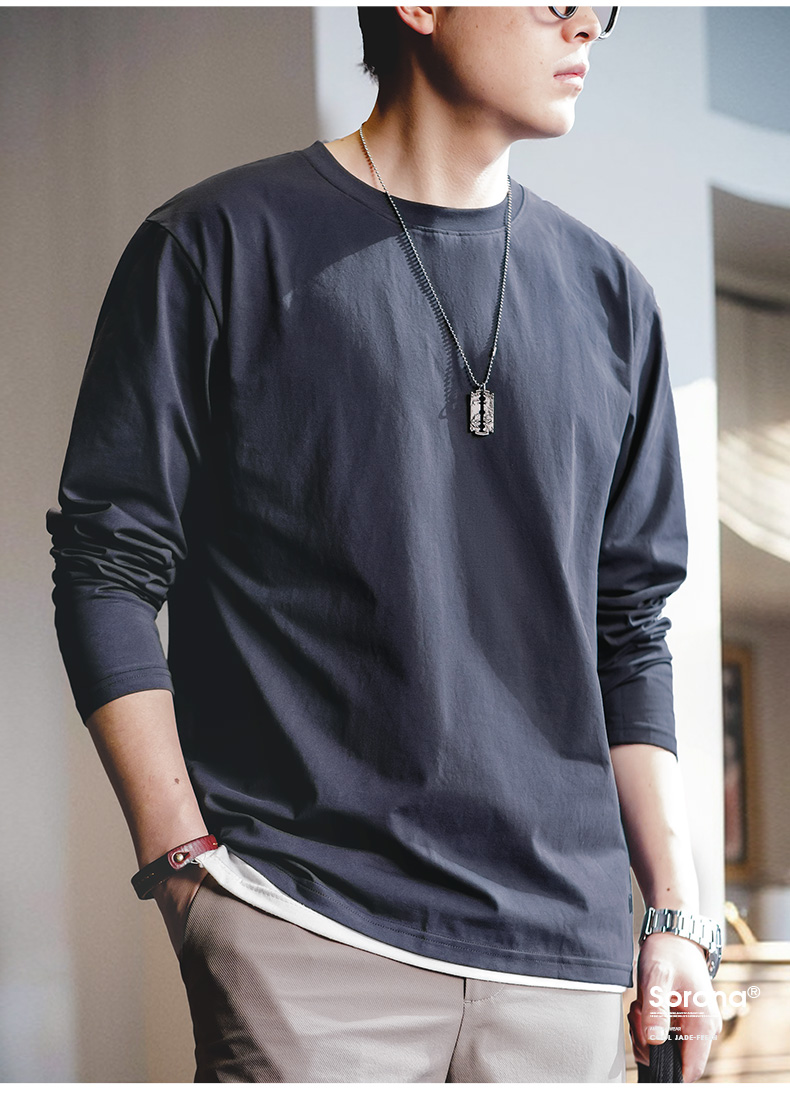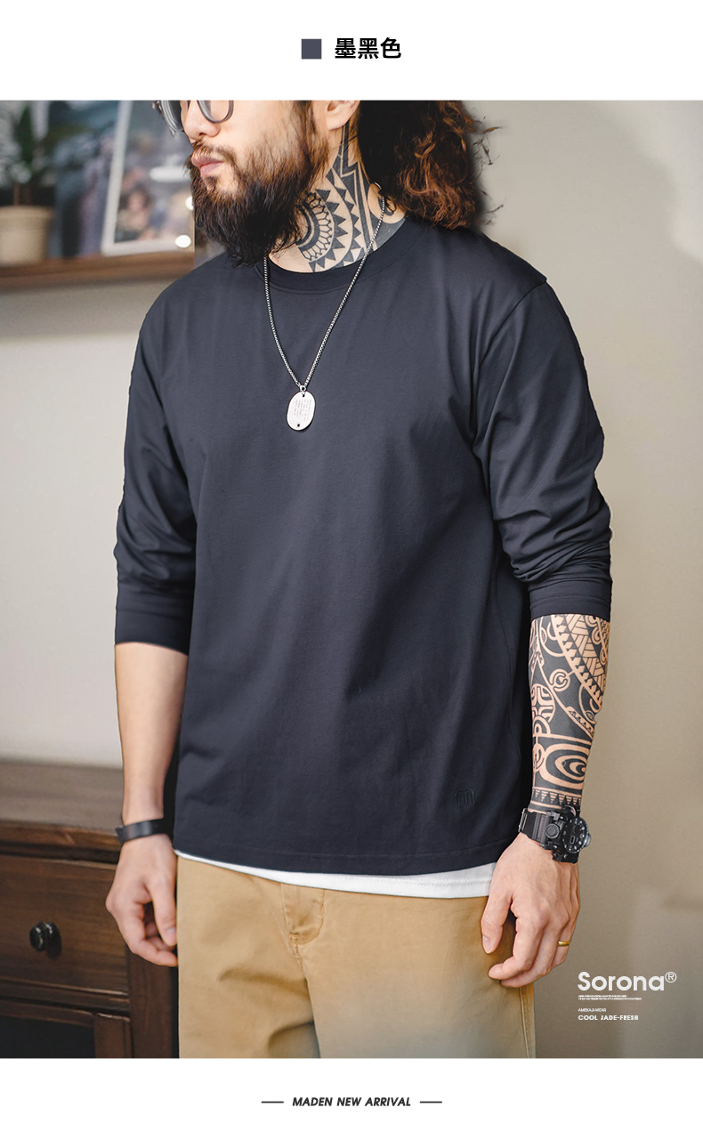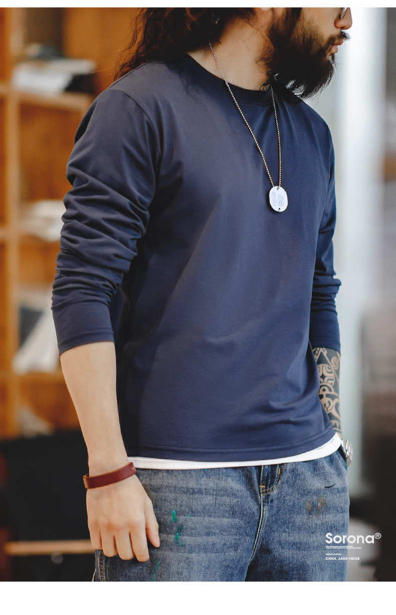 工装优选 美式休闲sorona凉感长袖T恤索罗娜速干抗菌圆领上衣男春