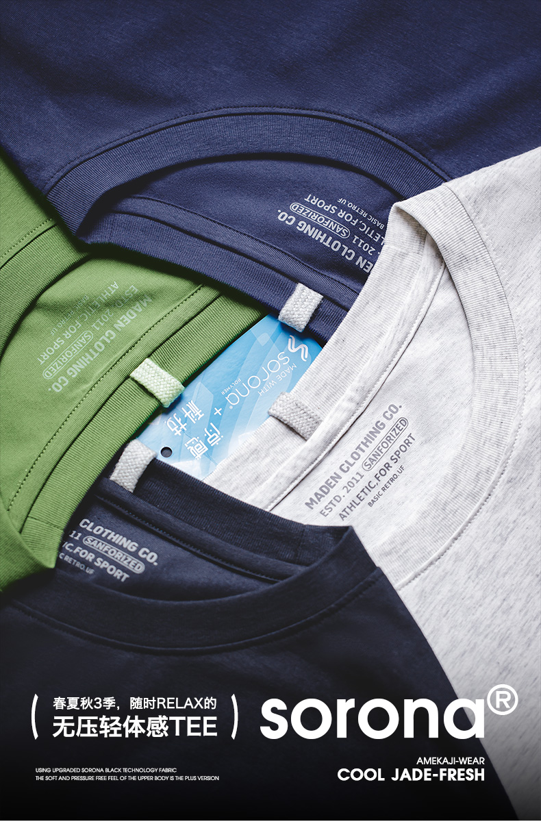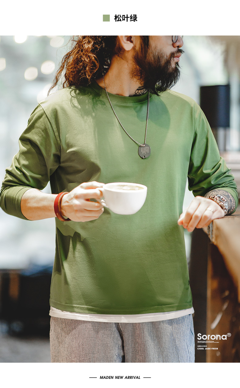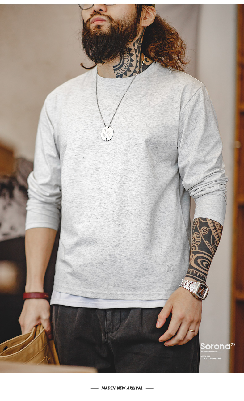 工装优选 美式休闲sorona凉感长袖T恤索罗娜速干抗菌圆领上衣男春