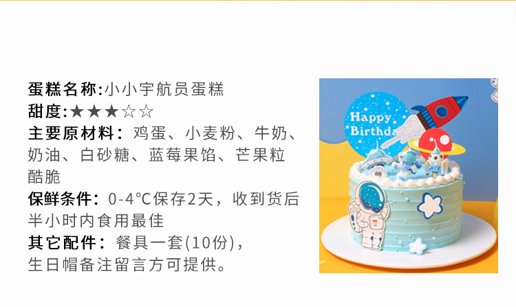 小小宇航员 1.5磅蛋糕 提前4小时下单 免费送货上门