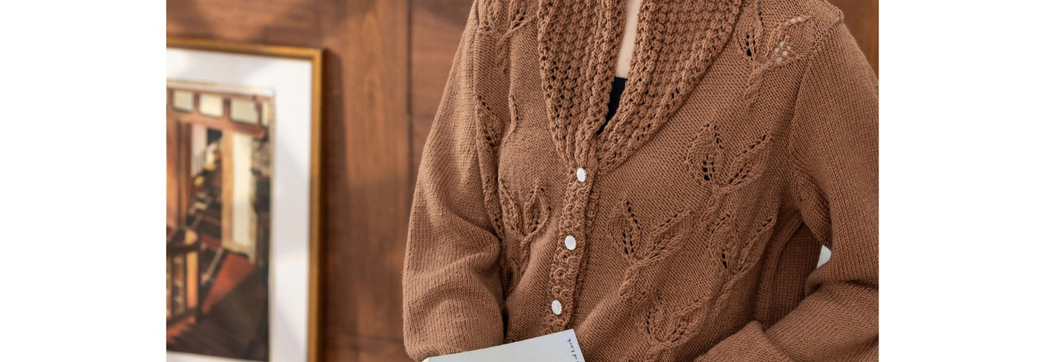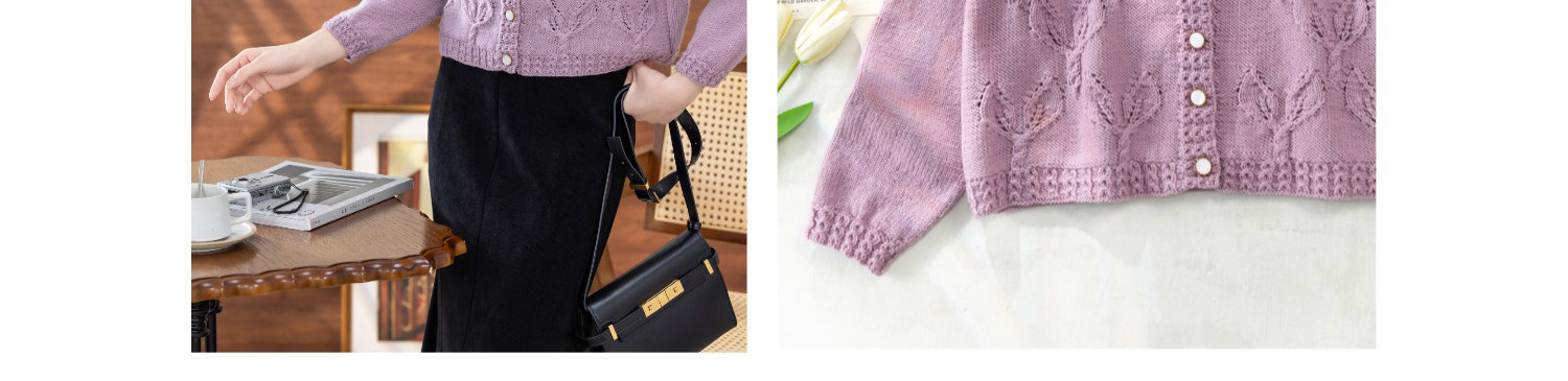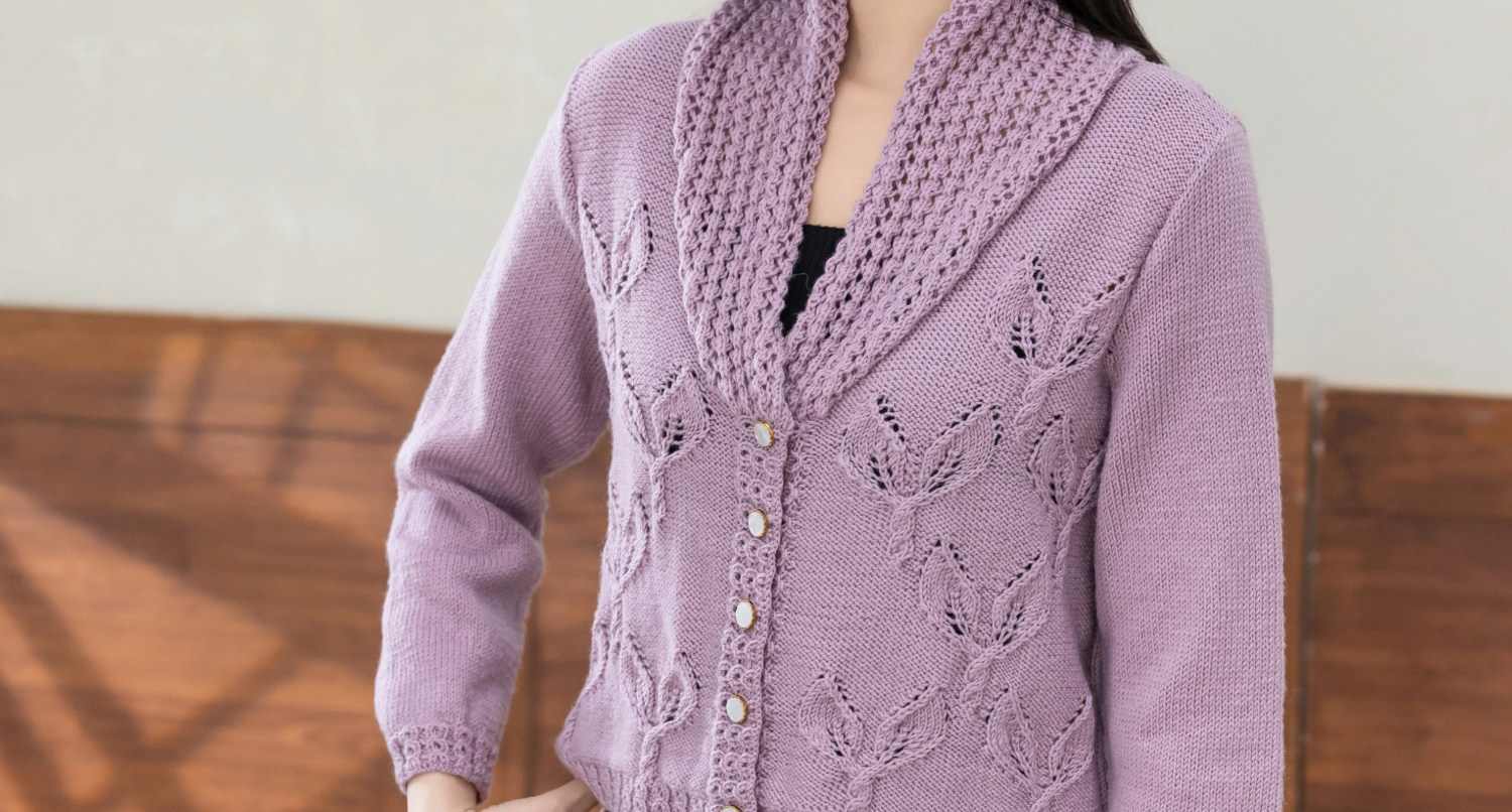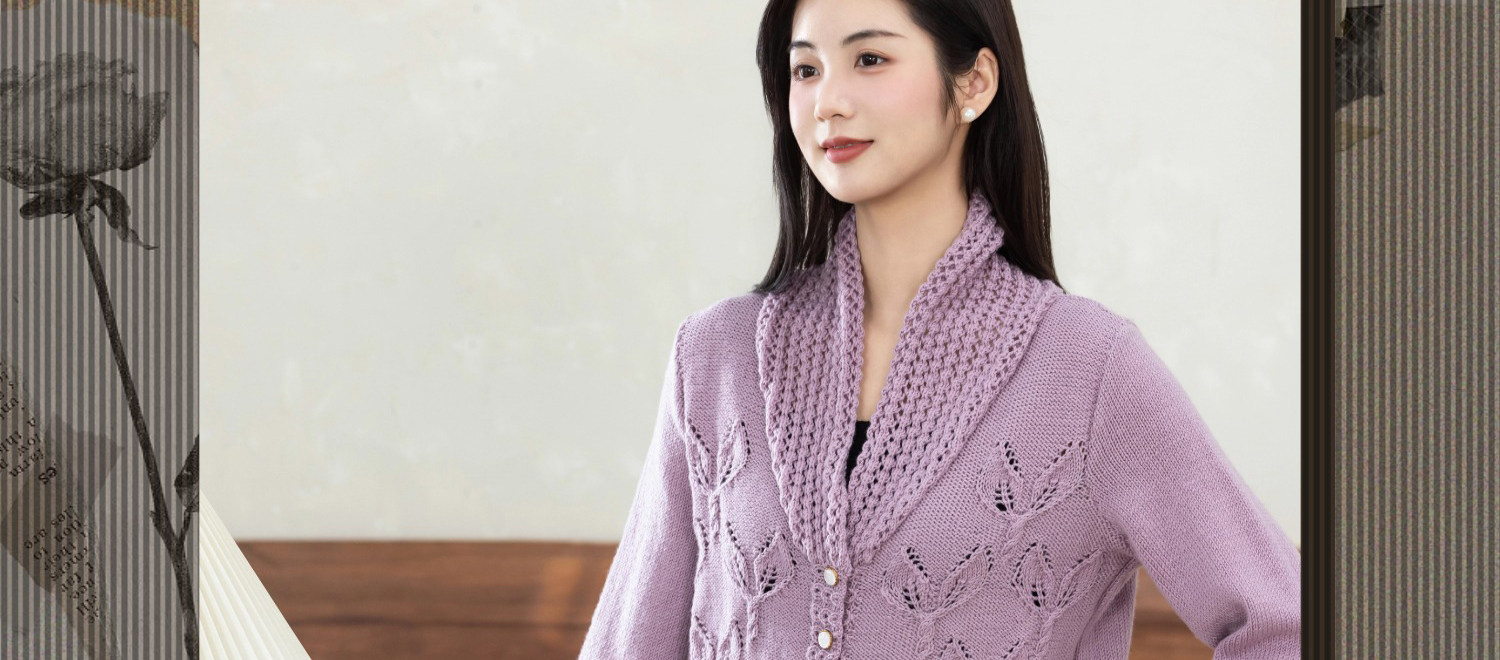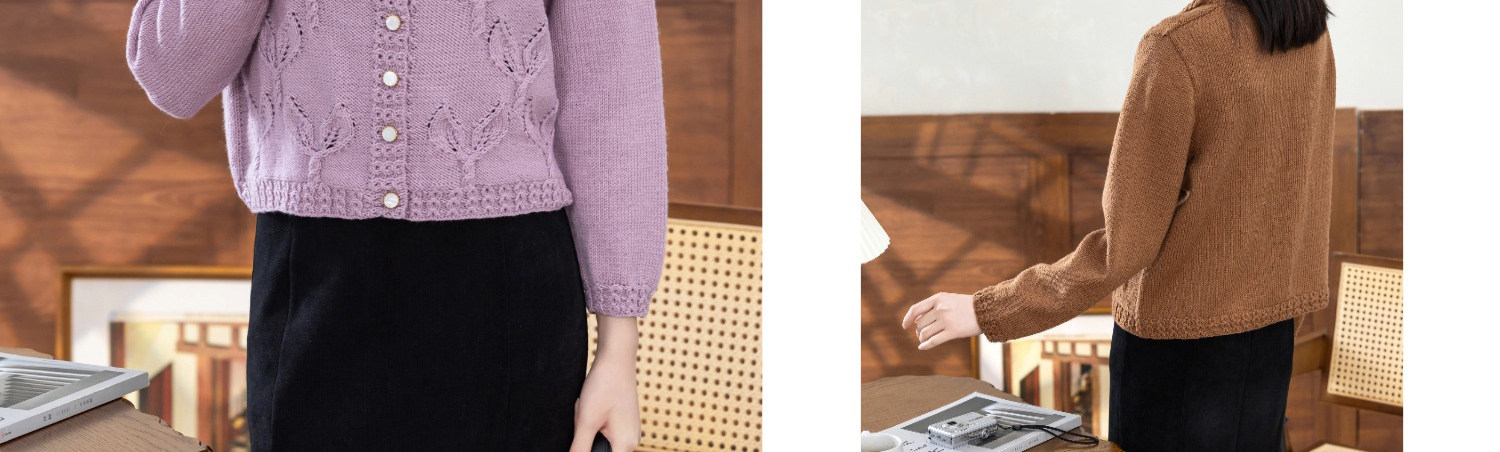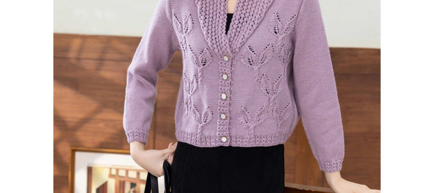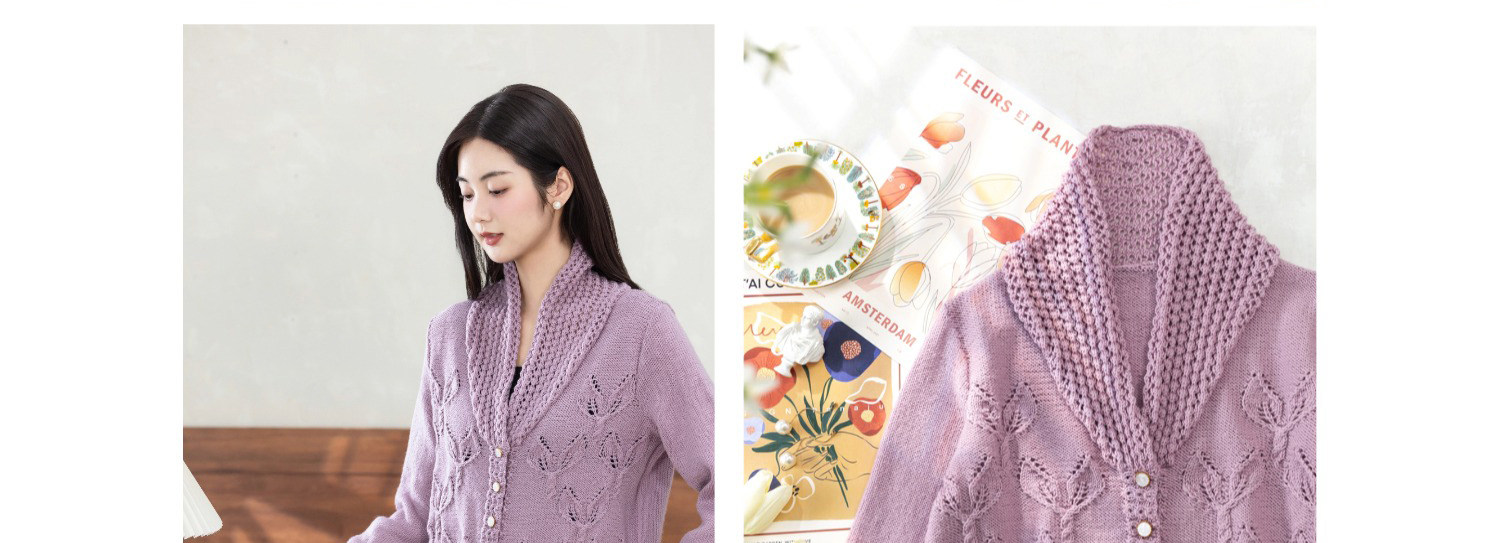 苏苏姐家紫亦青果领开衫手工diy棒针毛衣编织羊毛线毛线团材料包