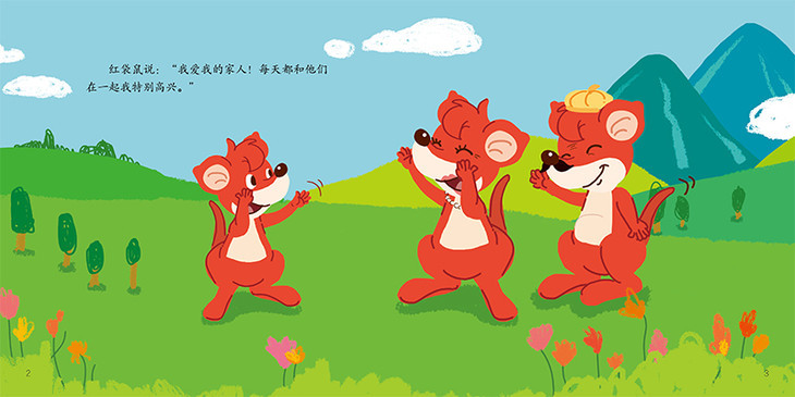 2. 画面简单可爱,色彩丰富。编排设计符合婴幼儿的认知规律,并引入了在幼儿中有广泛的知名度的红袋鼠形象,充满亲和力。