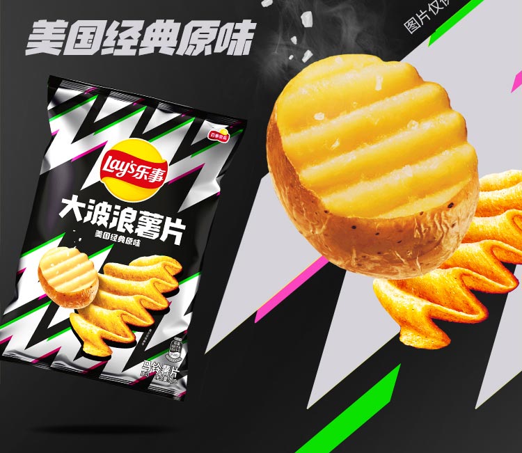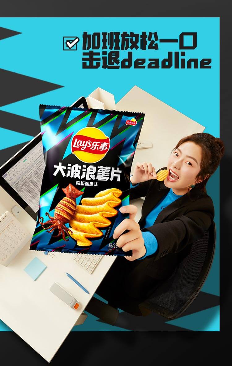 乐事大波浪薯片铁板鱿鱼味马铃薯片零食70g