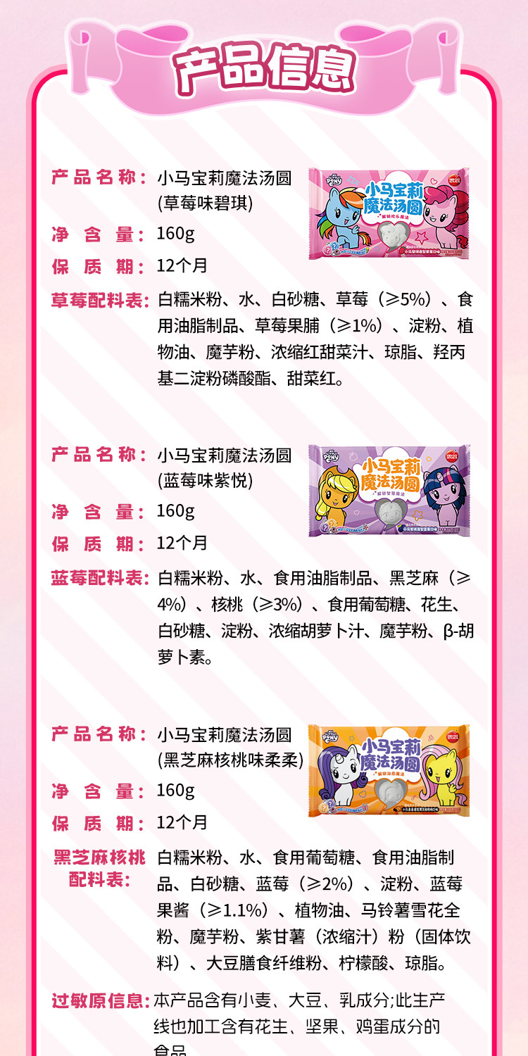 【第2件半价】思念小马宝莉魔法汤圆/龙井茶汤圆 草莓味/蓝莓味 160g/袋