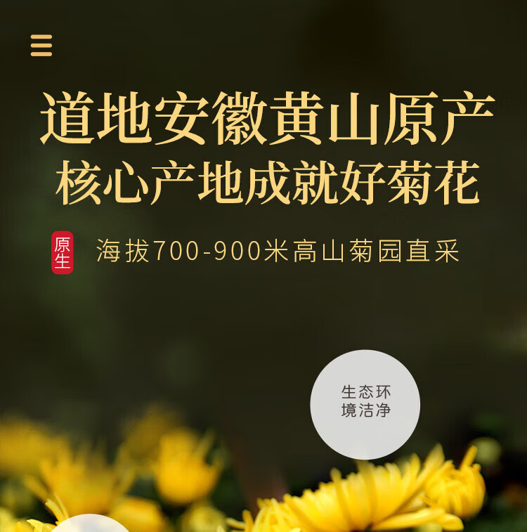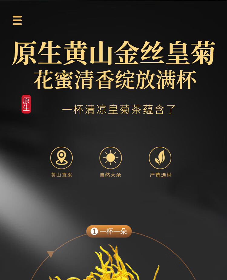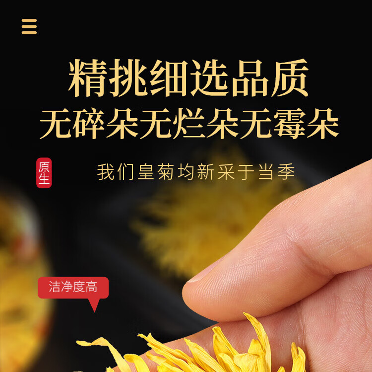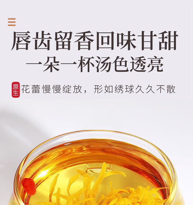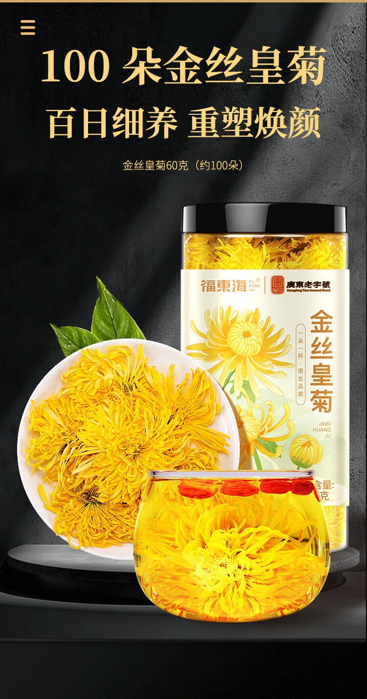 福东海 菊花茶60克 【约100朵完整大花】金丝皇菊胎菊黄山贡菊特茶级花草茶