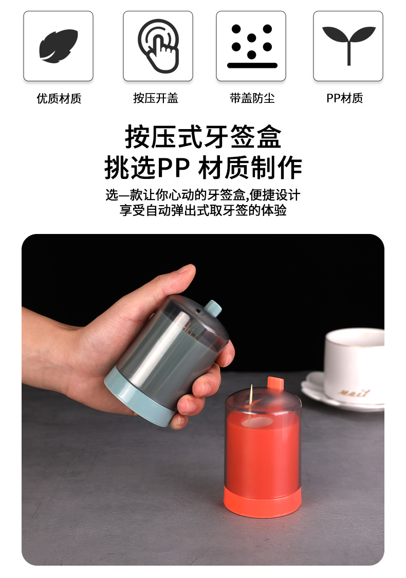 白色圆形牙签桶自动弹出家用北欧ins按压式高档餐厅牙签桶