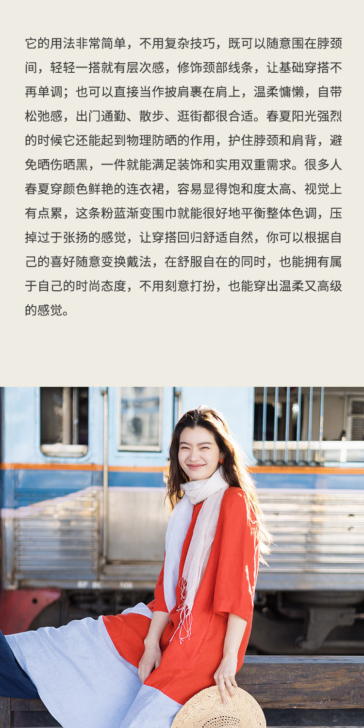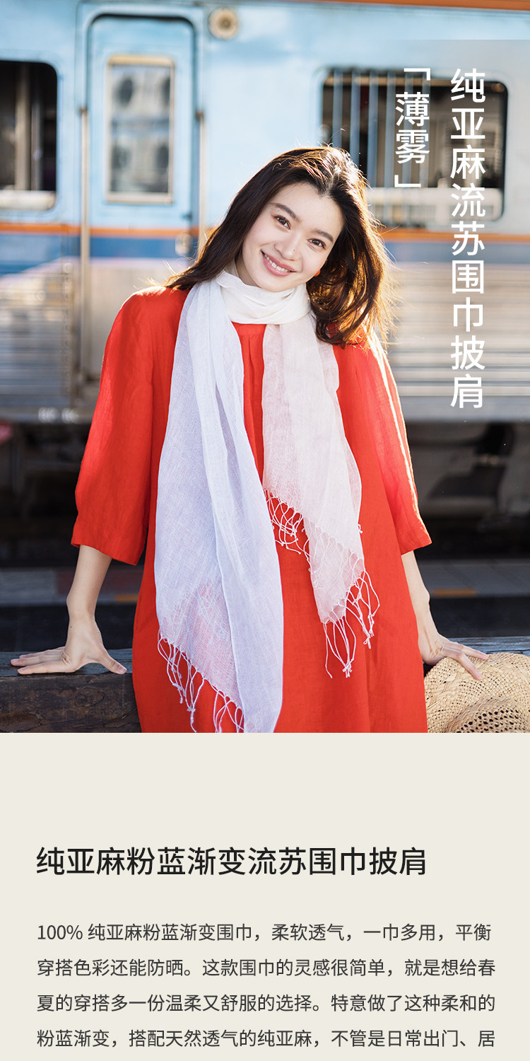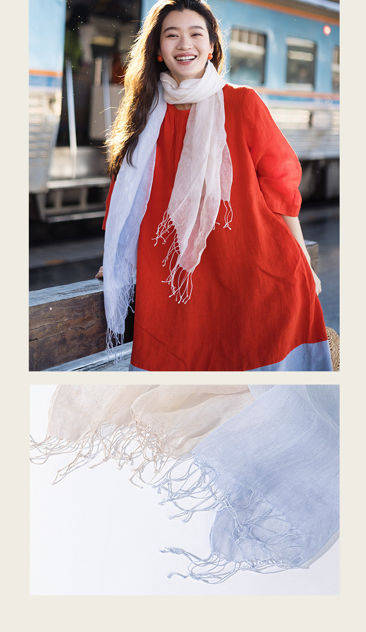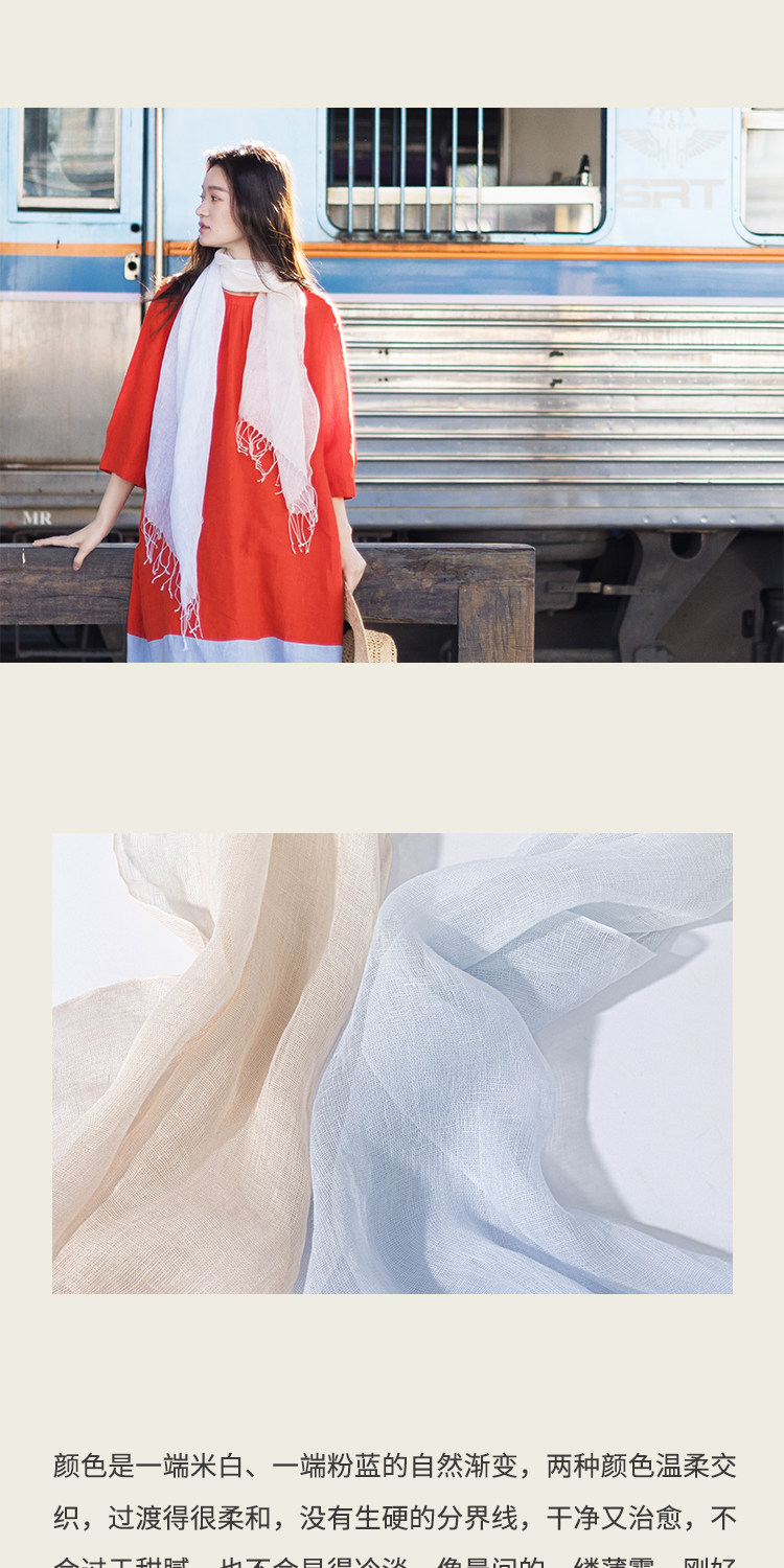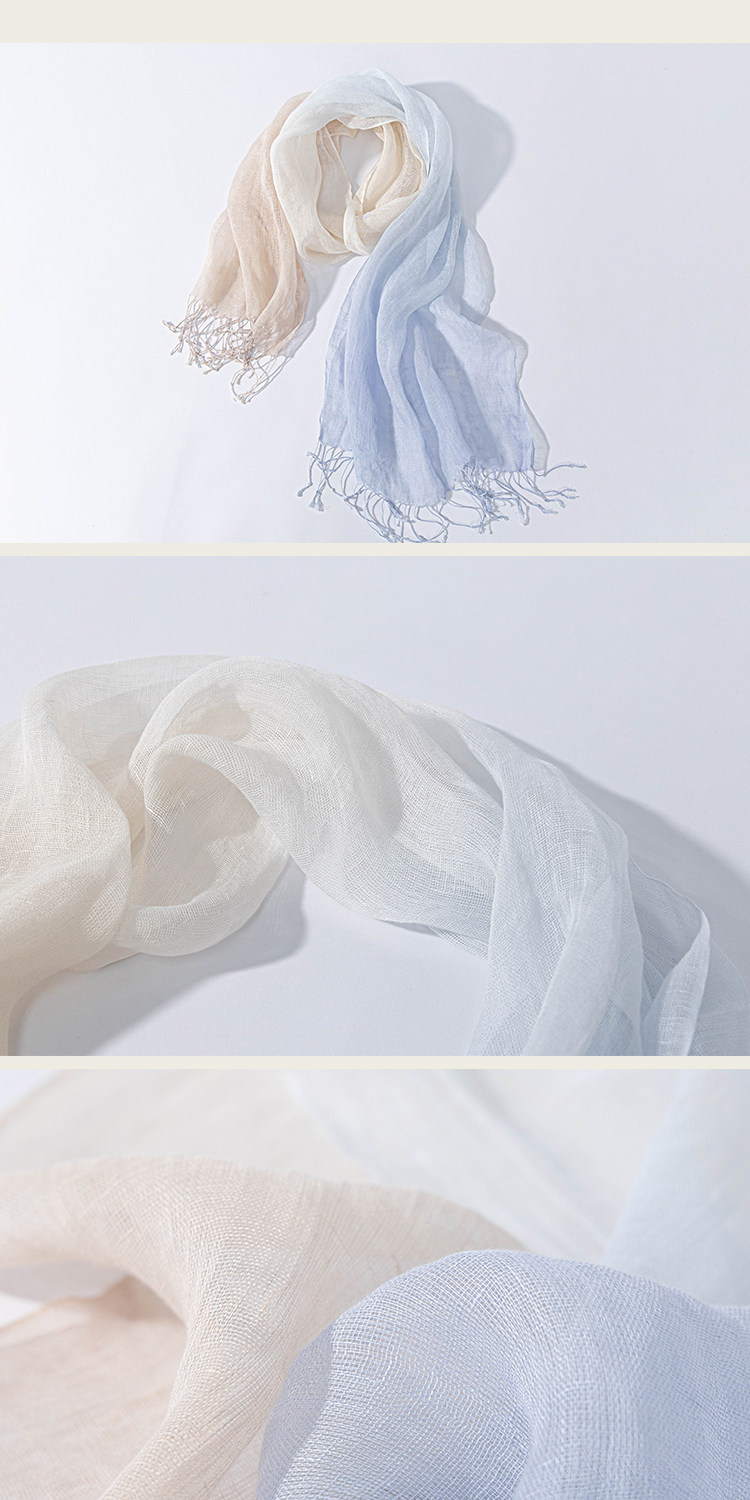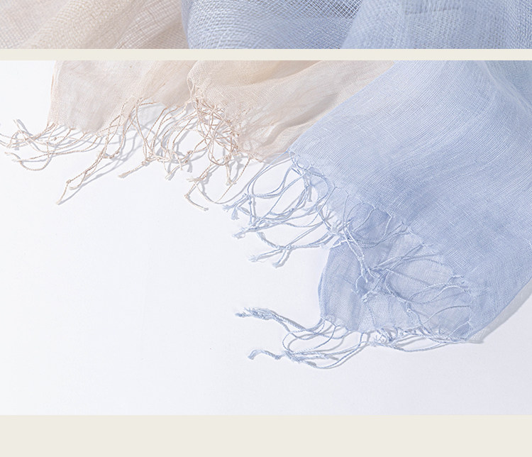 绽放/LSX024朵薄雾*纯亚麻粉蓝渐变流苏围巾披肩春夏旅行透气百搭