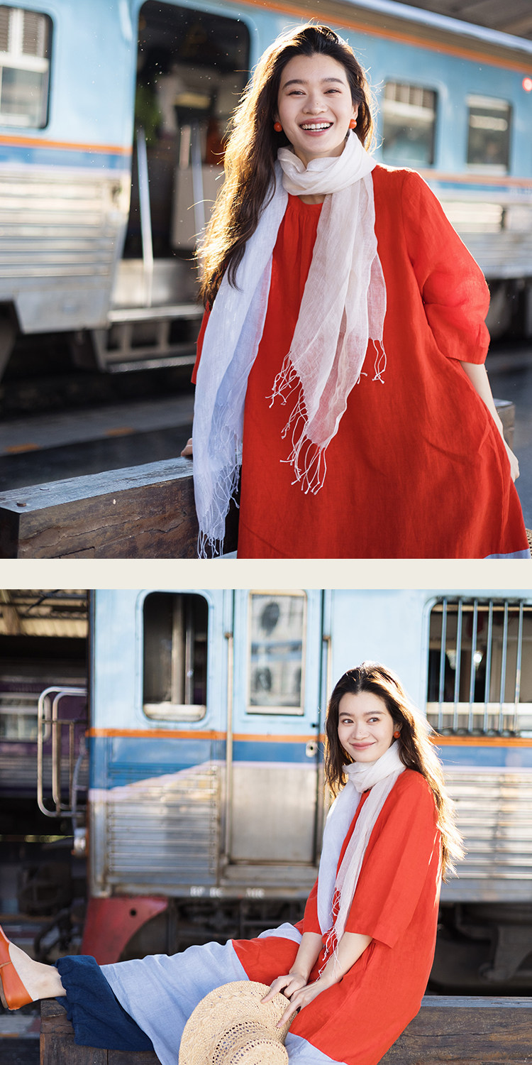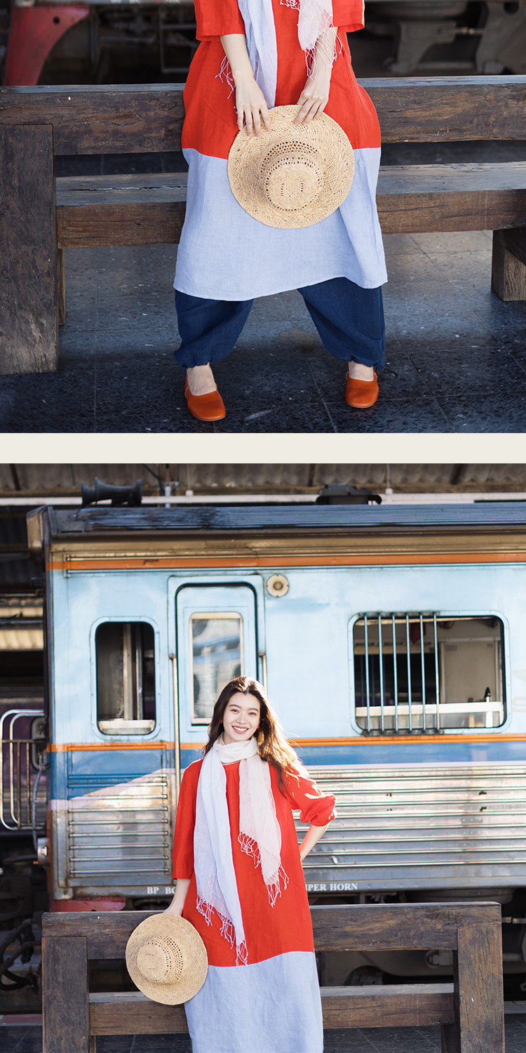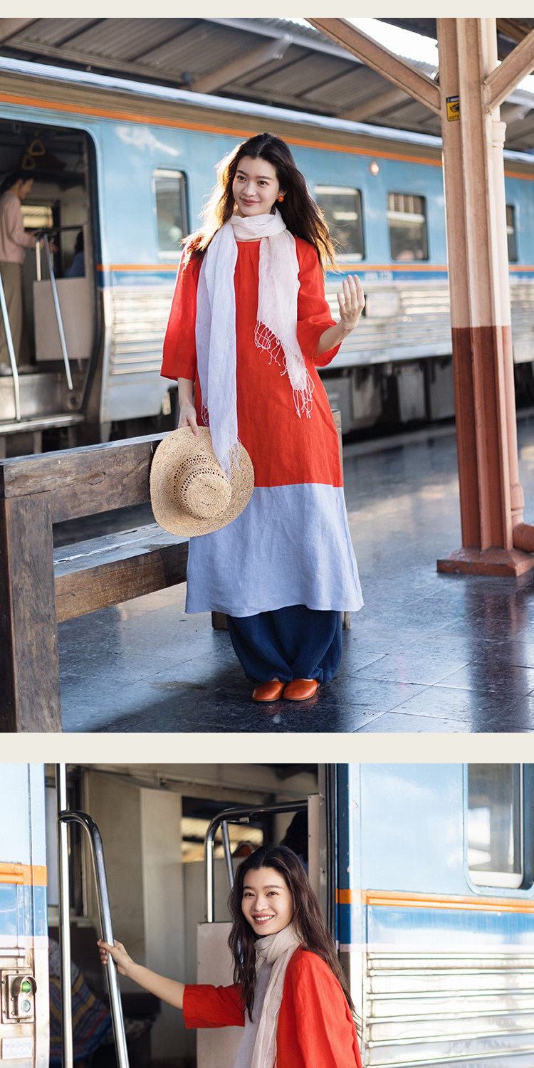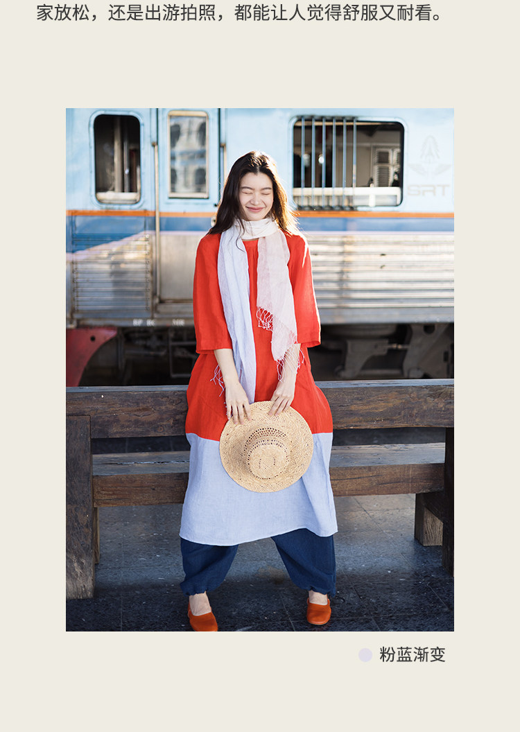 以天然亚麻为载体,融合热烈色彩与自在剪裁为身在城市、心怀远方的女性提供兼具美学与舒适的旅行着装