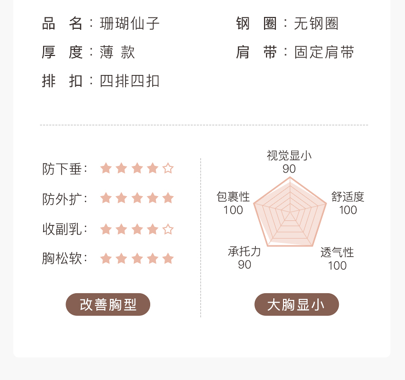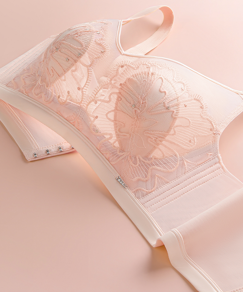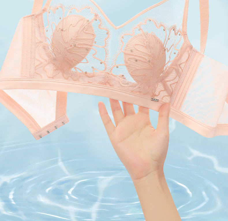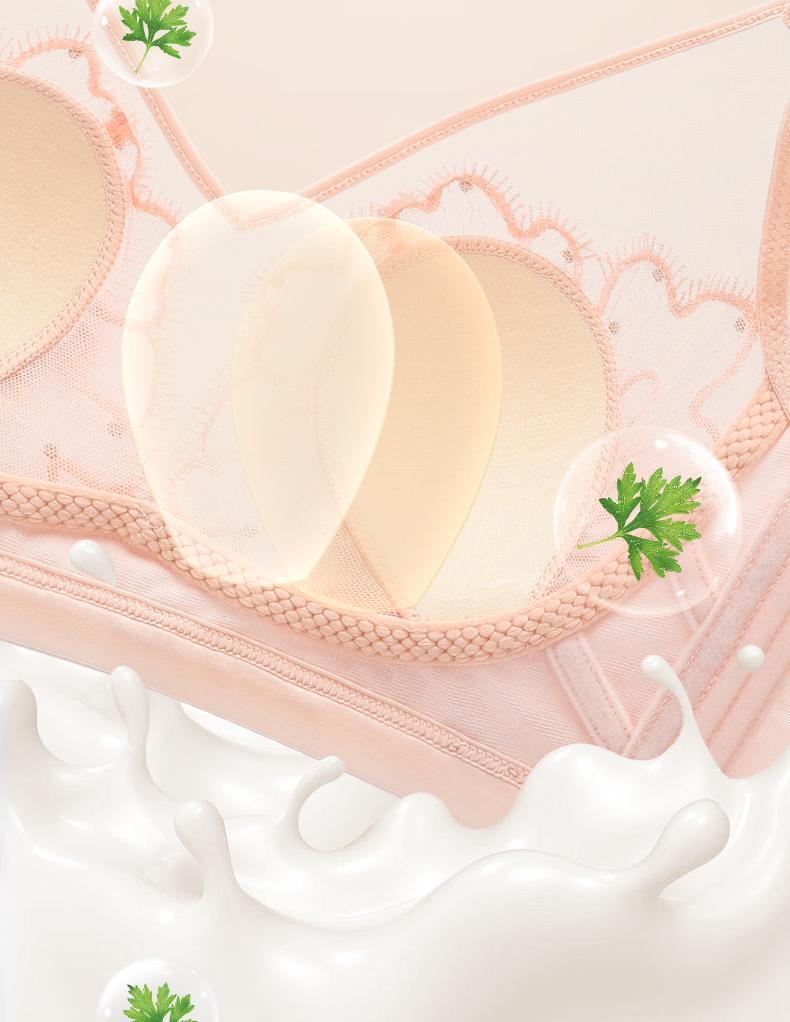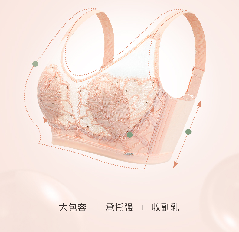 梦芭蒂乳胶艾草抑菌内衣女夏季超薄款文胸大胸显小胸罩珊瑚仙子