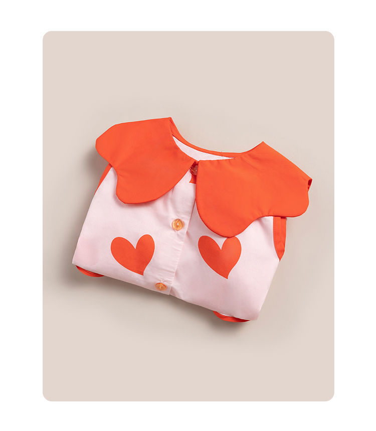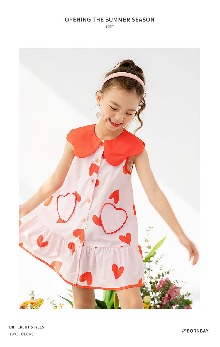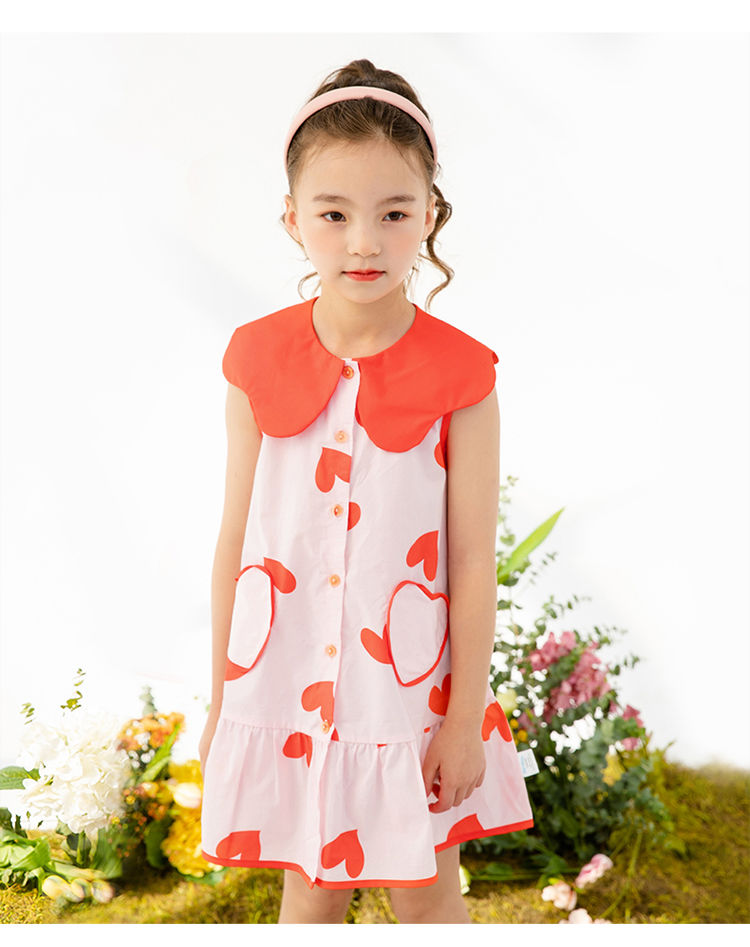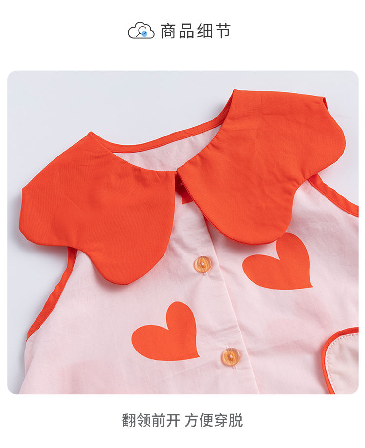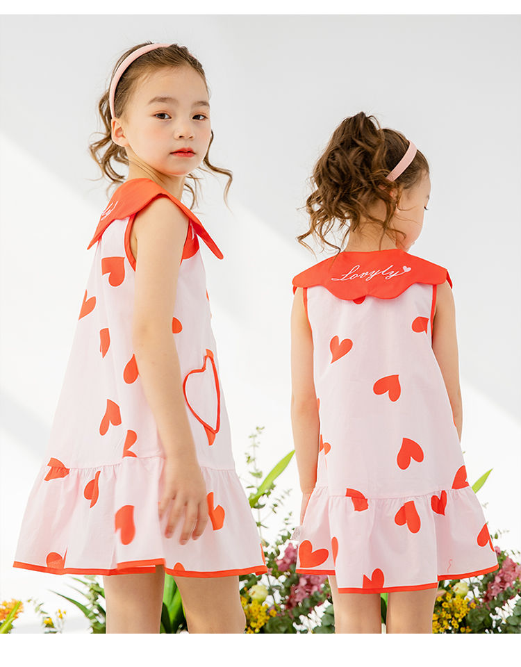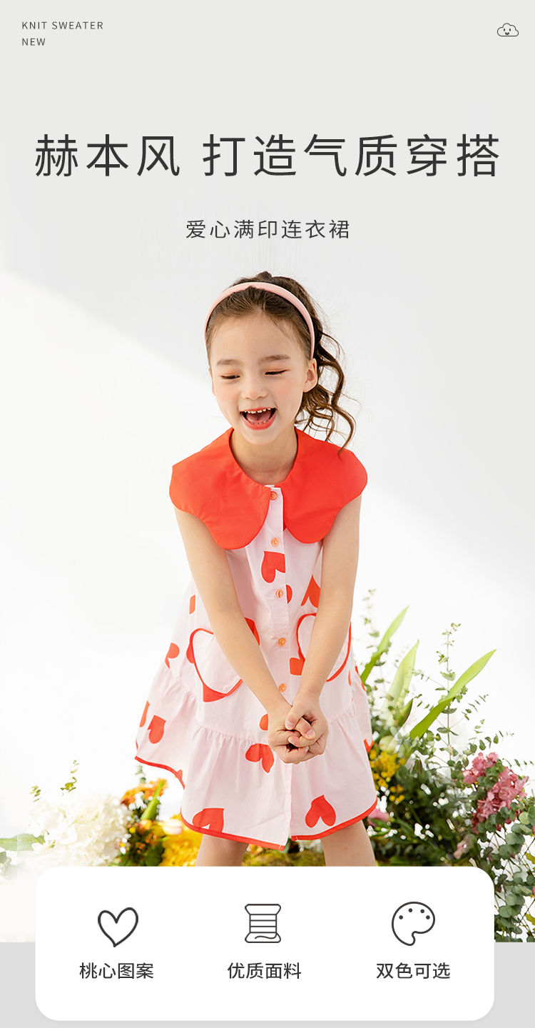 贝贝怡女童连衣裙2022年夏季短袖简洁可爱爱心中长裙连衣裙高档