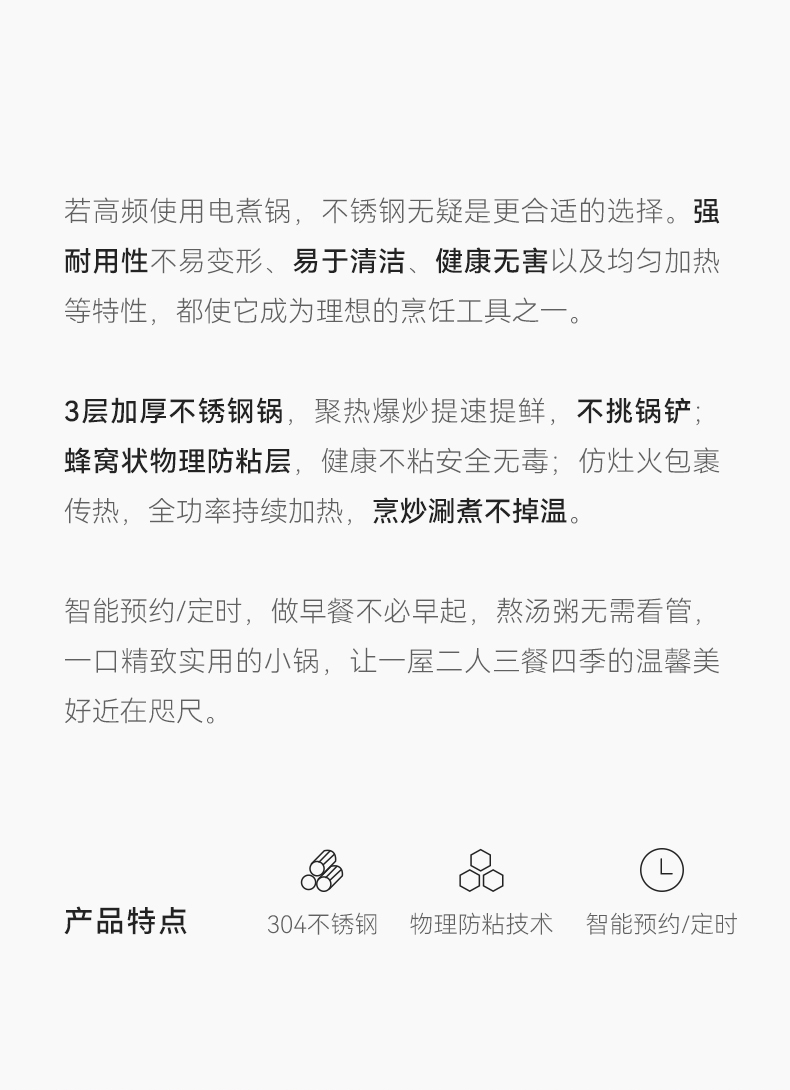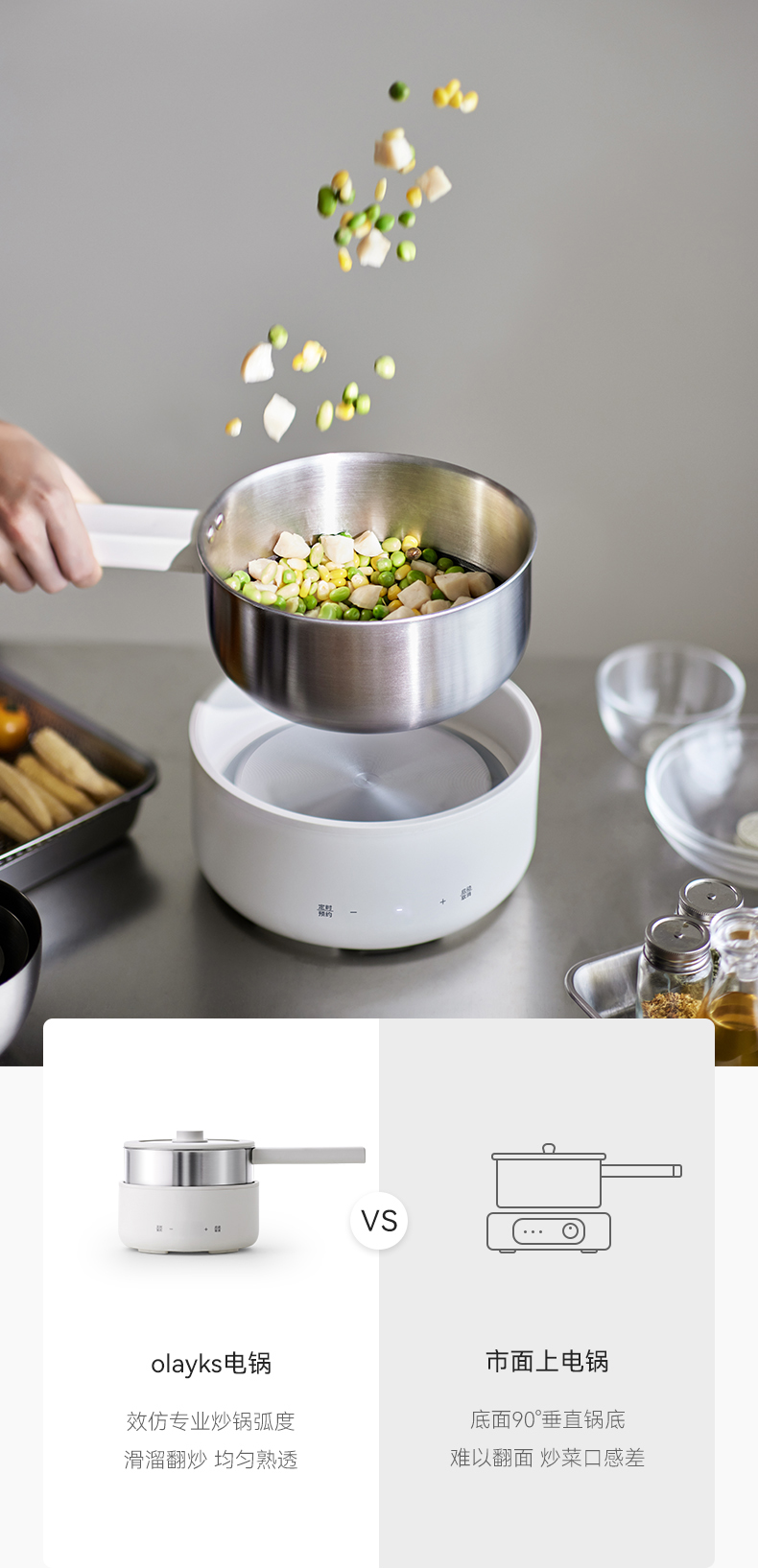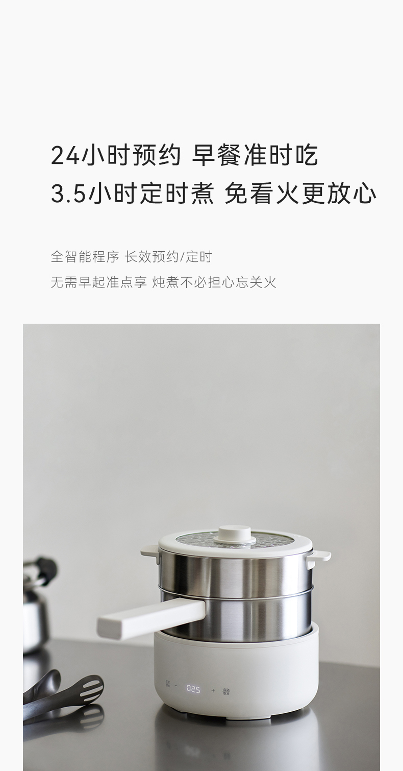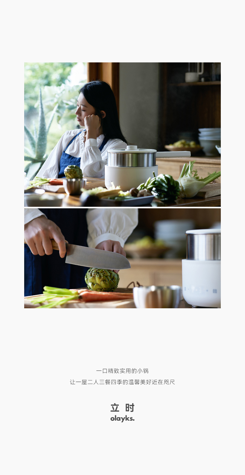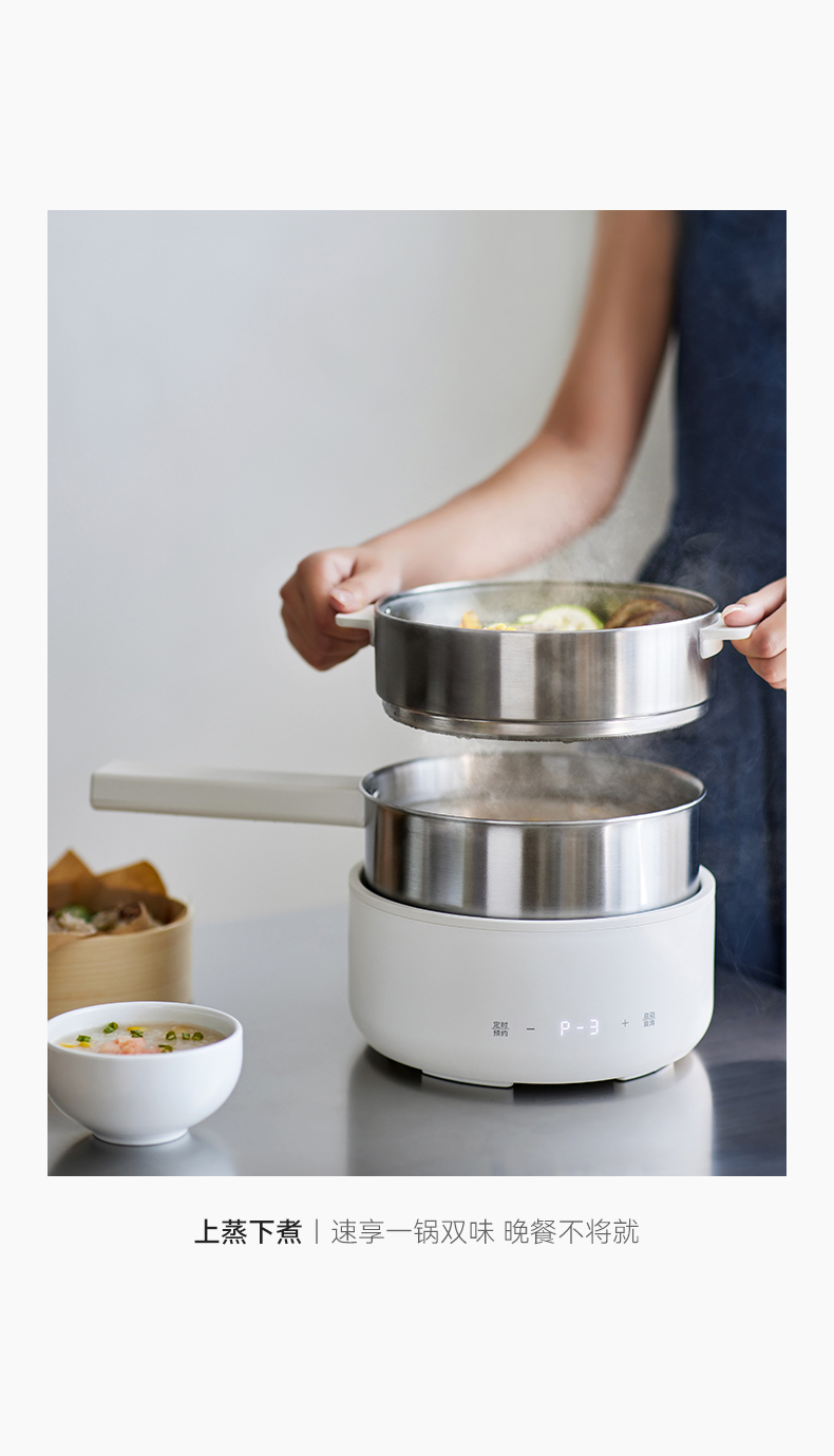 olayks立时 2.5L不锈钢电煮锅家用多功能分体式小型电炒锅小电锅