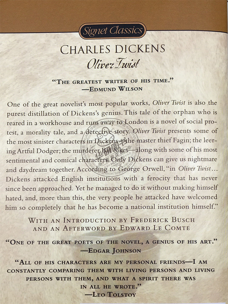 Oliver Twist《雾都孤儿》是英国大文豪查尔斯·狄更斯的首部社会小说。作品通过孤儿奥利弗的凄苦遭遇,揭露社会底层人们哀苦无告的生活,在当时引起了巨大反响。