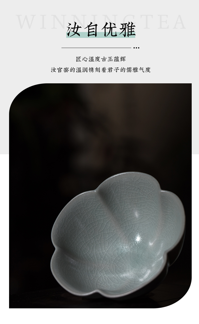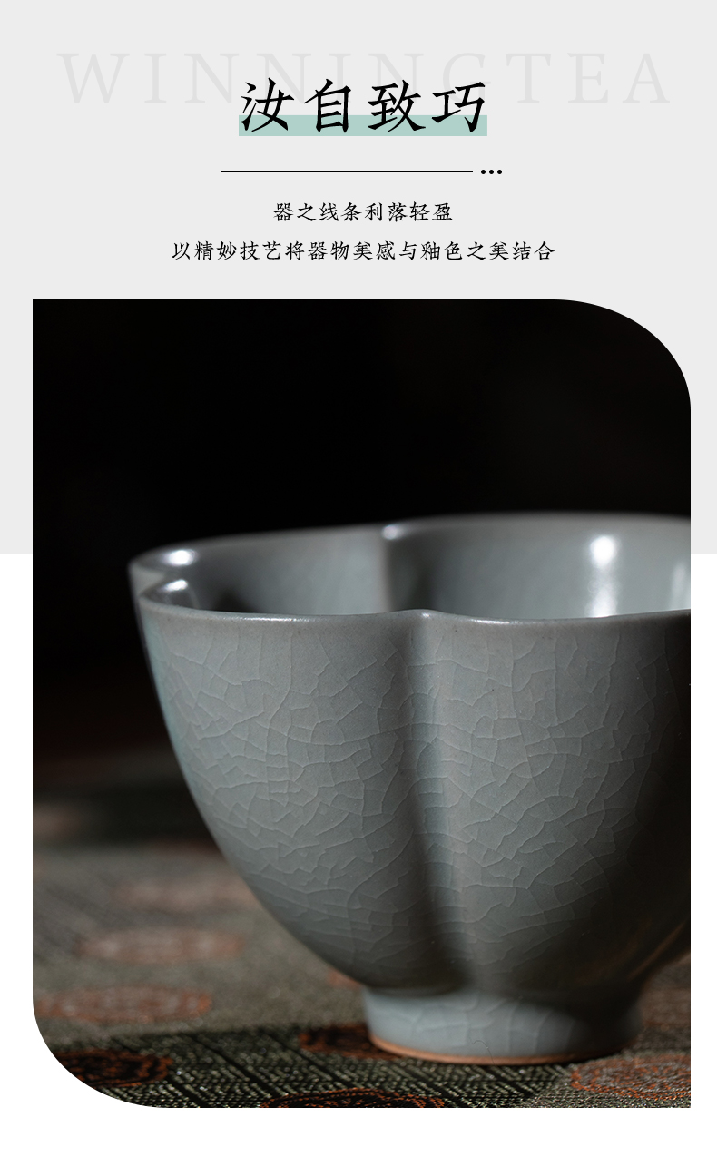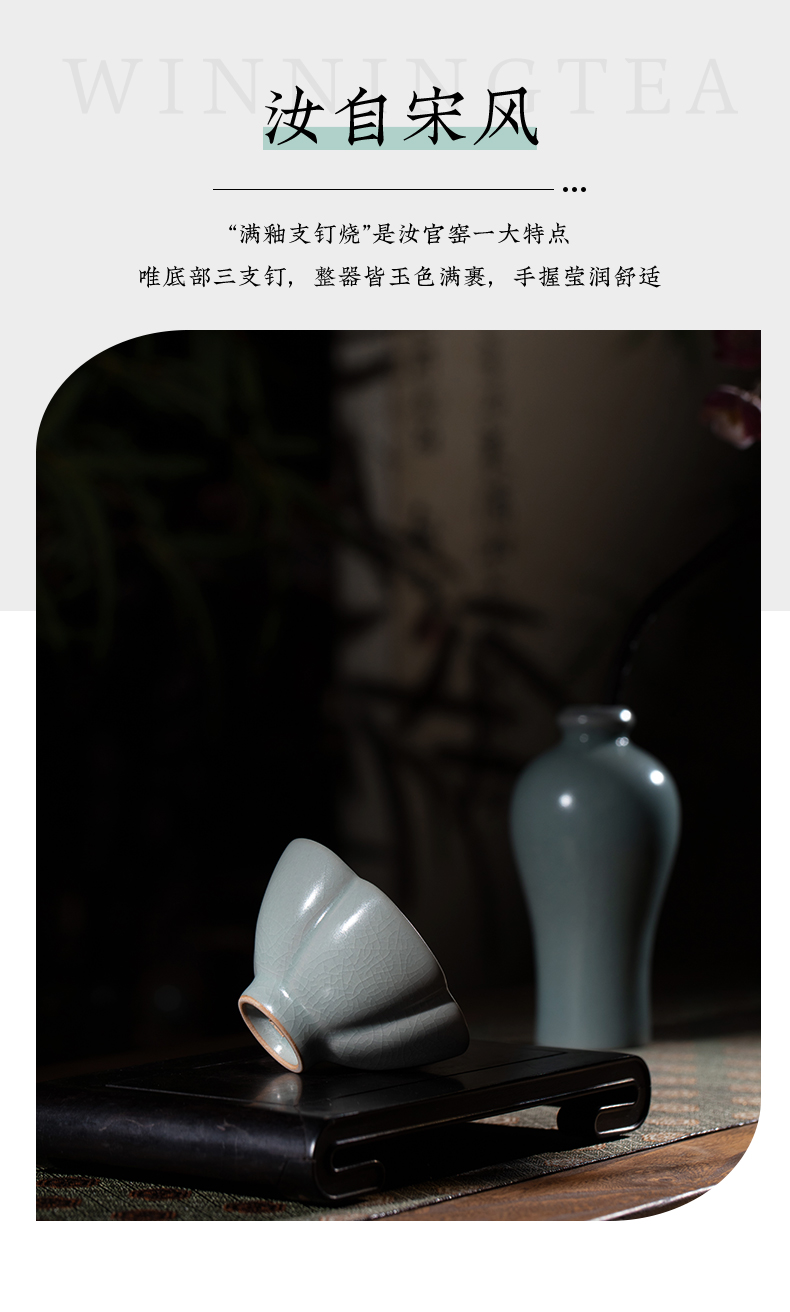 问鼎汝瓷鼎峰柴窑月白观月杯(梵红描金狮子绣球)