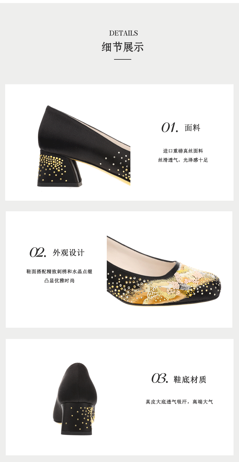 sheme高原狂想曲系列进口真丝搭配精致刺绣水晶优雅时尚女士单鞋可定制