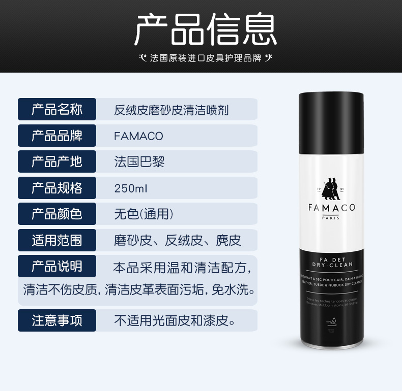 法国进口Famaco反绒皮磨砂皮革清洁喷剂去污0013
