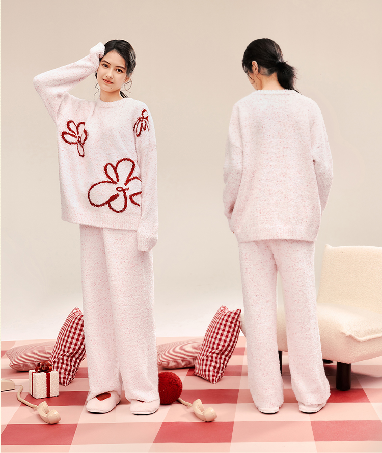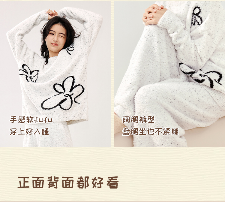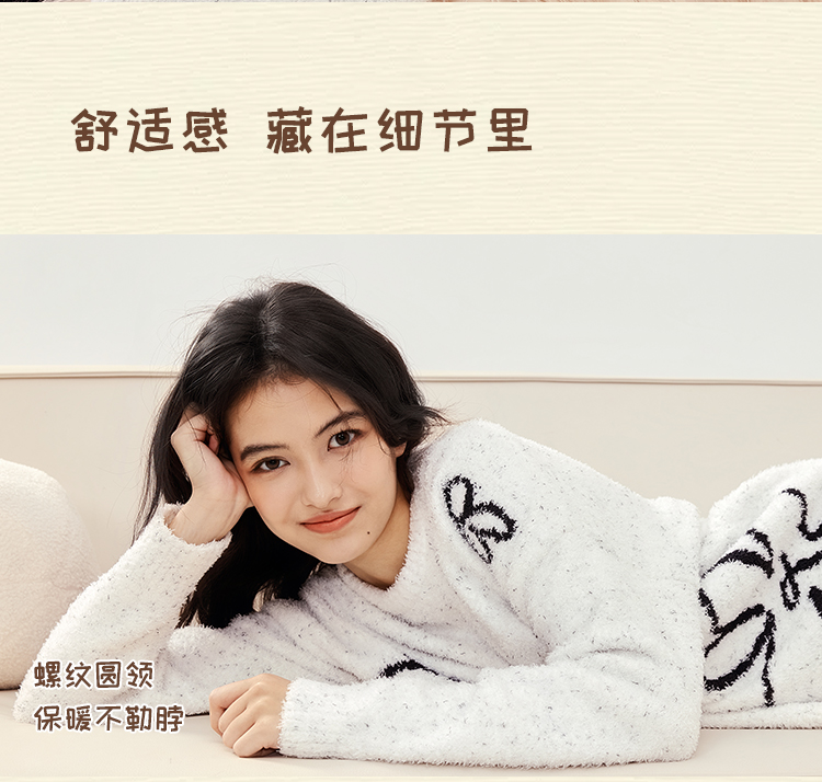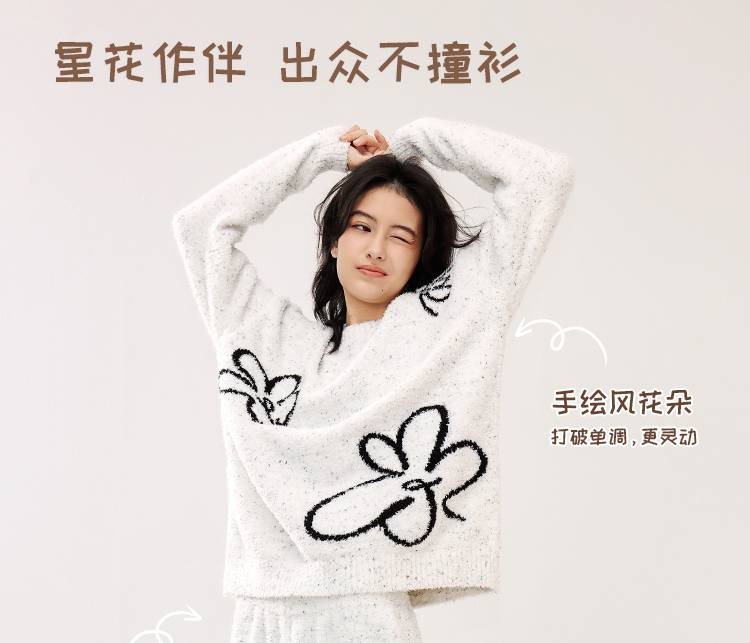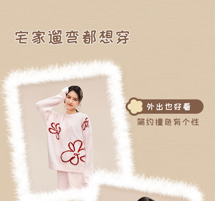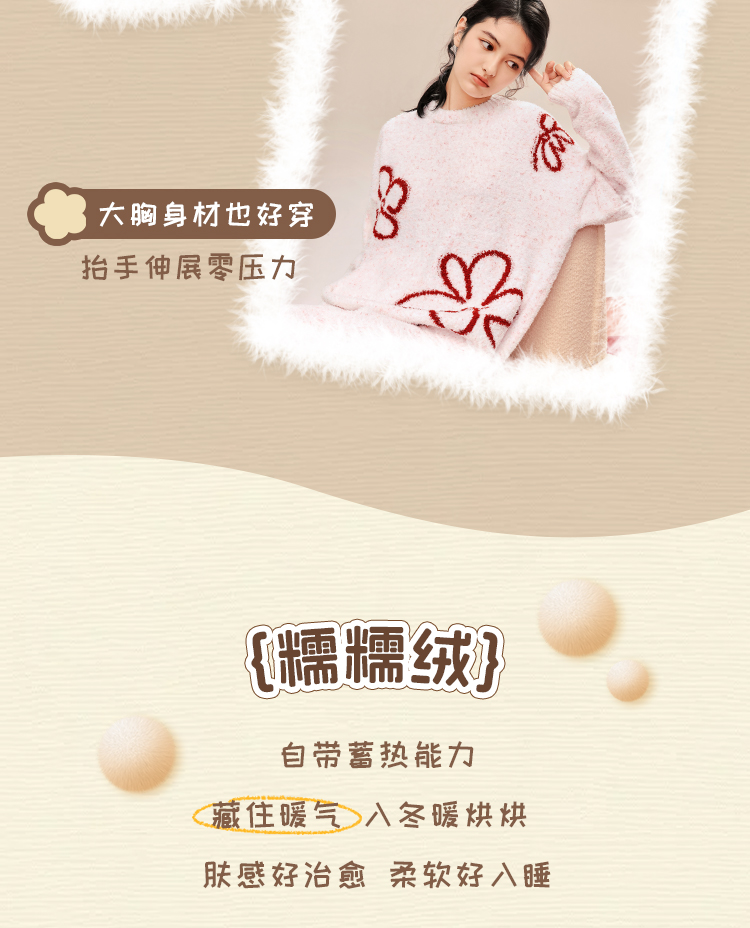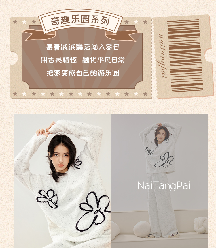 奶糖派奇趣乐园系列花趣圆领睡衣宽松舒适亲肤毛绒保暖秋冬家居服