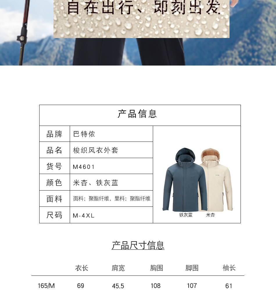 9616巴特侬运动风衣女运动夹克拉链防水女休闲外套可拆帽上衣