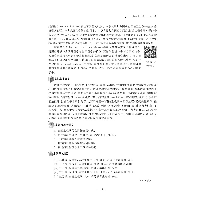 该教材是根据医学院校医学类专科起点本科学历教育(专升本)专业基础课程而撰写的,在 第1版的基础上修订而成。教材的编写目的在于:①在有限的时间内让学生对病理生理知识有概 括的了解;②传授一些在临床上能学以致用的内容;③为部分有志于临床医学探索的学生打下初 步的西医理论基础。总的来说,要以开拓学生思路,在方法上予以启迪,充分展示现代医学基础 研究的新进展、新思路、新方法,培养学生的创新意识和创新能力为教材编写的指导思想。