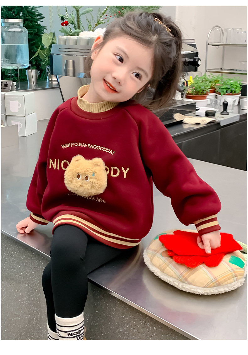 【新款女童卫衣,加绒加厚,保暖舒适】女童卫衣新款加绒 秋冬宝宝冬季上衣 洋气冬装 儿童衣服加厚保暖卫衣-QQ