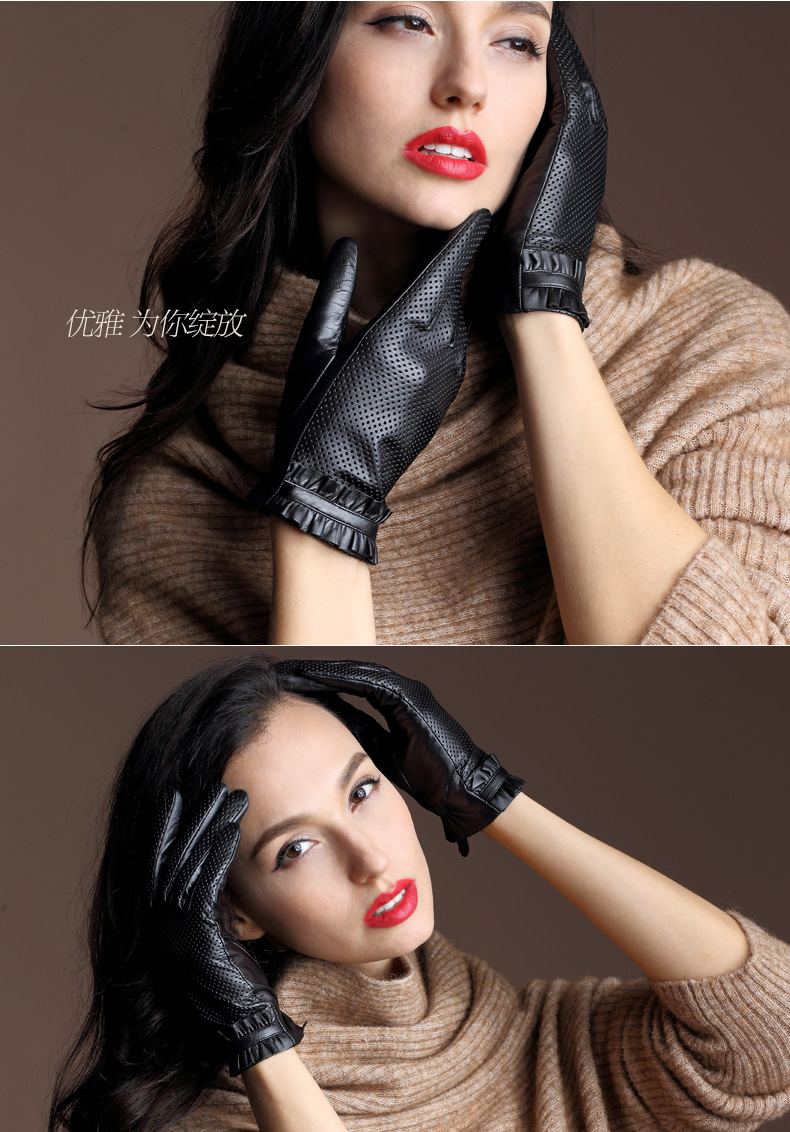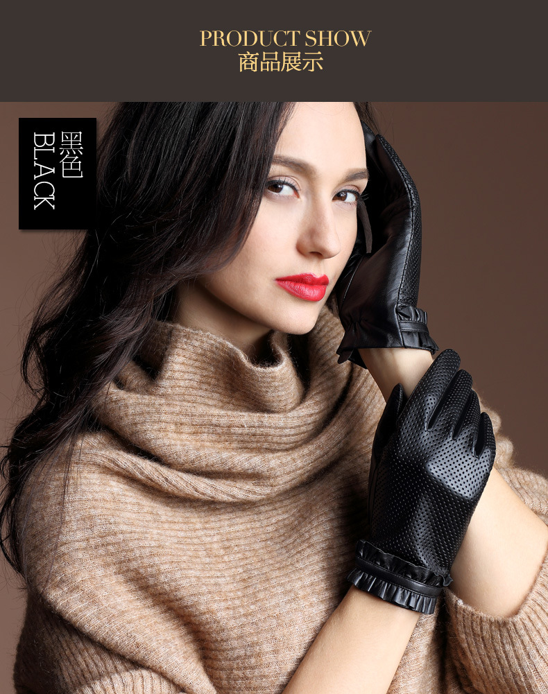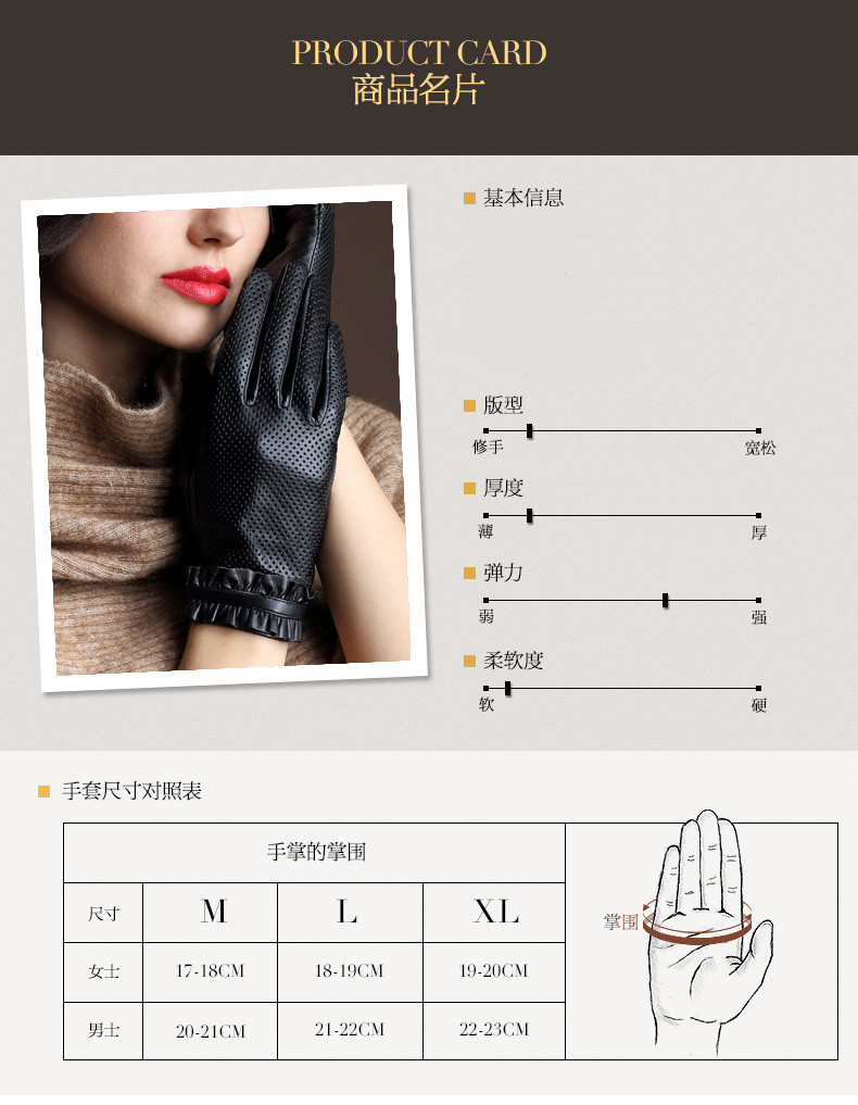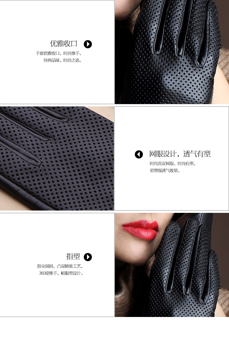 JM-36新品女士山羊皮真皮打孔骑行开车舒适薄款丝里手套