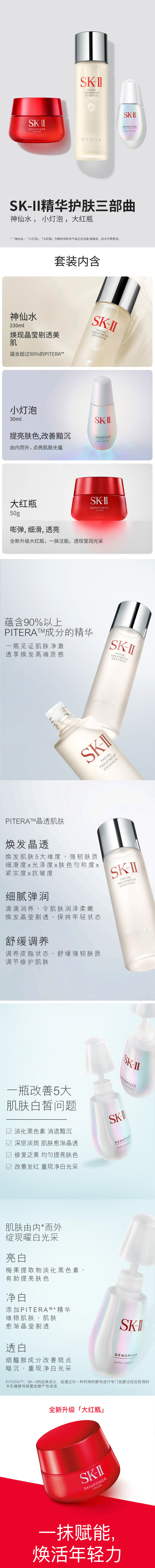 SK-II精华护肤三部曲(神仙水230ml+大红瓶50g+小灯泡50ml)赠洁面小样20g