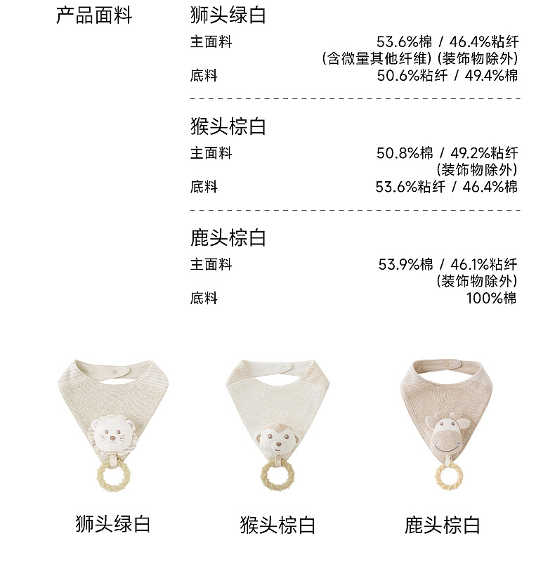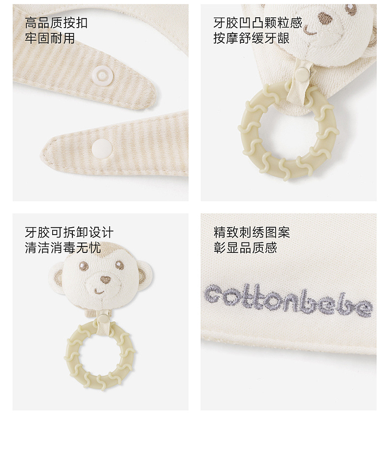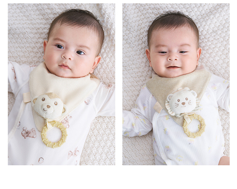 【精梳棉】英氏儿童口水巾四季可用宝宝卡通手挽带牙胶三角口水巾男童女童