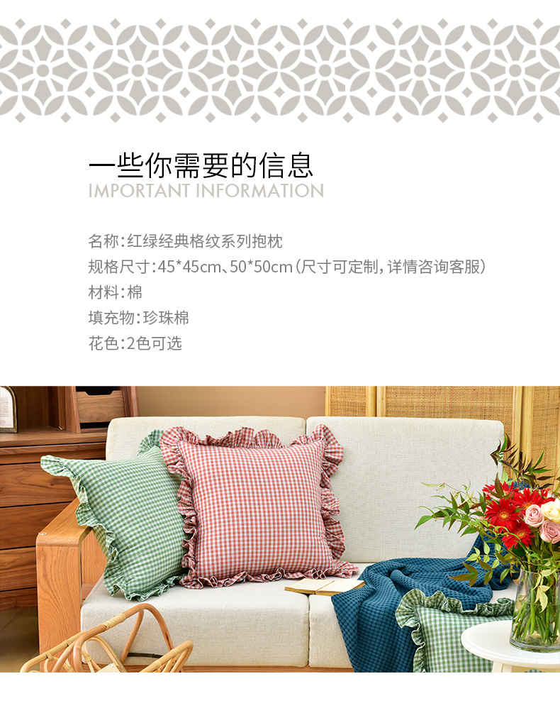 红绿经典格纹系列抱枕沙发客厅睡觉抱枕