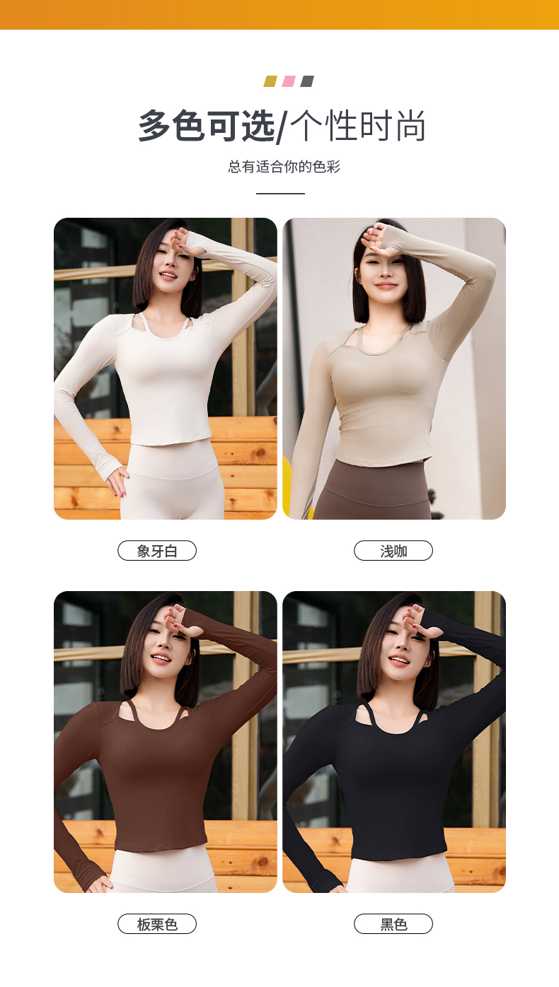 跃牌【倚窗听雨】系列 秋冬新款瑜伽服女T裇带胸垫紧身显瘦瑜伽长袖CX56