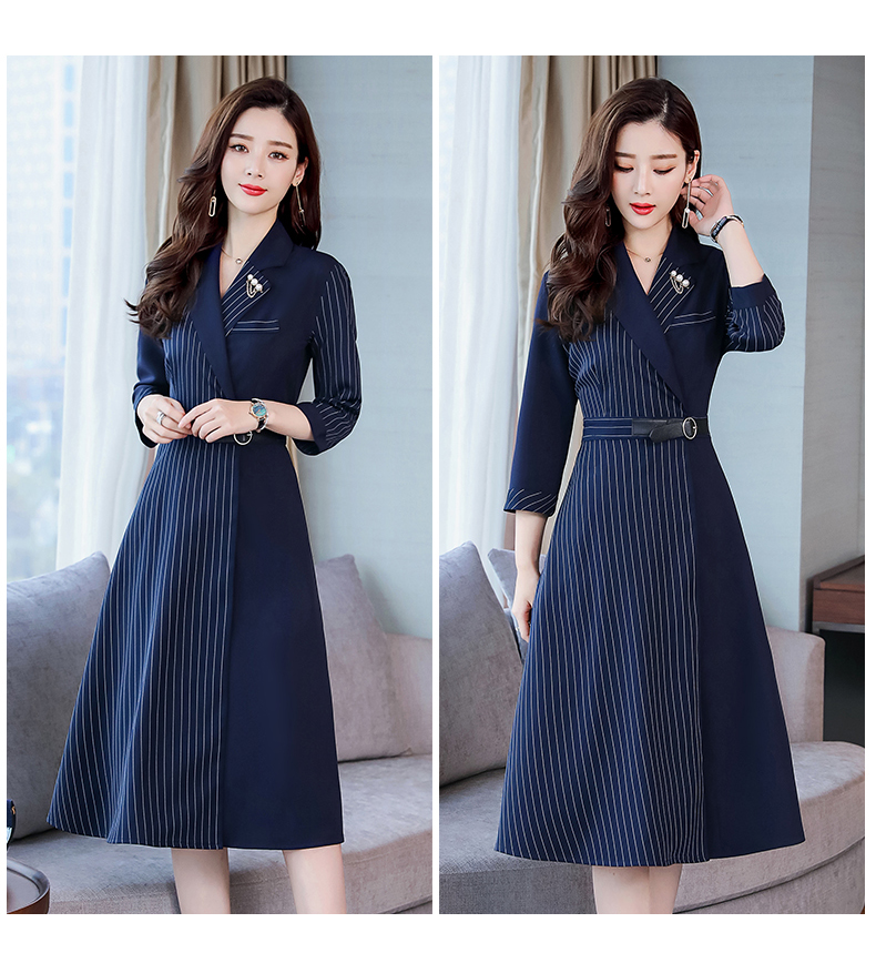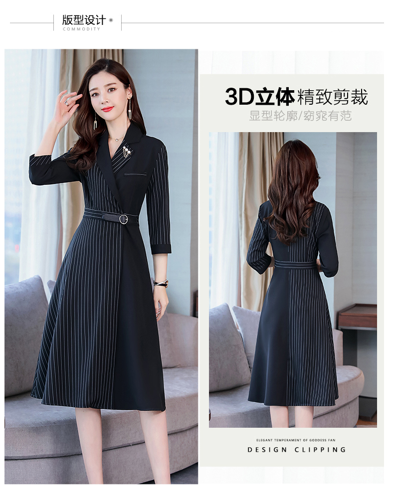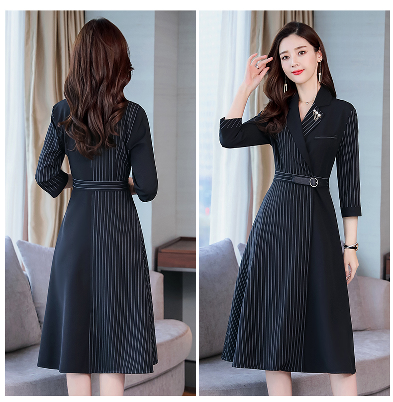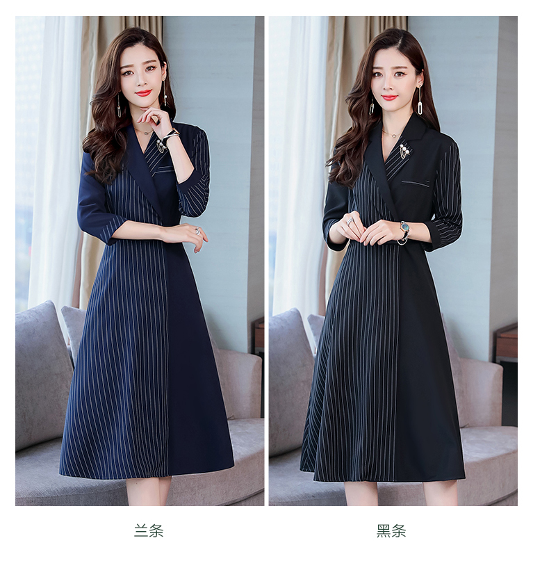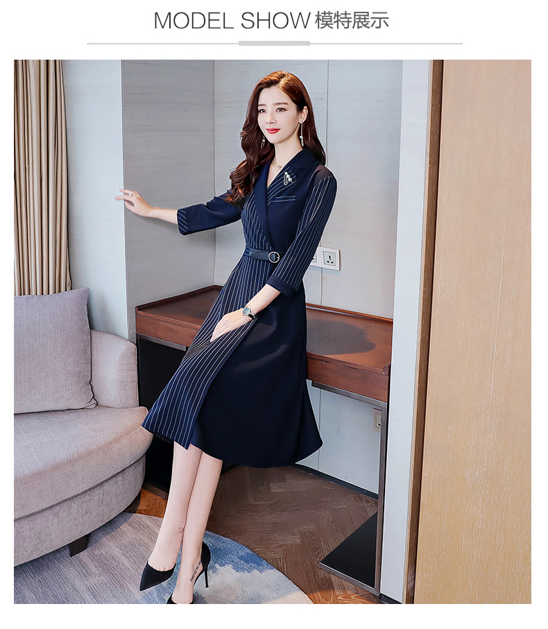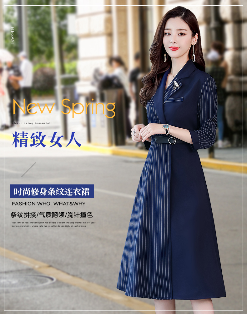 WZNH-ZYQL72时尚潮流舒适简约条纹中长款长袖连衣裙
