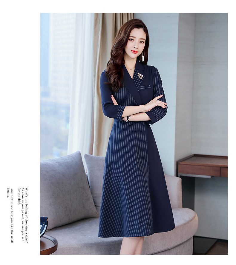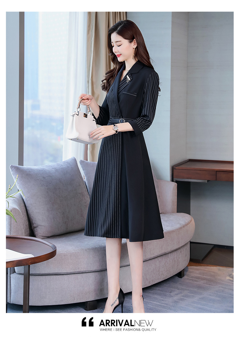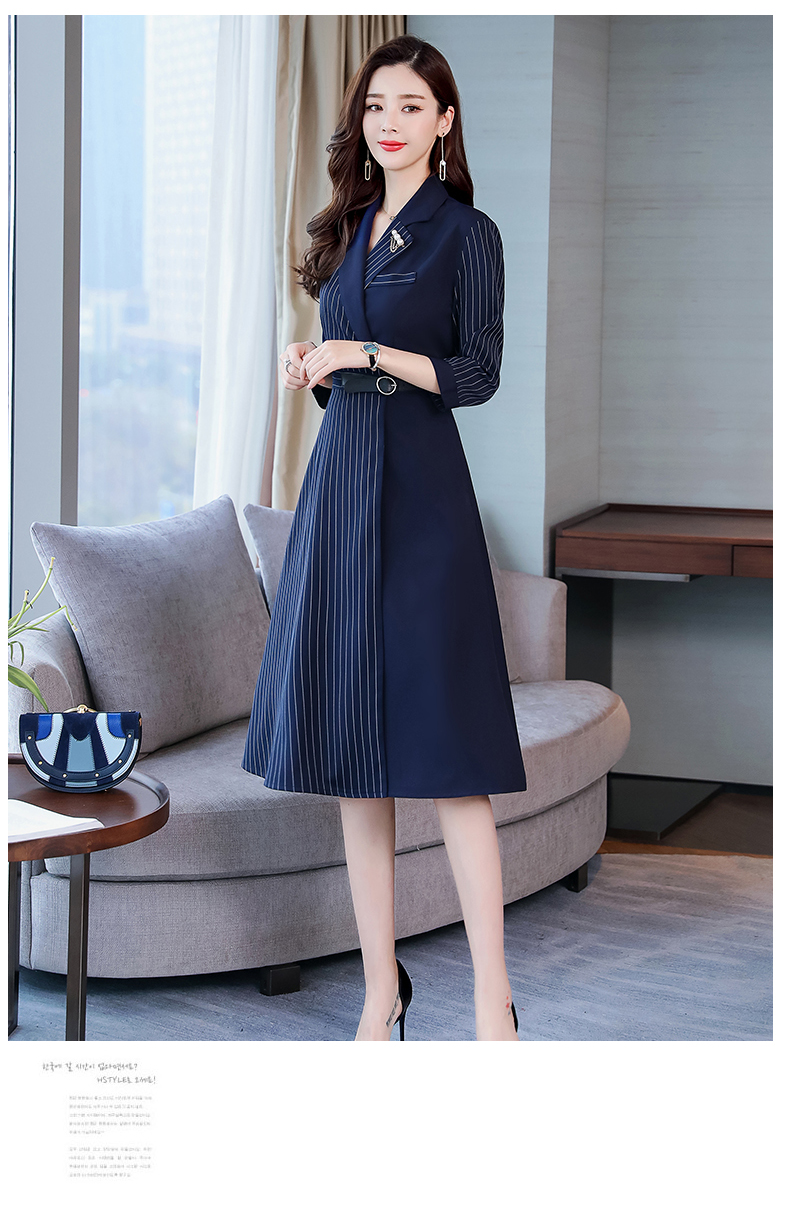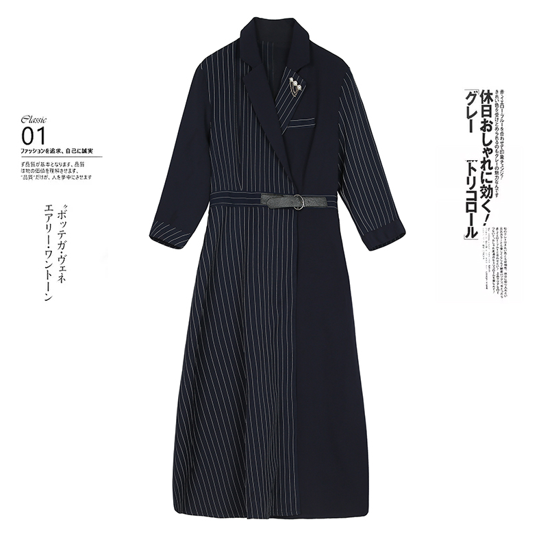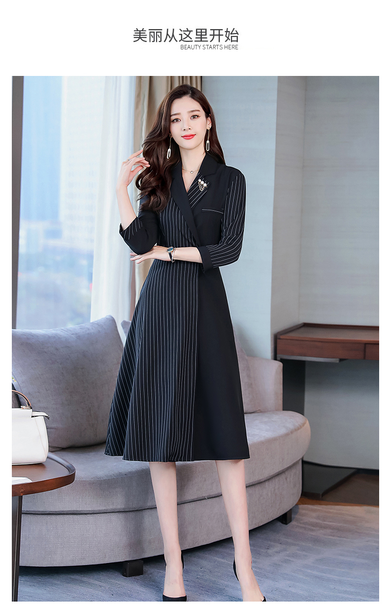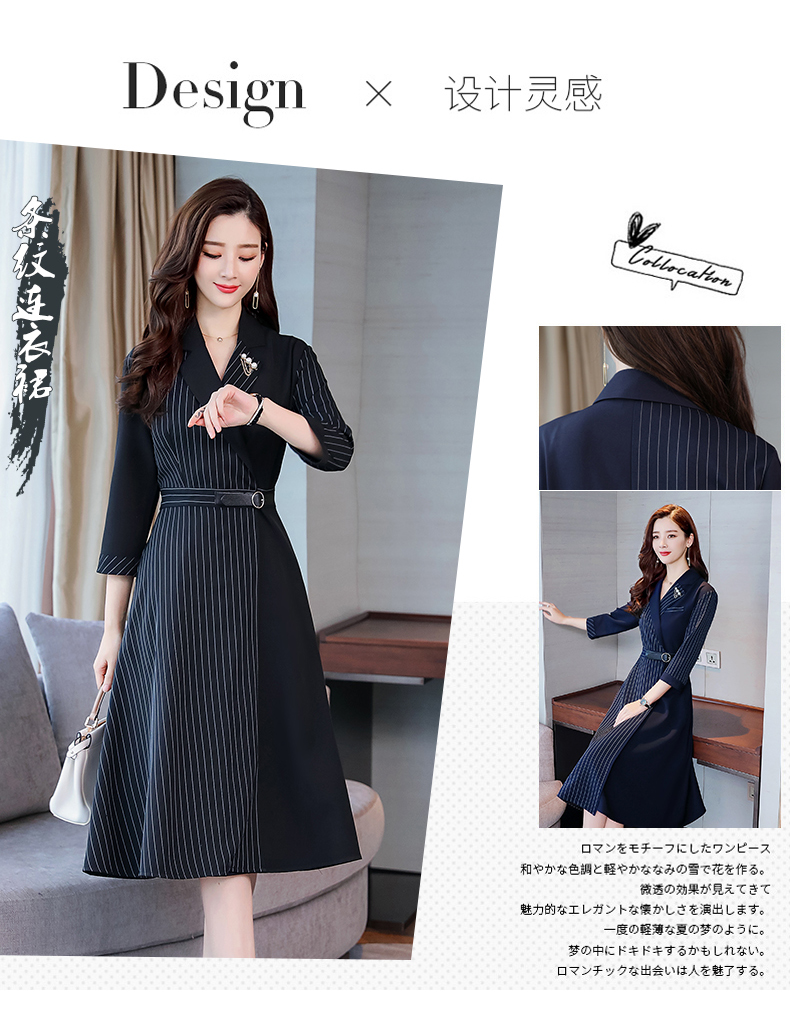 WZNH-ZYQL72时尚潮流舒适简约条纹中长款长袖连衣裙