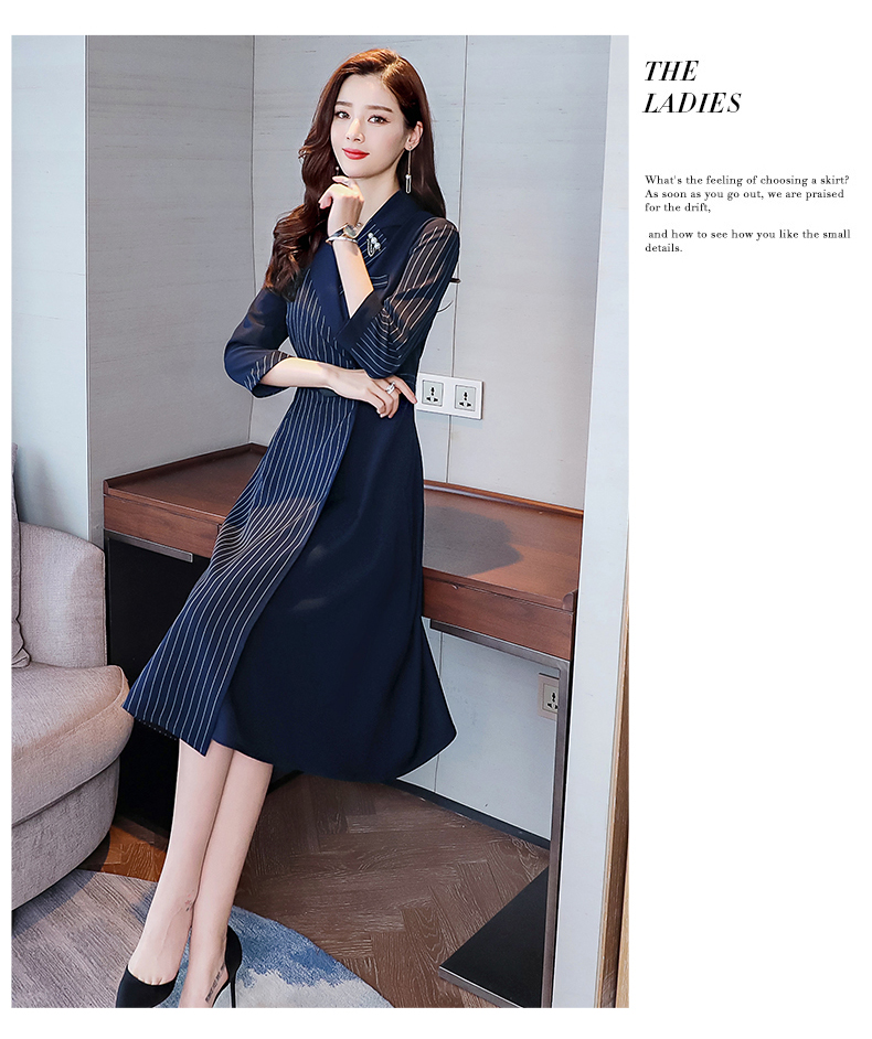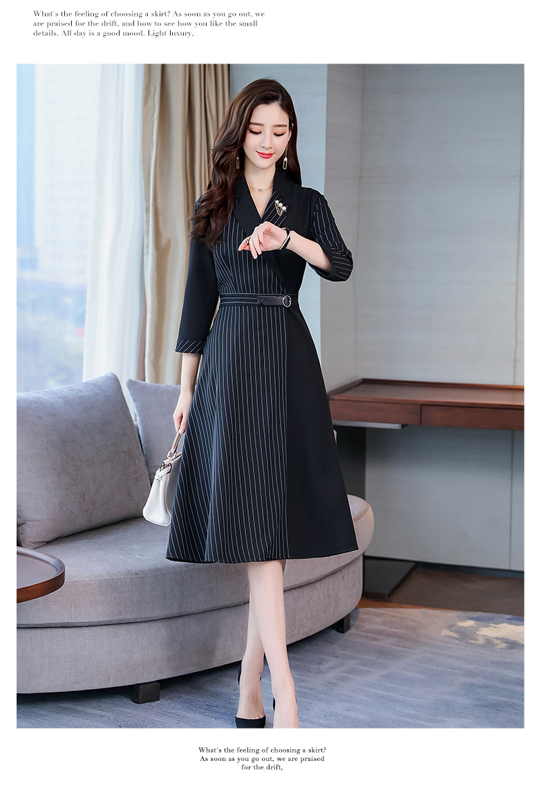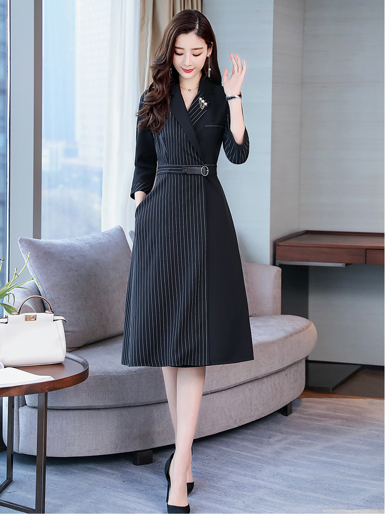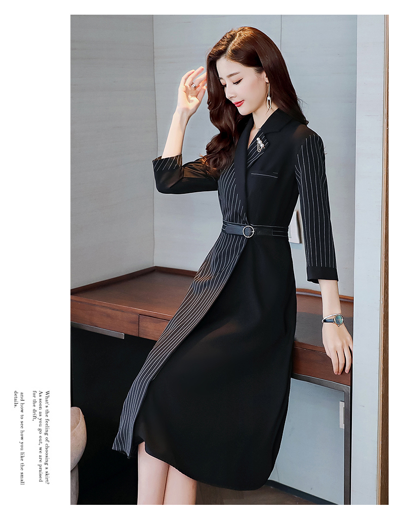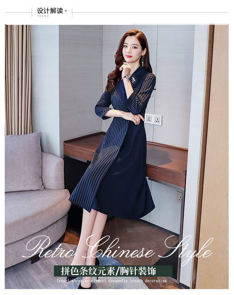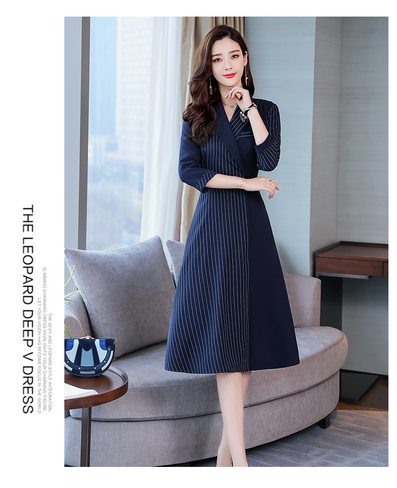 WZNH-ZYQL72时尚潮流舒适简约条纹中长款长袖连衣裙