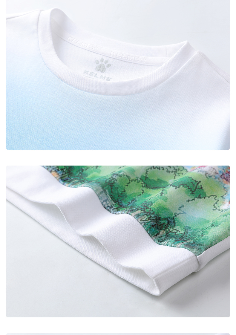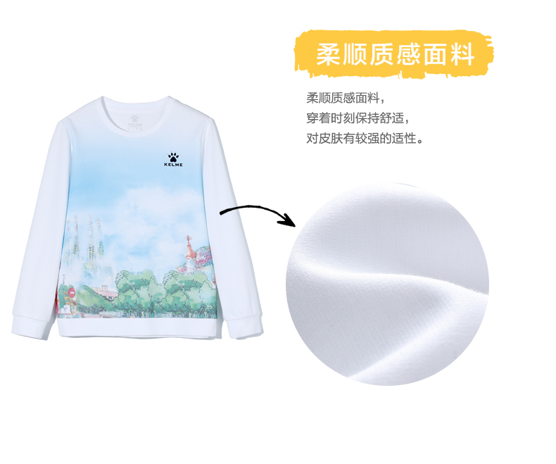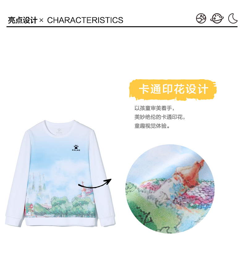 kelme(kids)男童长袖春季新款儿童印花长袖T恤圆领上衣潮