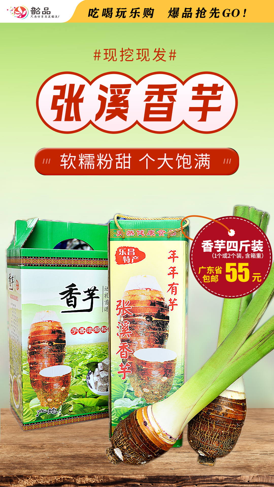 乐昌炮弹香芋,现挖现发!炮弹芋头礼盒装,4斤装(1个或2个装,含箱重)【省内包邮】