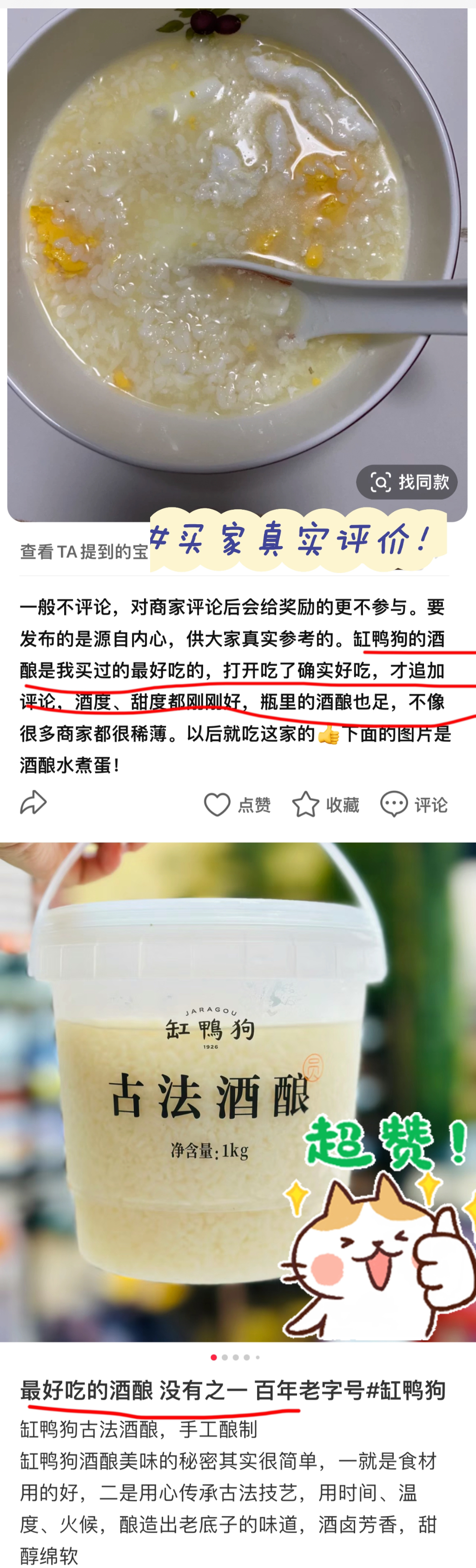 确实,缸鸭狗古法酒酿一经上市就获得了无数好评,也有人给出“酒酿界天花板”的高度评价。