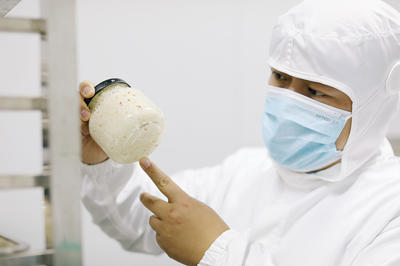 蒸箱杀菌由于汽锅压力的关系,无法保证从始至终都用70度高温杀菌,因而对菌群的控制力度不够稳定。改成喷水杀菌后,能保证持续稳定的70度高温穿透瓶身,更加均匀有效的杀菌,让菌群精准控制在健康有益的范围内。