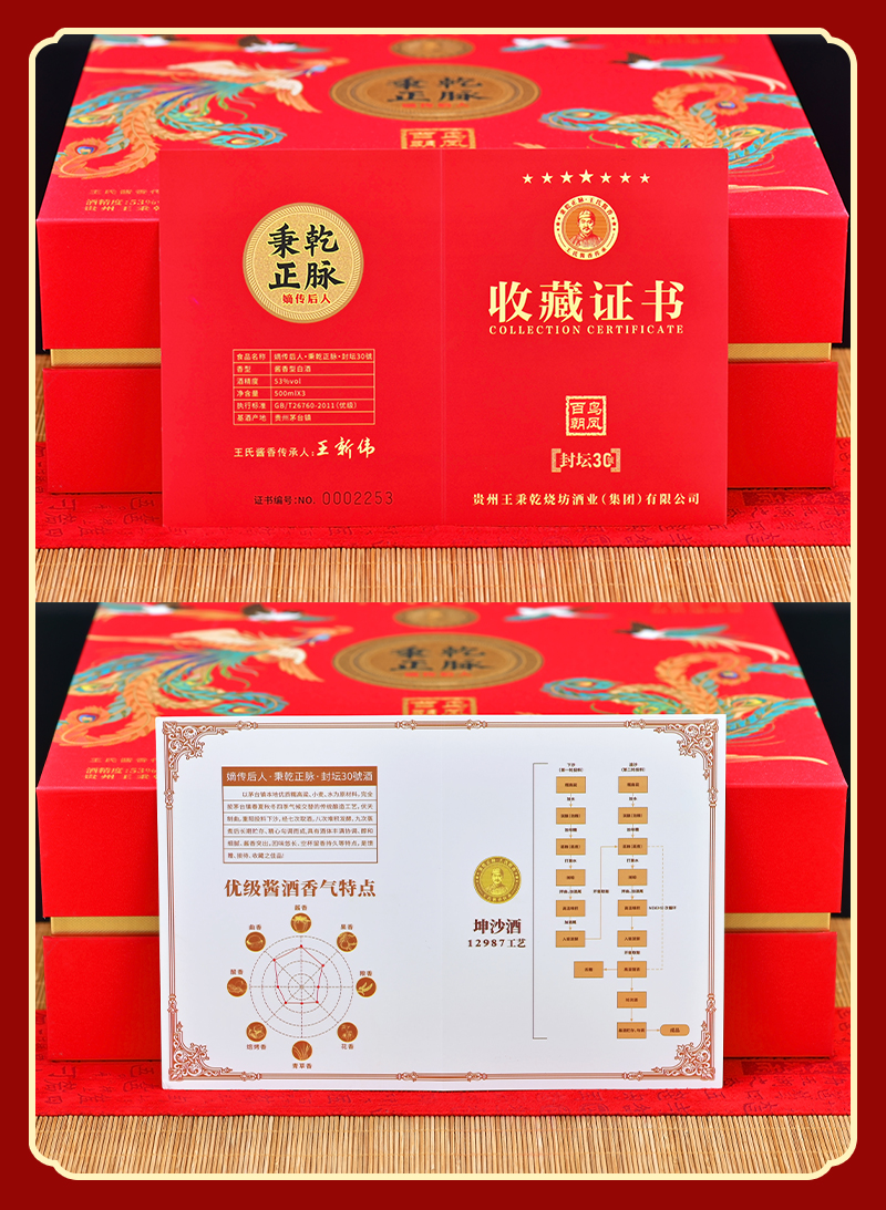 【秉乾正脉 王氏嫡传后人封坛30號酒】酱酒正脉,传承经典酱香 500ml*3瓶 礼盒装