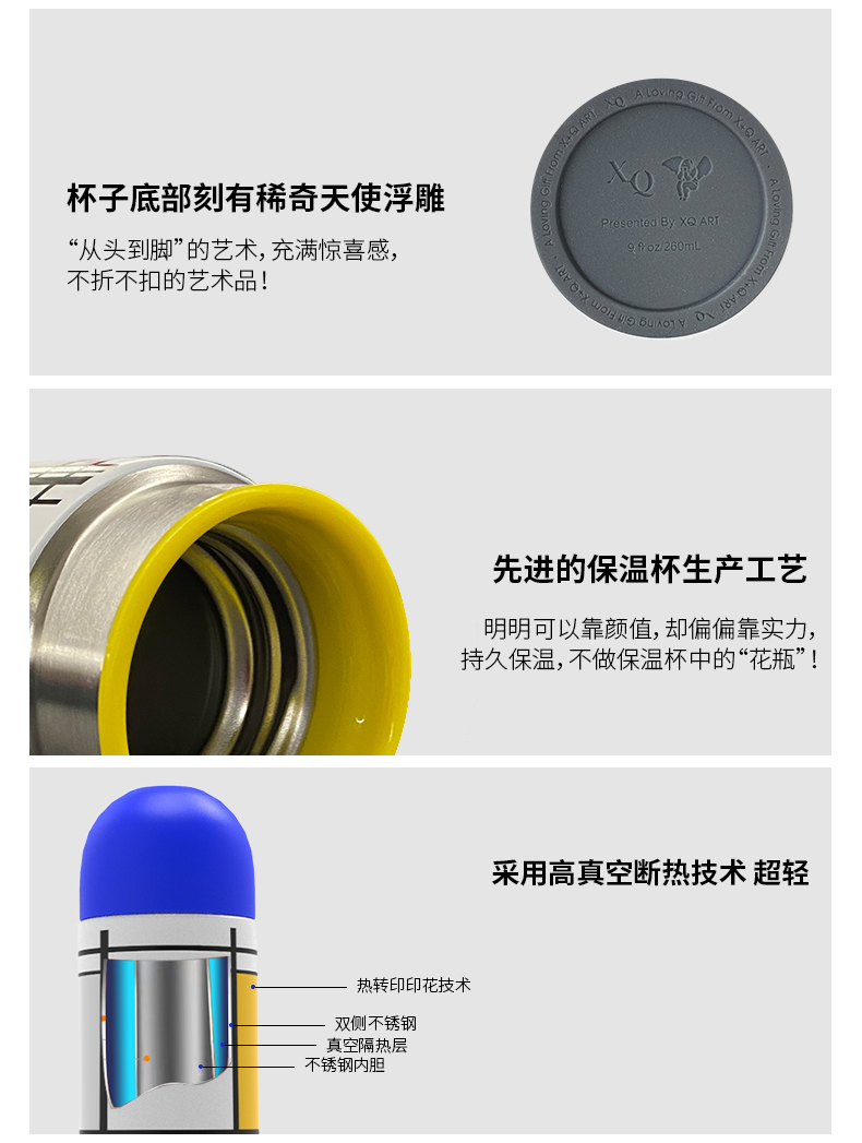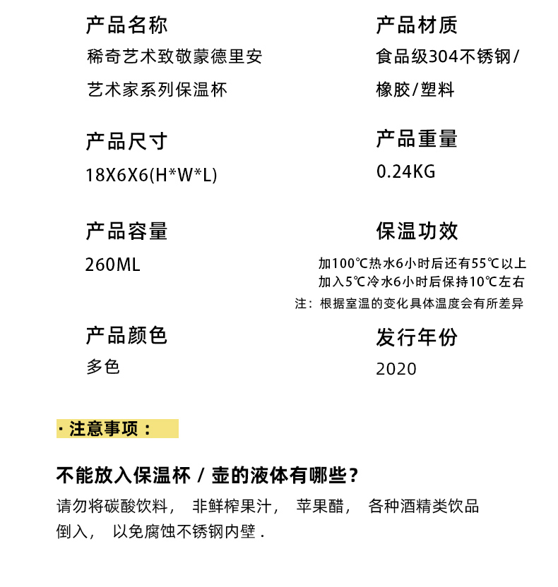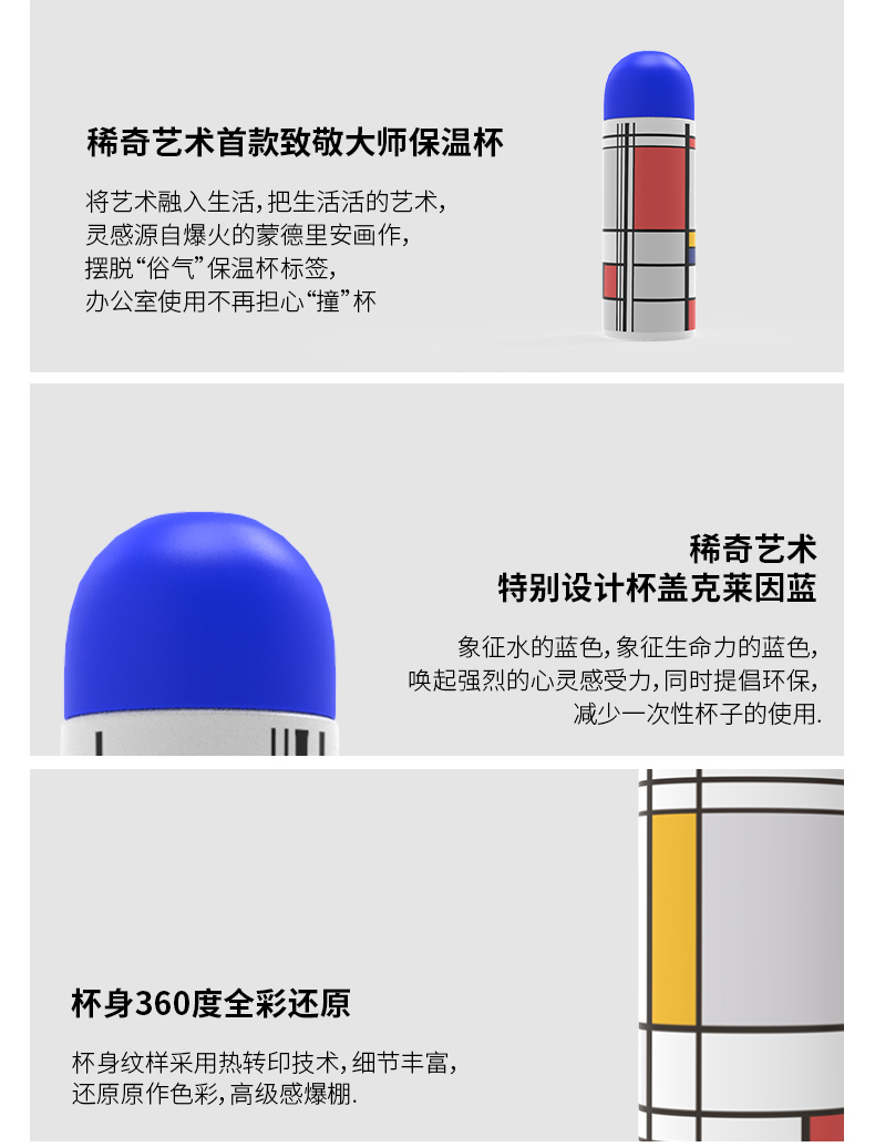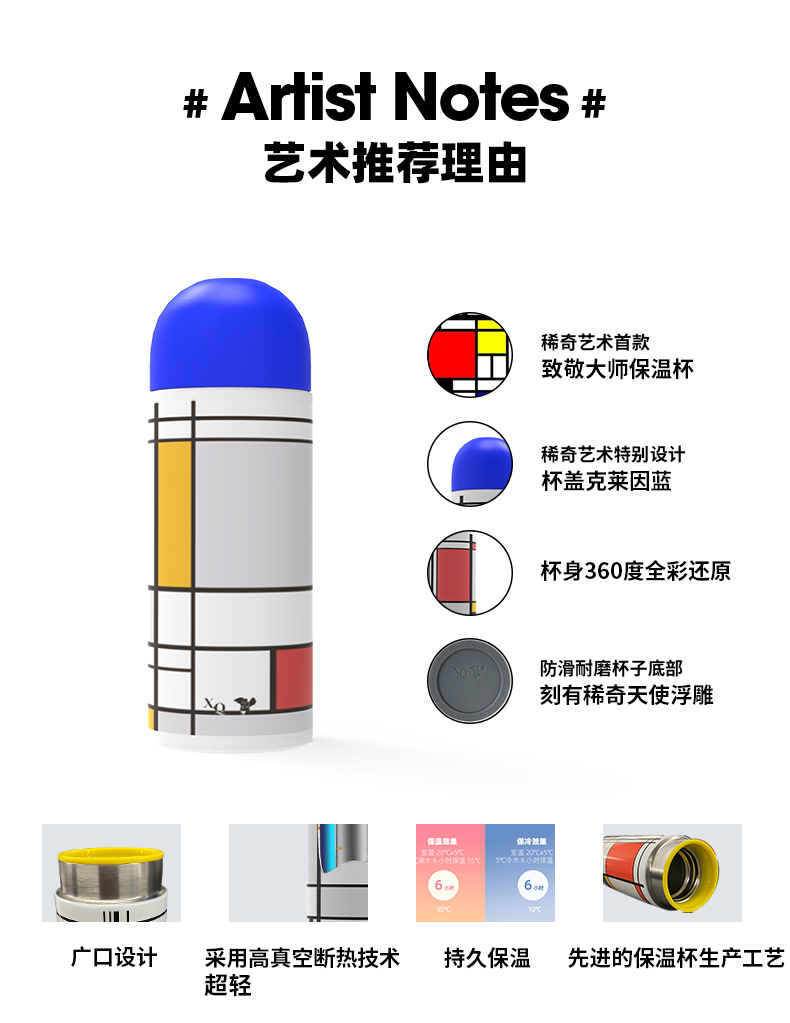稀奇艺术蒙德里安持久随身携带保温水杯天使浮雕限量创意礼盒包装