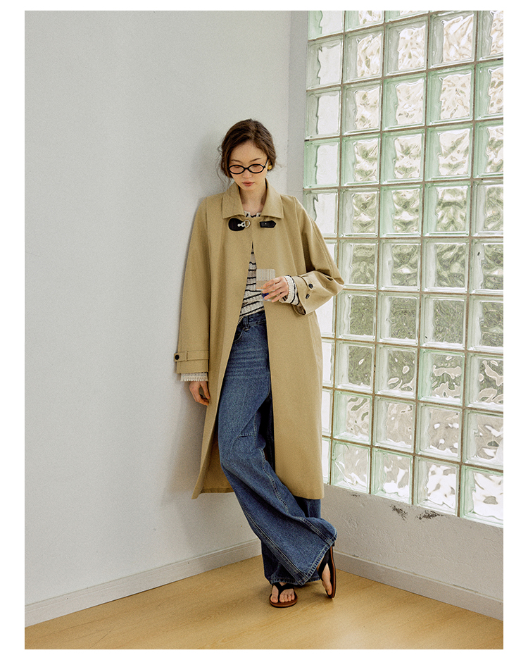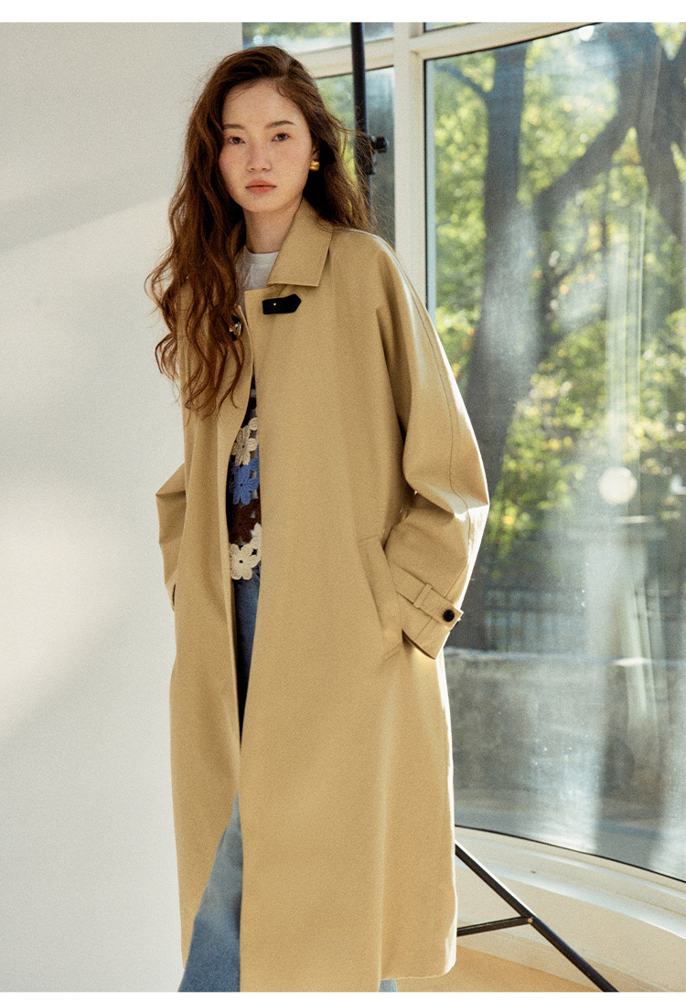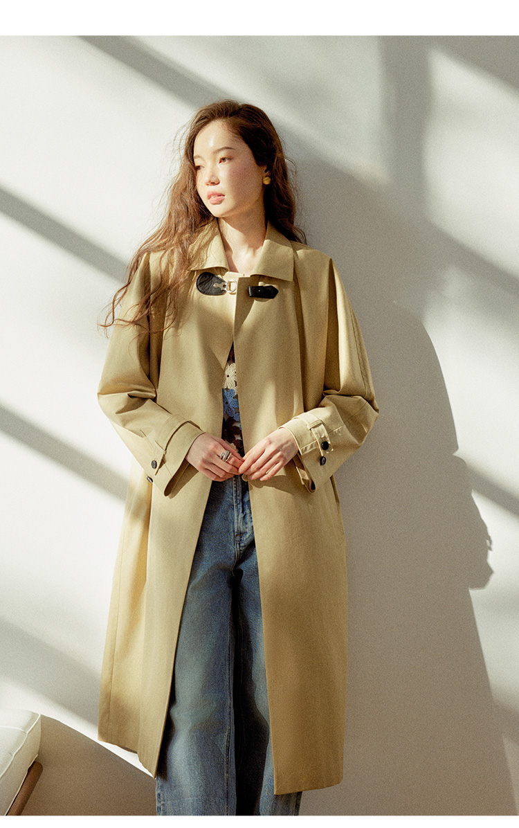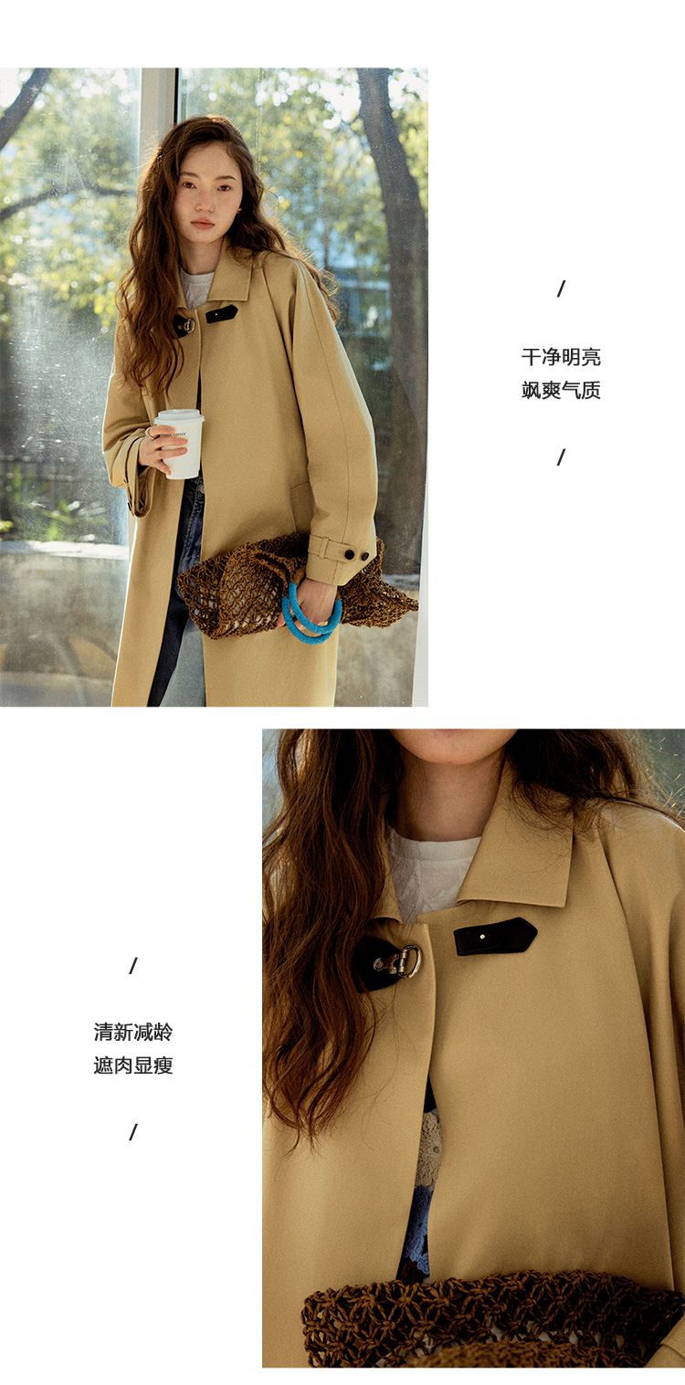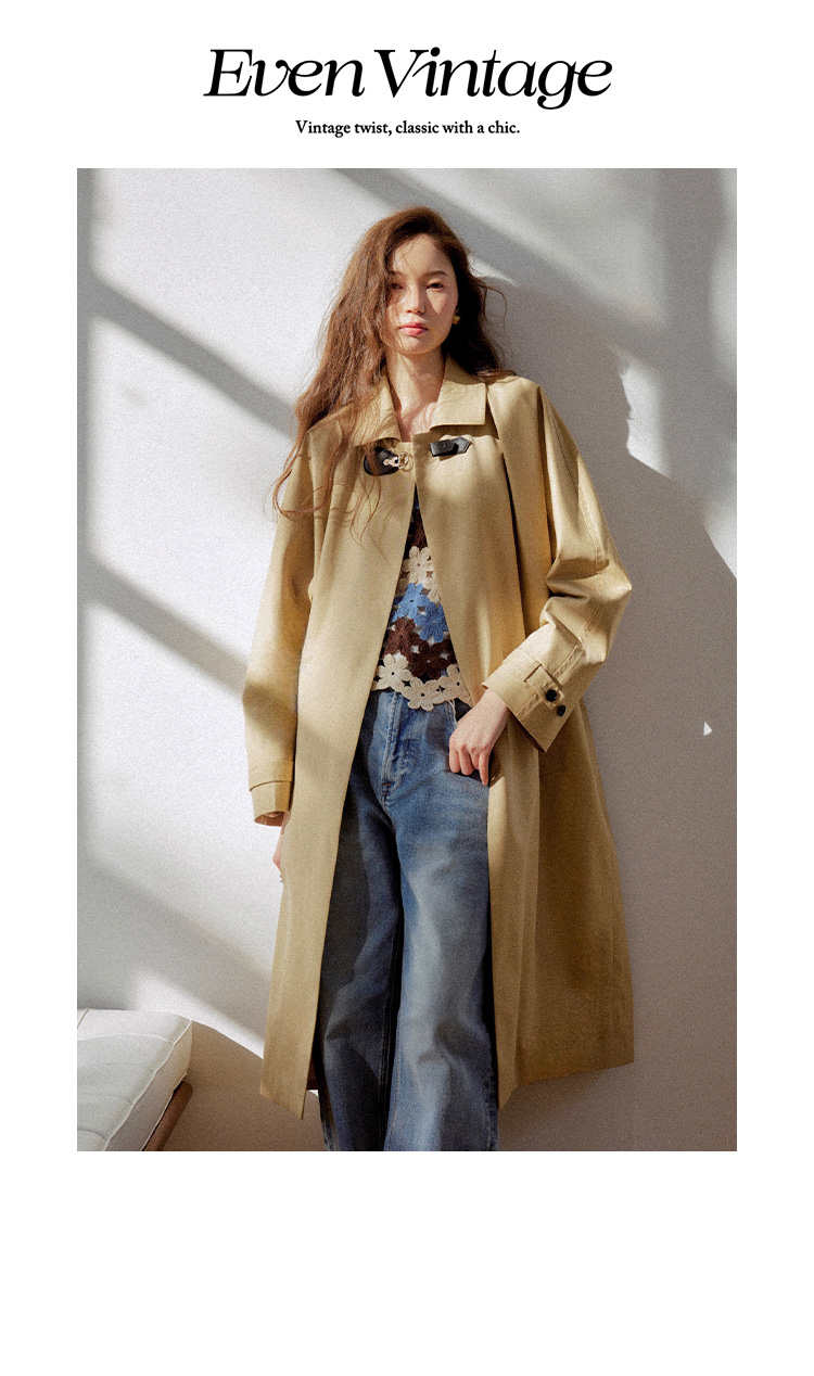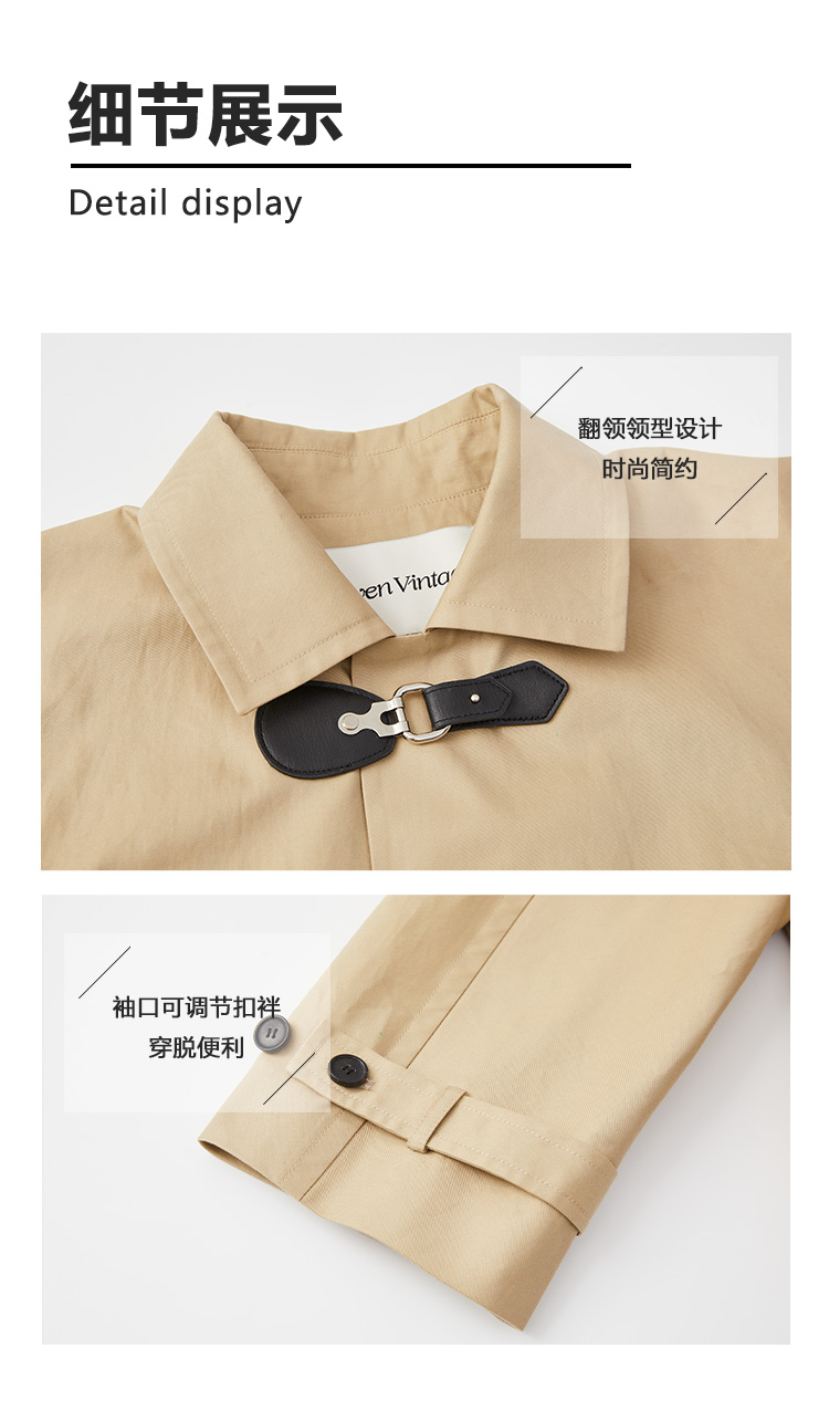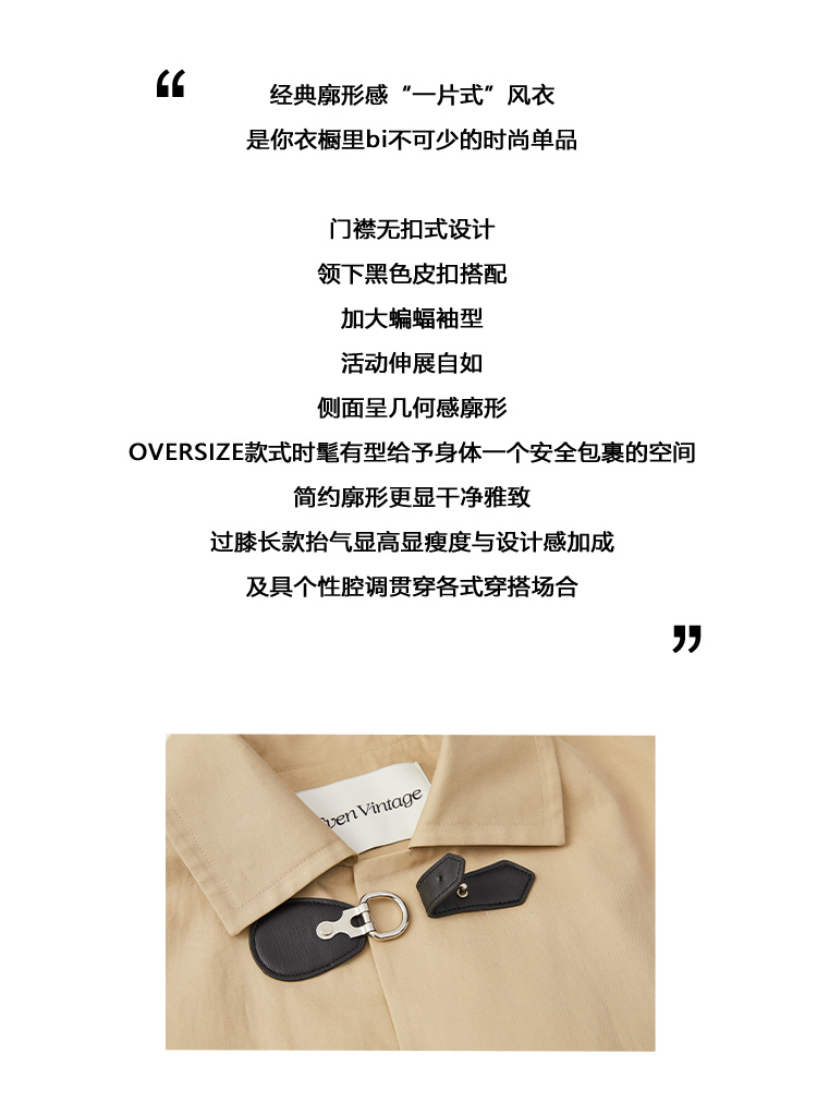 【现货】Even Vintage|archroma三防工艺长绒棉 无扣式皮扣翻领一片式风衣