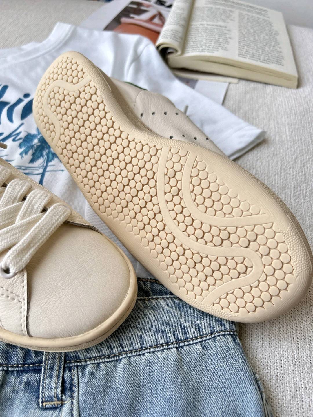 这双小白鞋真的巨软!!穿上巨惊艳,上脚的第一感觉就是太舒服啦,一双可以卷起来的板鞋可以直接裸穿,软软的很舒心,主打一个显高显瘦and踩屎感!
