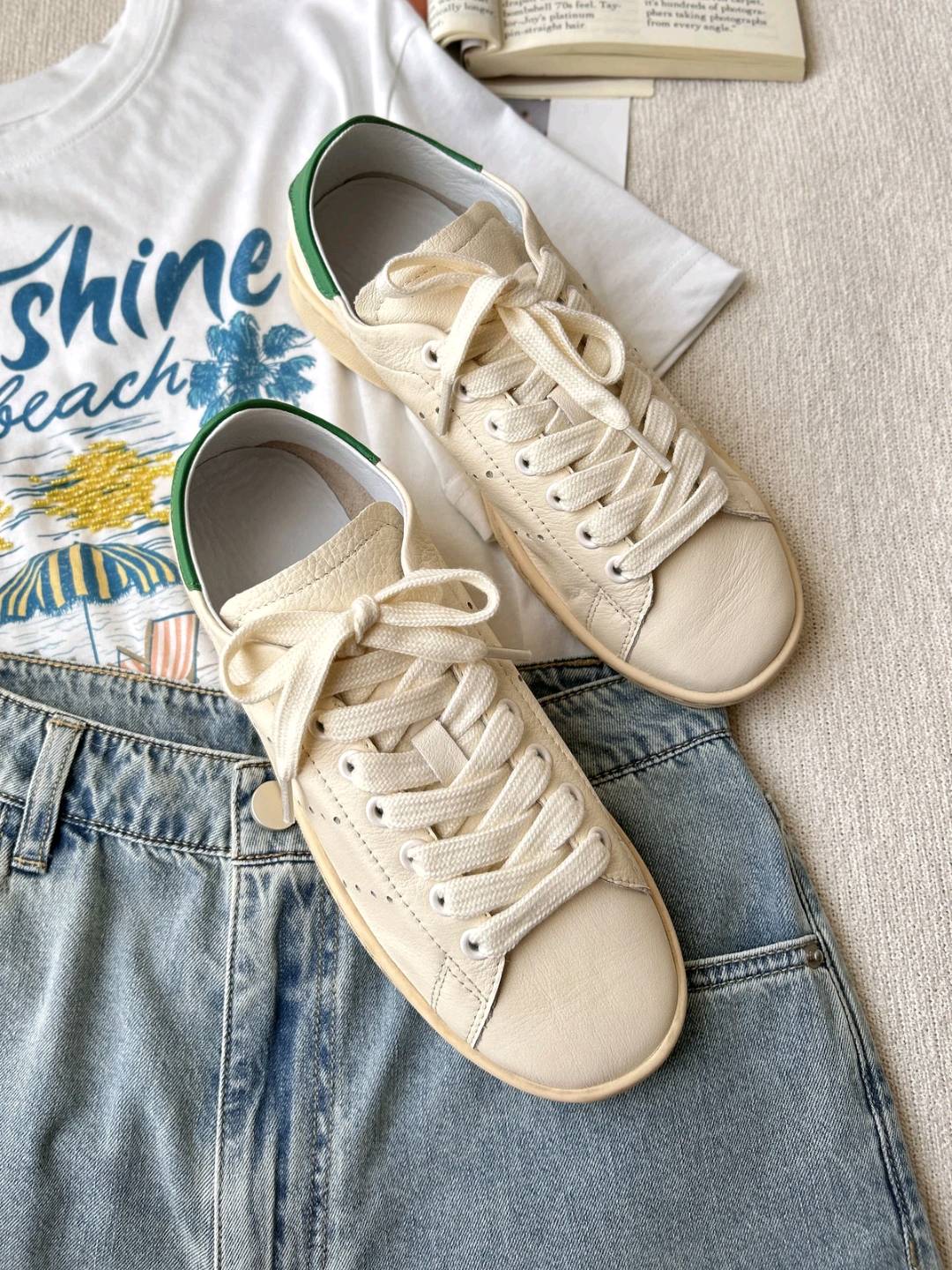 经典百搭款,复古鞋头,米白色的鞋身和鞋底带有明显的做日,注入法式浪漫!满满的细节!