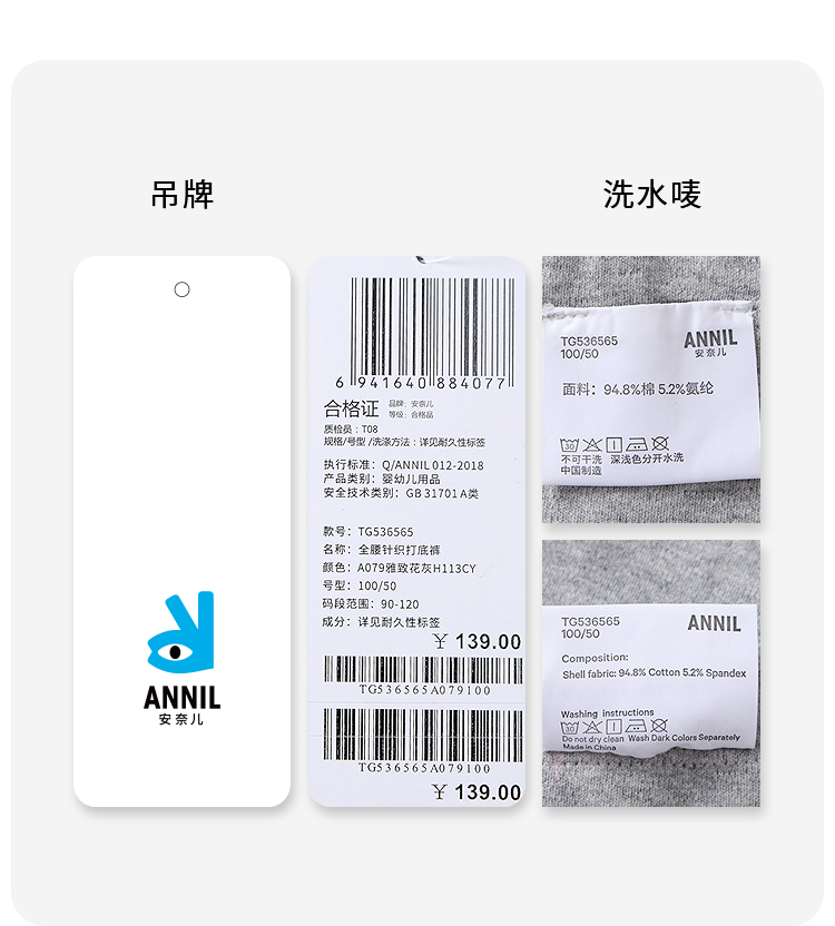 【实体店同款】女童全腰针织打底裤秋季新款安奈儿童装TG536565