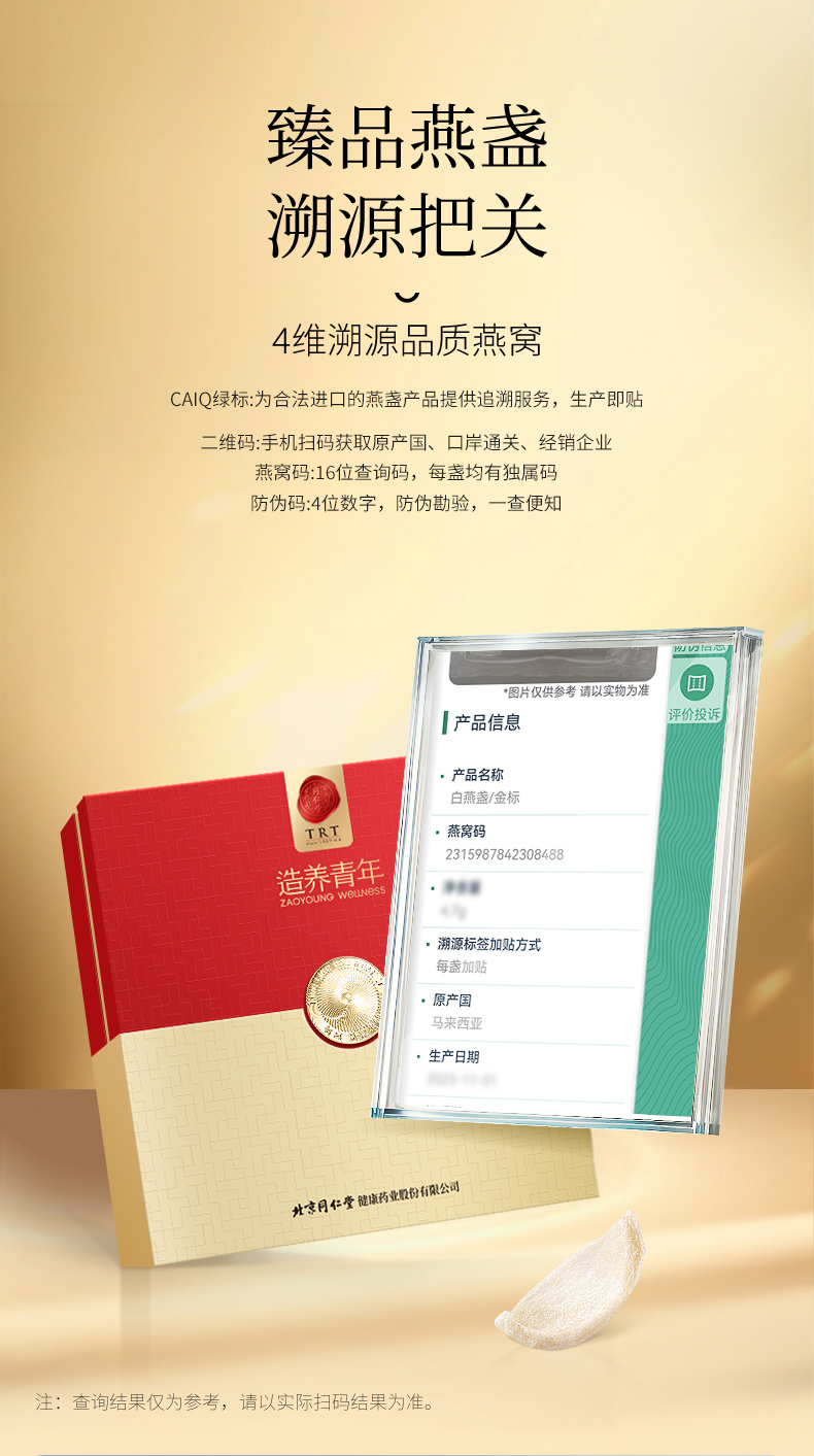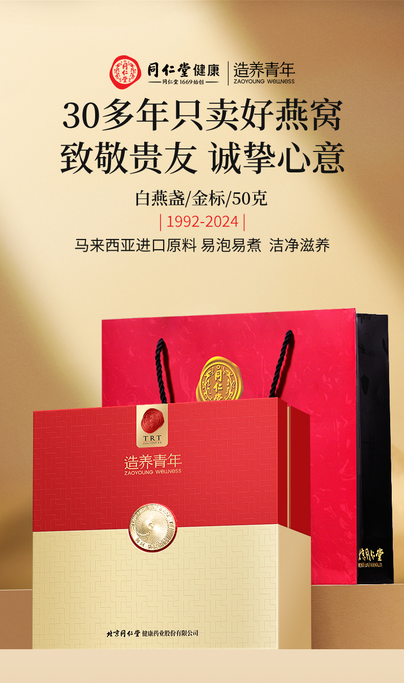 【正宗同仁堂品牌】北京同仁堂 造养青年 干燕窝(金标款) 50克 马来西亚原产 干盏溯源干燕盏 送长辈孝敬父母 孕妇滋补礼品SY