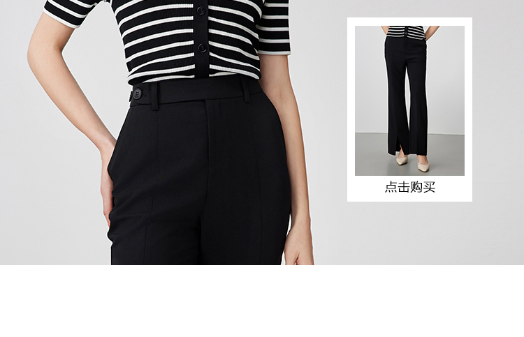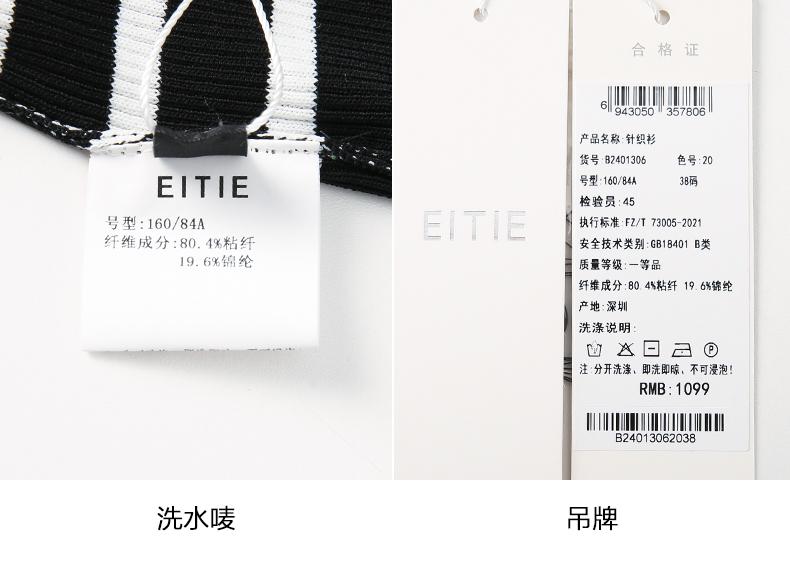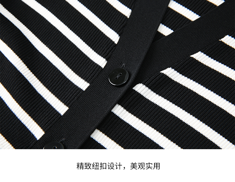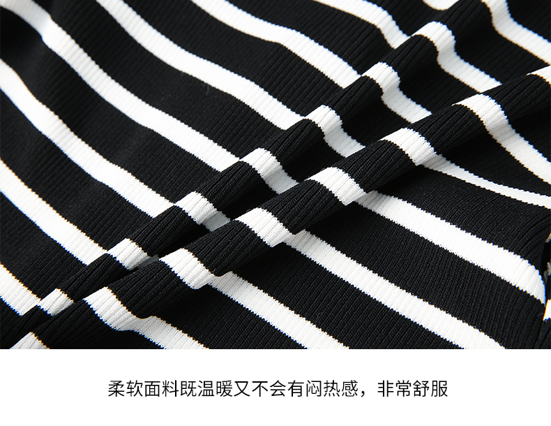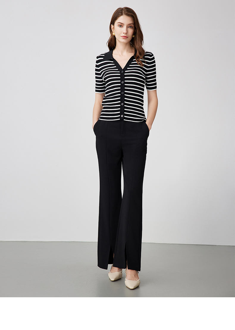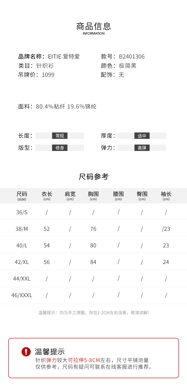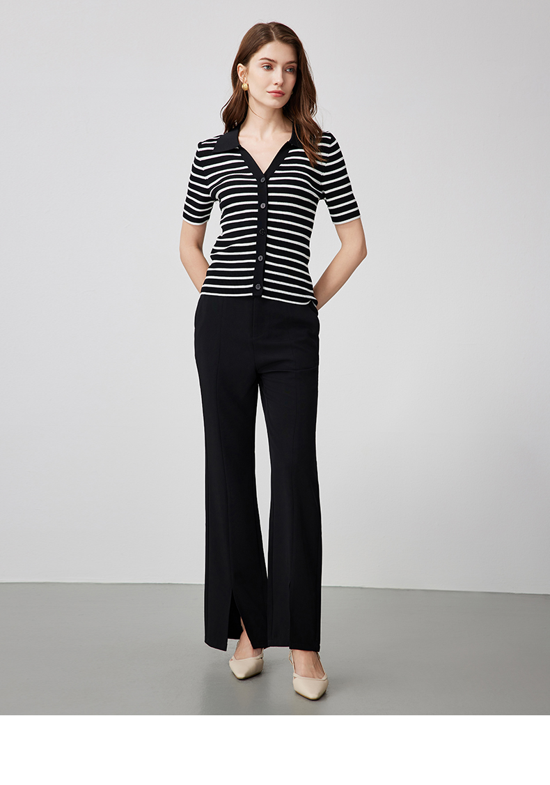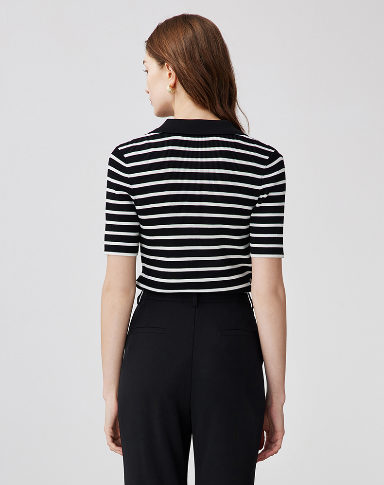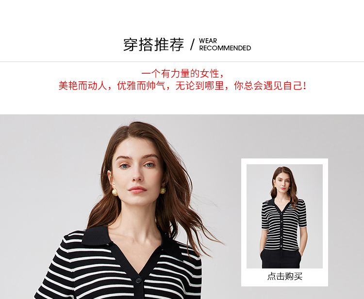 EITIE爱特爱修身显瘦黑白条纹翻领气质百搭针织衫上衣夏新款B2401306针织衫
