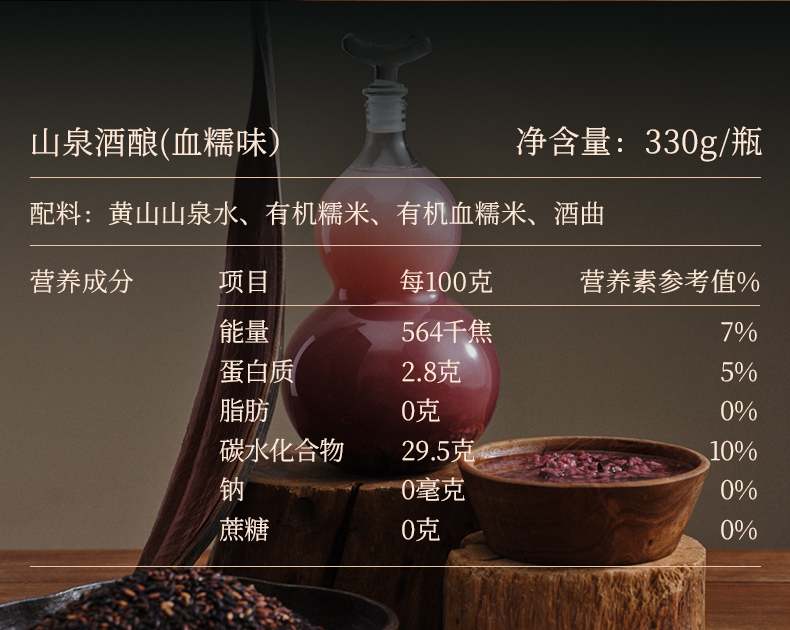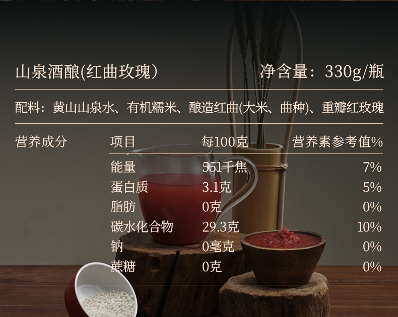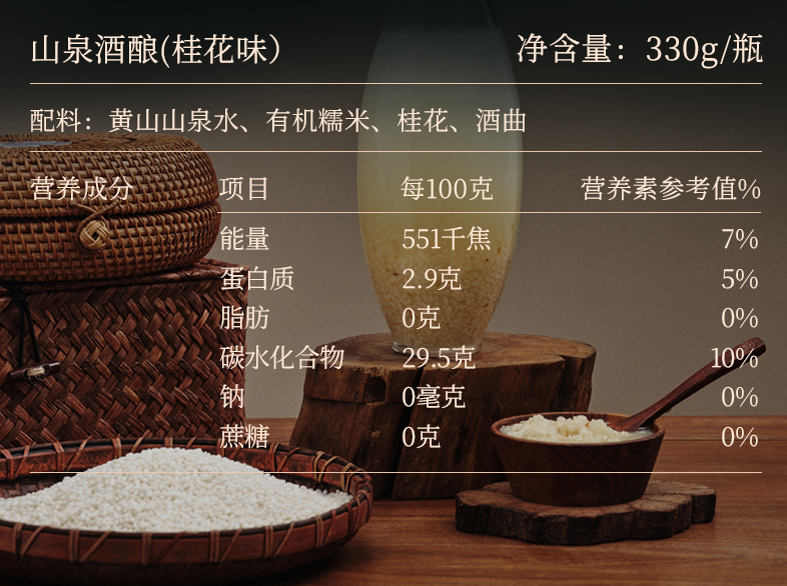 山泉有机酒酿 无醇米酒 弱碱山泉水酿 0农药化肥糯米 酒精度低于0.5vol% 桂花味、血糯味、红曲玫瑰味