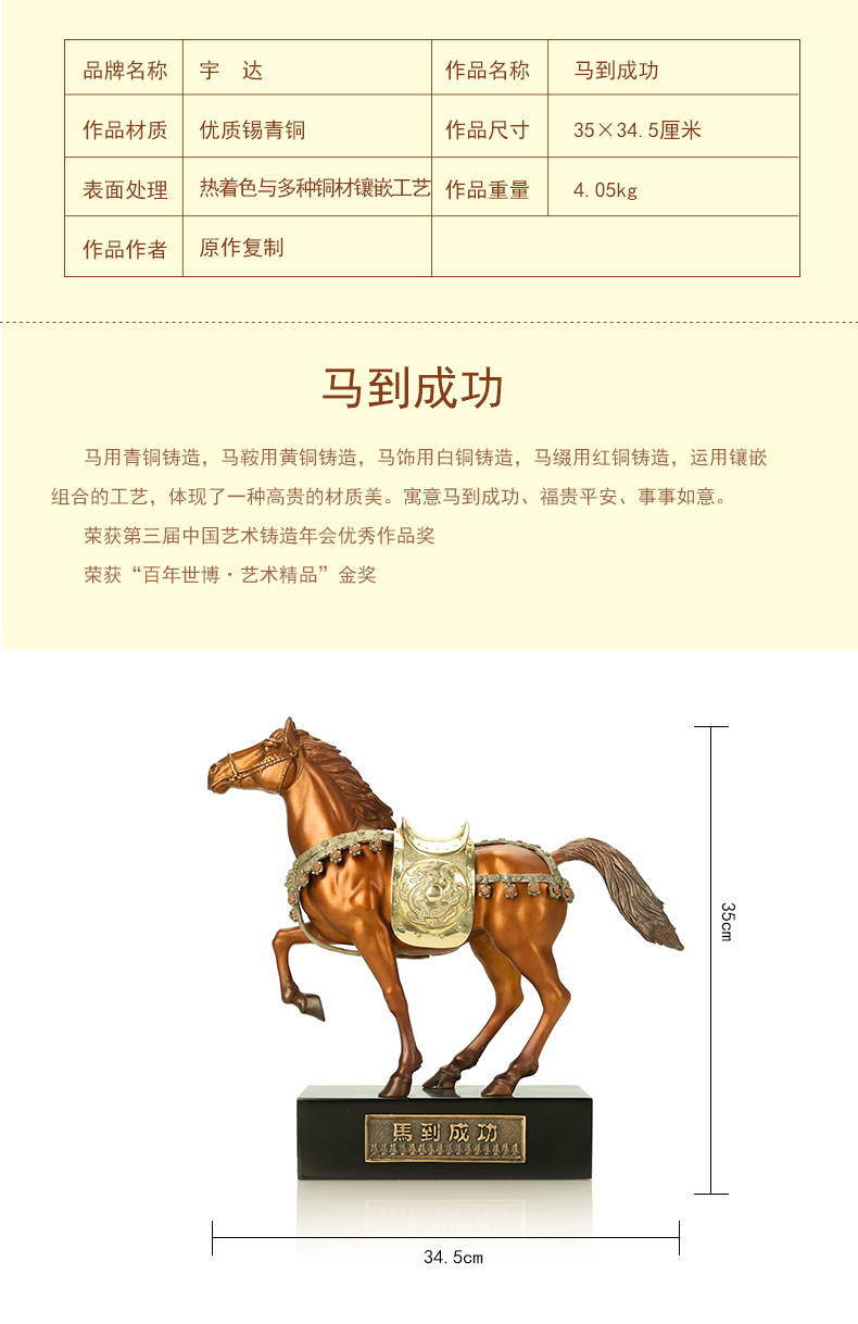 宇达青铜全铜马摆件《马到成功》十二生肖 创意装饰 家居办公工艺摆件
