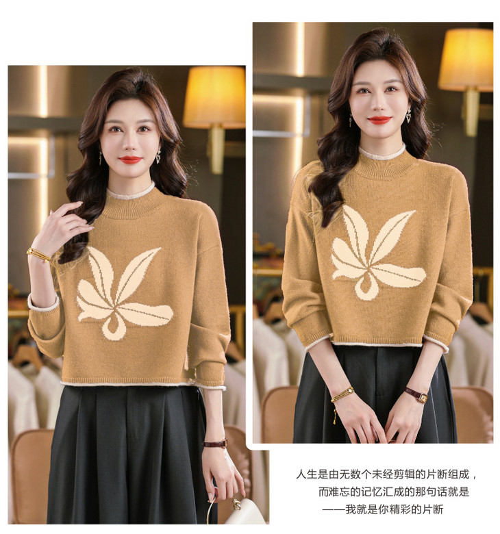 高腰短款毛衣,时尚时髦半高领打底衫CC-101-743