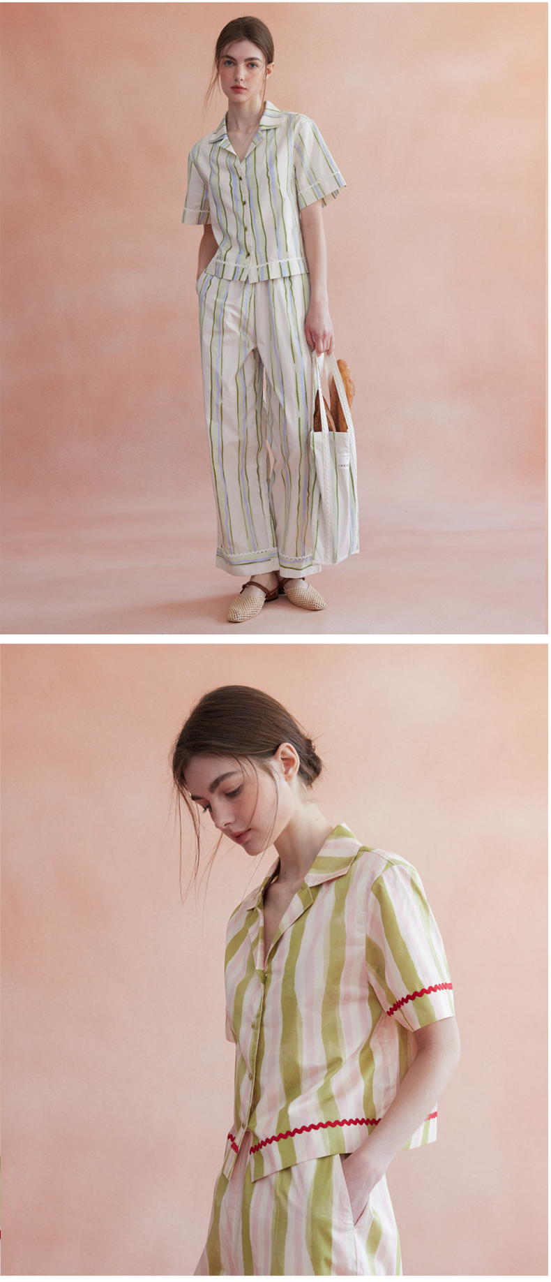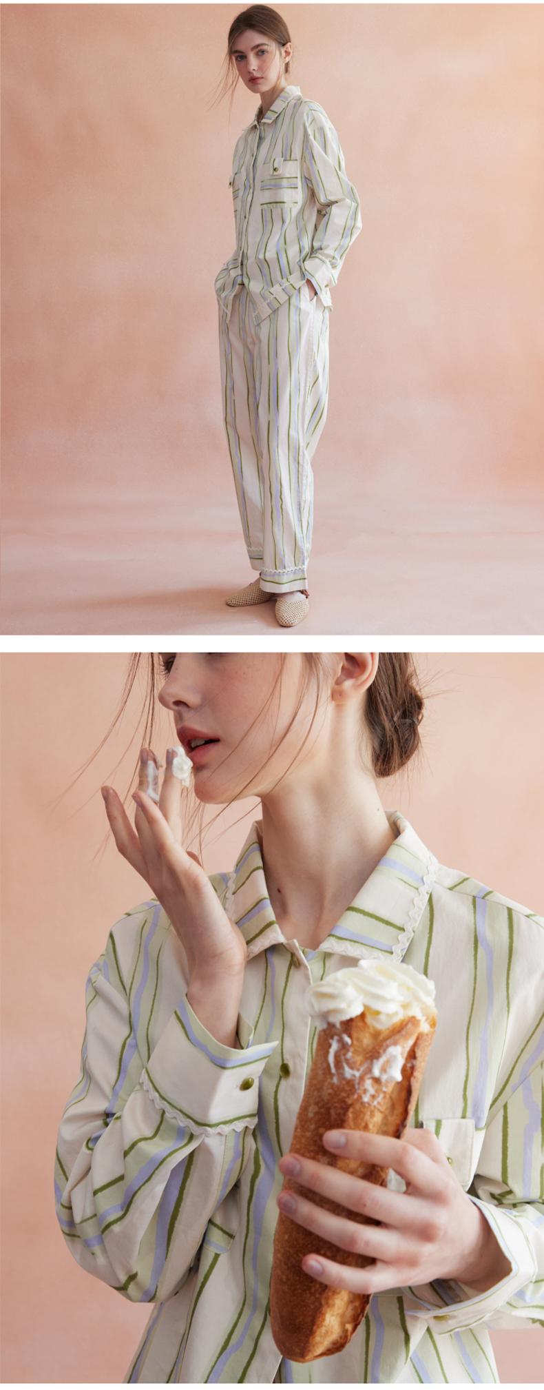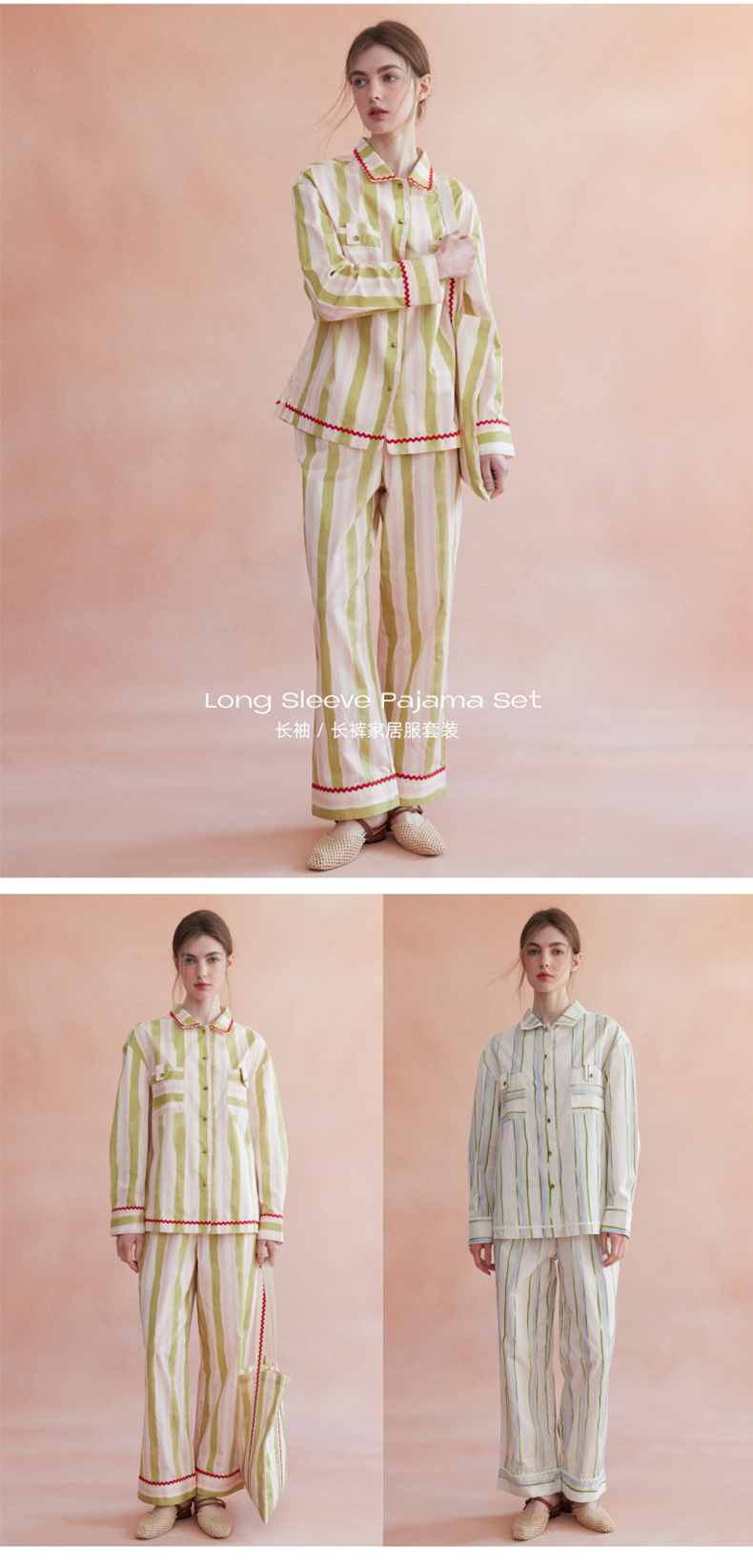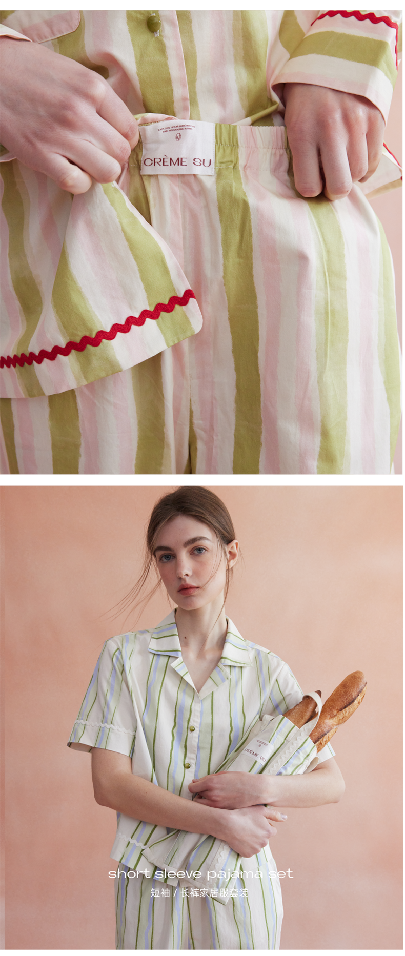 CremeSu 早春新品家居服Frida系列条纹撞色时尚外穿睡衣套装高支棉【该商品不支持用券】
