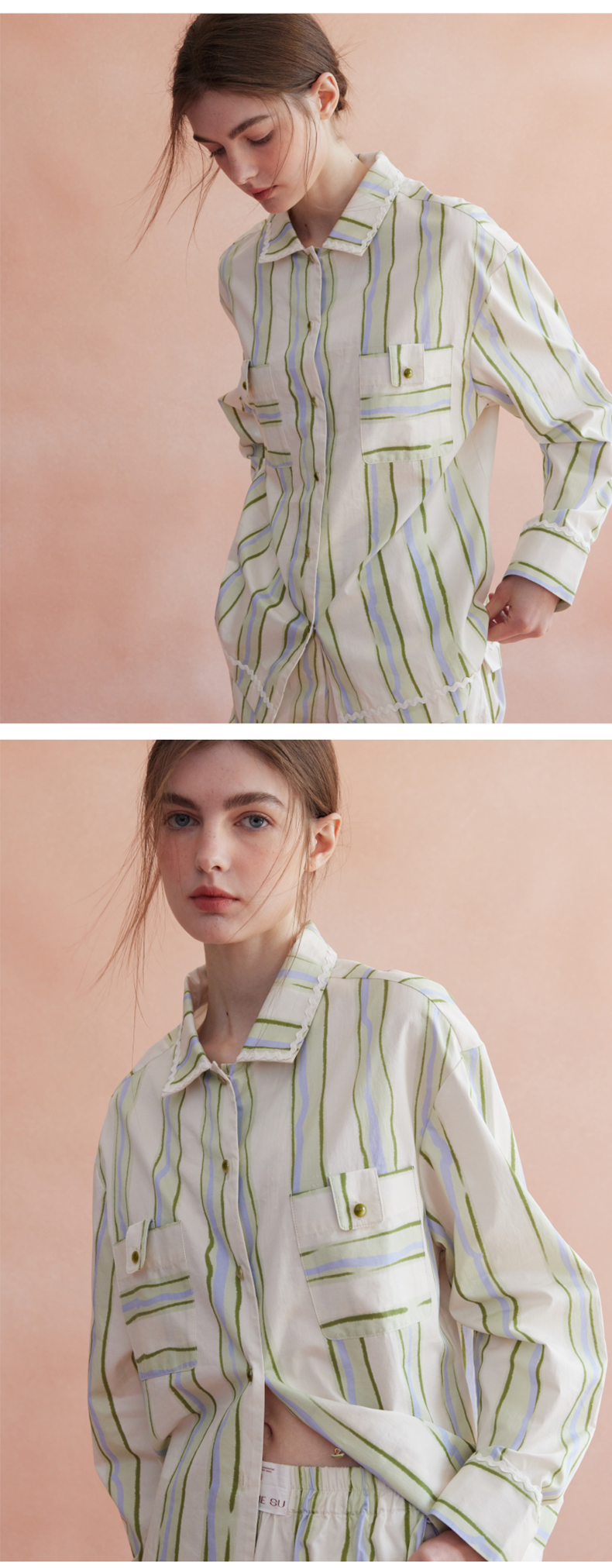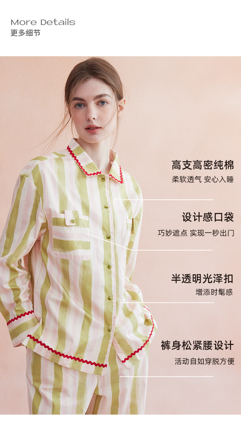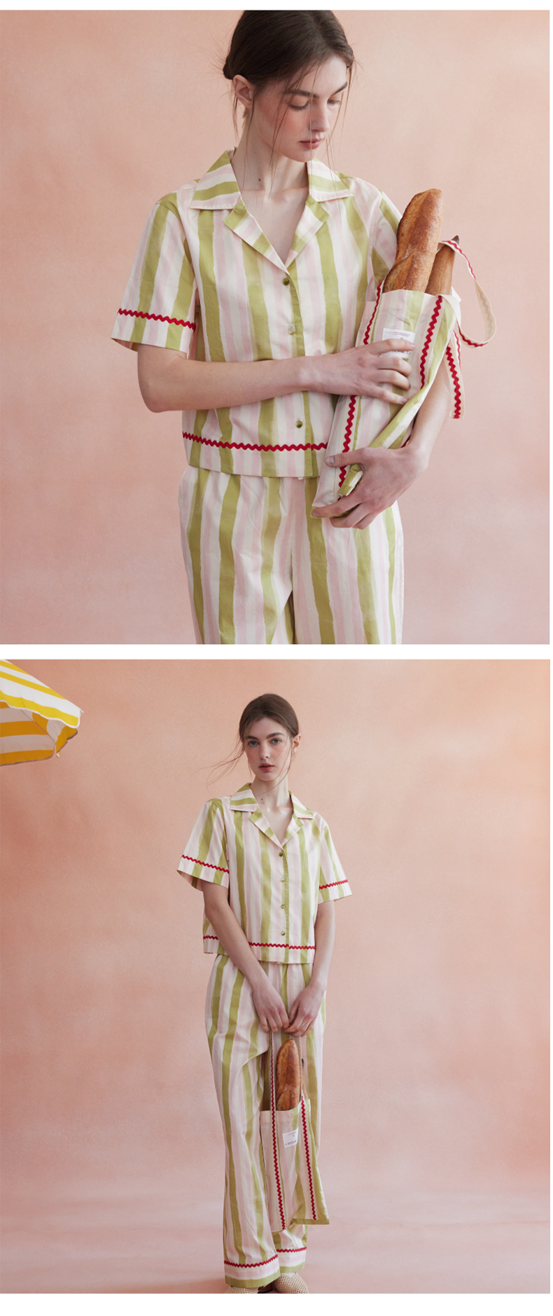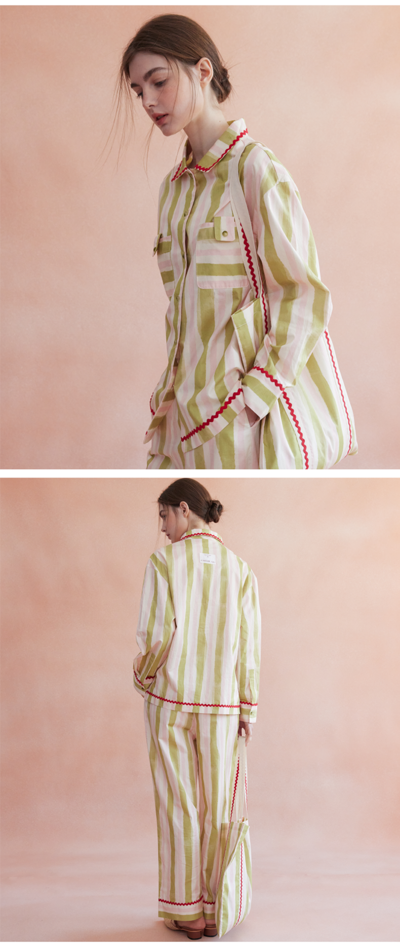 CremeSu 早春新品家居服Frida系列条纹撞色时尚外穿睡衣套装高支棉【该商品不支持用券】