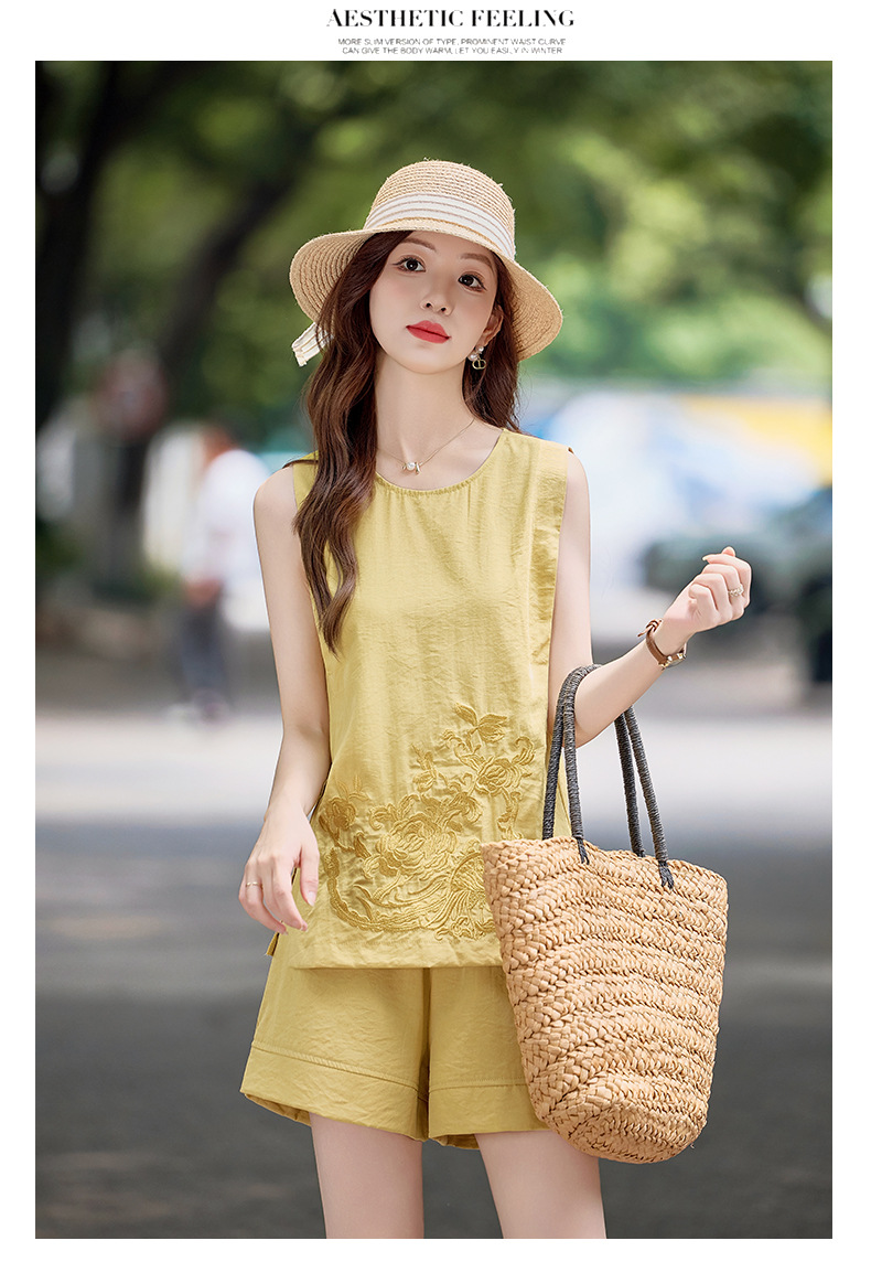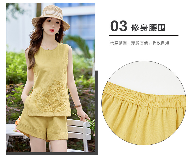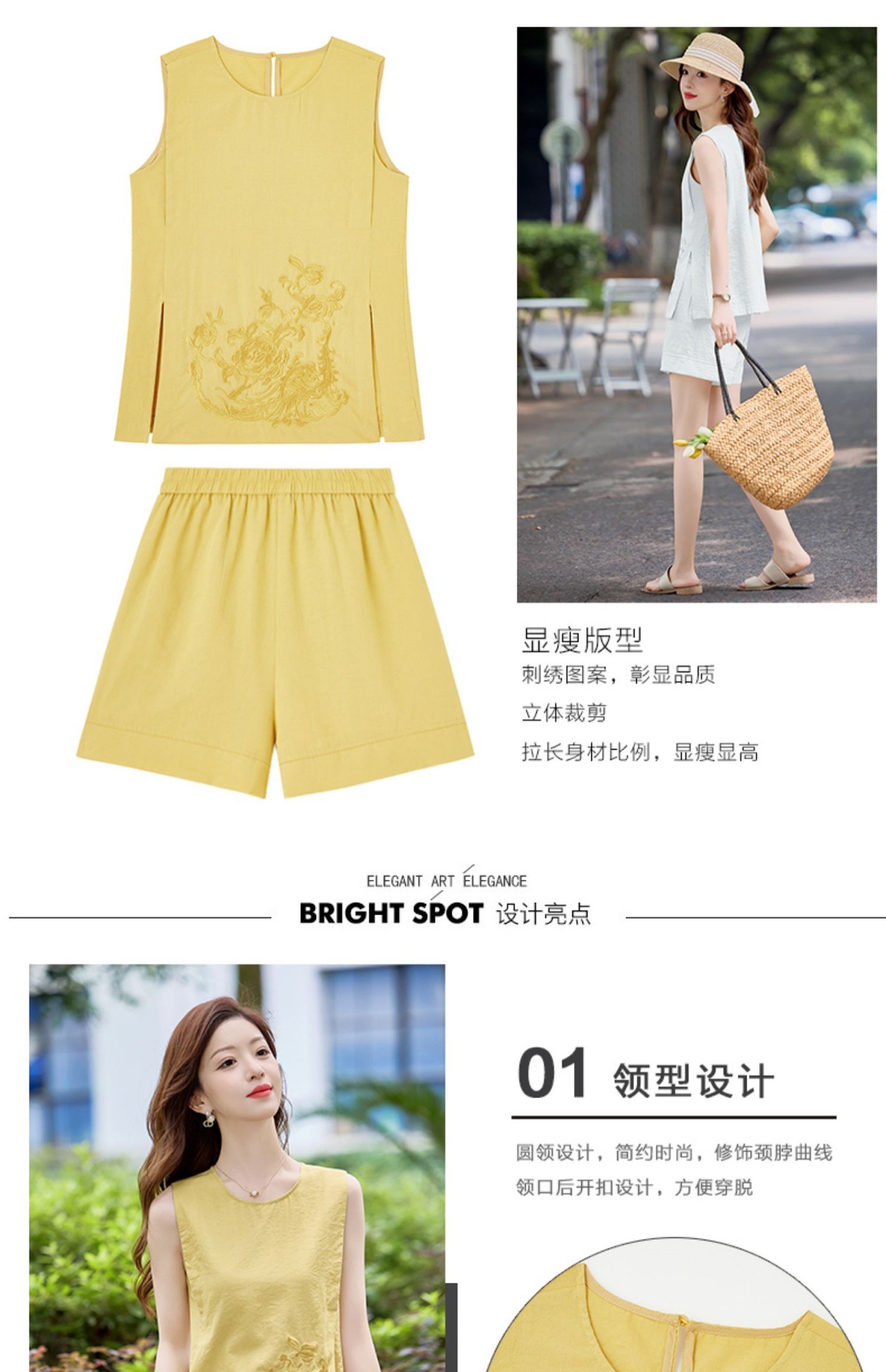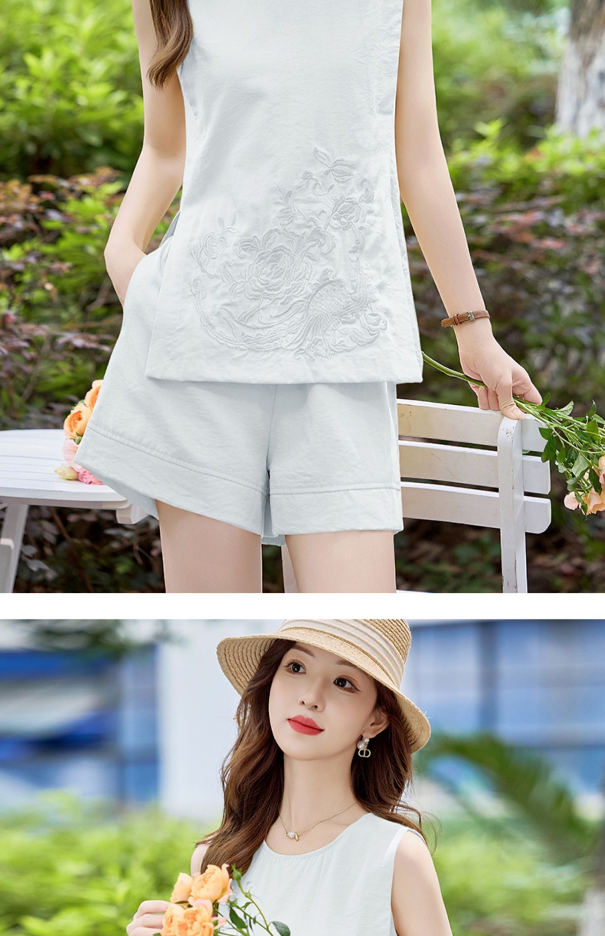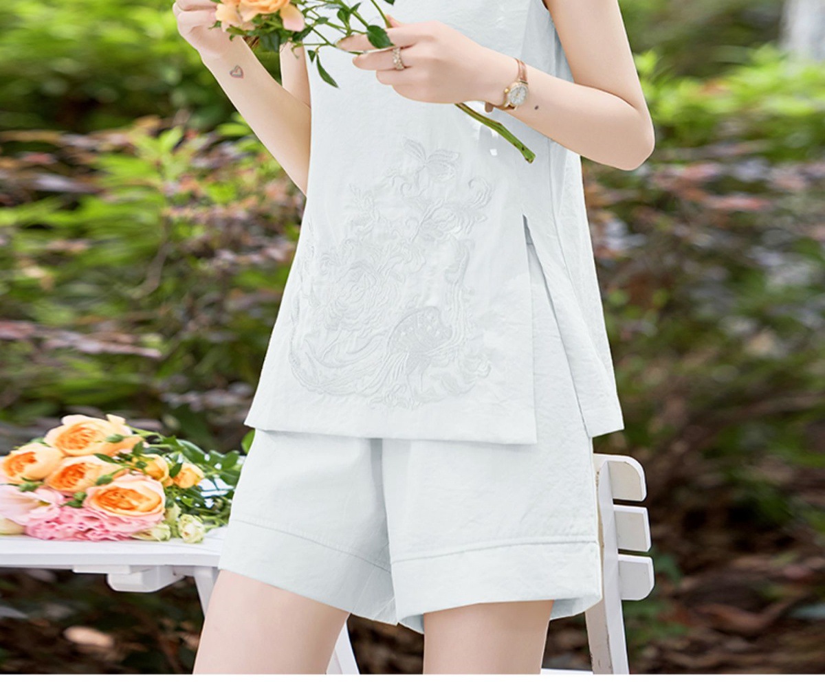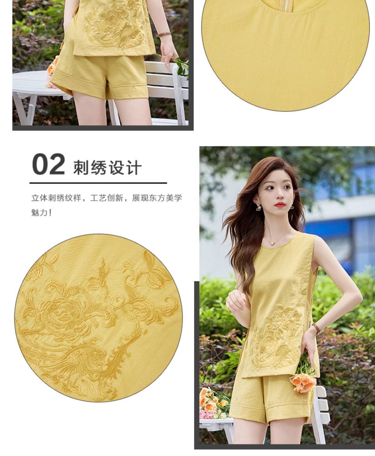 新中式国风刺绣无袖开叉上衣套装女夏2025新款短裤洋气减龄两件套XYFS6796